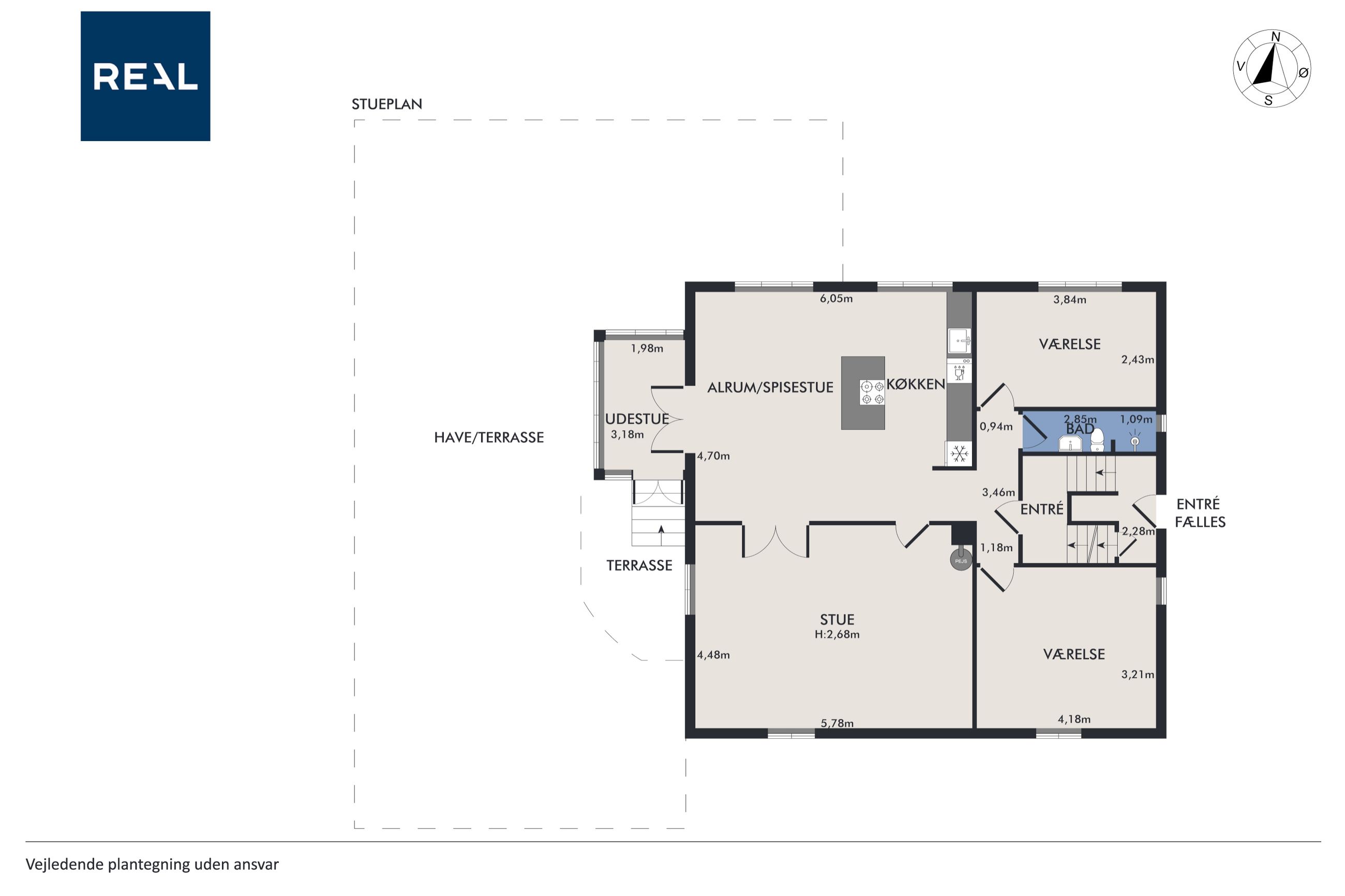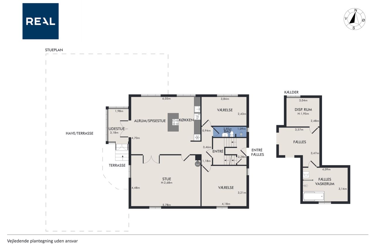 OBS: Det er muligt er opdele stuen i 2 således at der opnås 1 og potentielt 2 ekstra soveværelser.