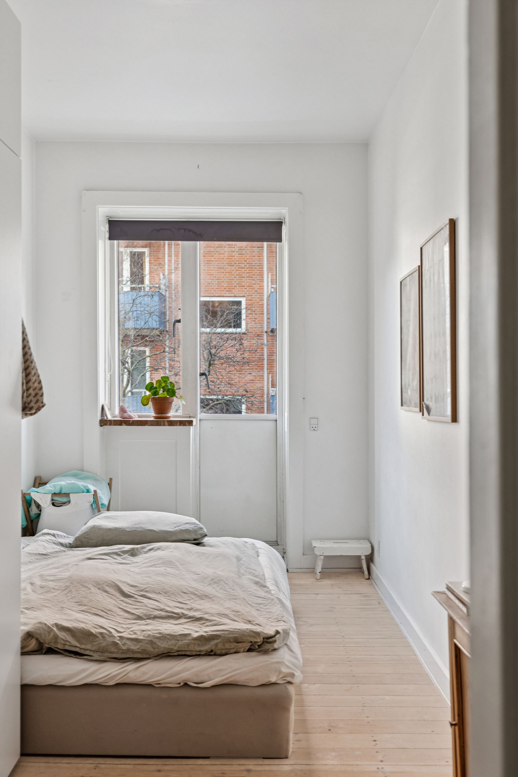 Boligen byder på to regulære soveværelser, begge med direkte udgang til egen altan, som skaber en naturlig forlængelse af boligen og giver ekstra uderum.