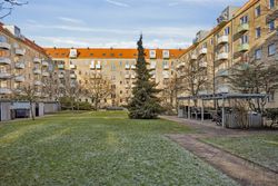 Det store køkken tilbyder god bord- og skabsplads og indbyder til madlavning, mens det rummelige & nydeligebadeværelse med separat bruseniche er en sjælden komfort i en lejlighed af denne størrelse.