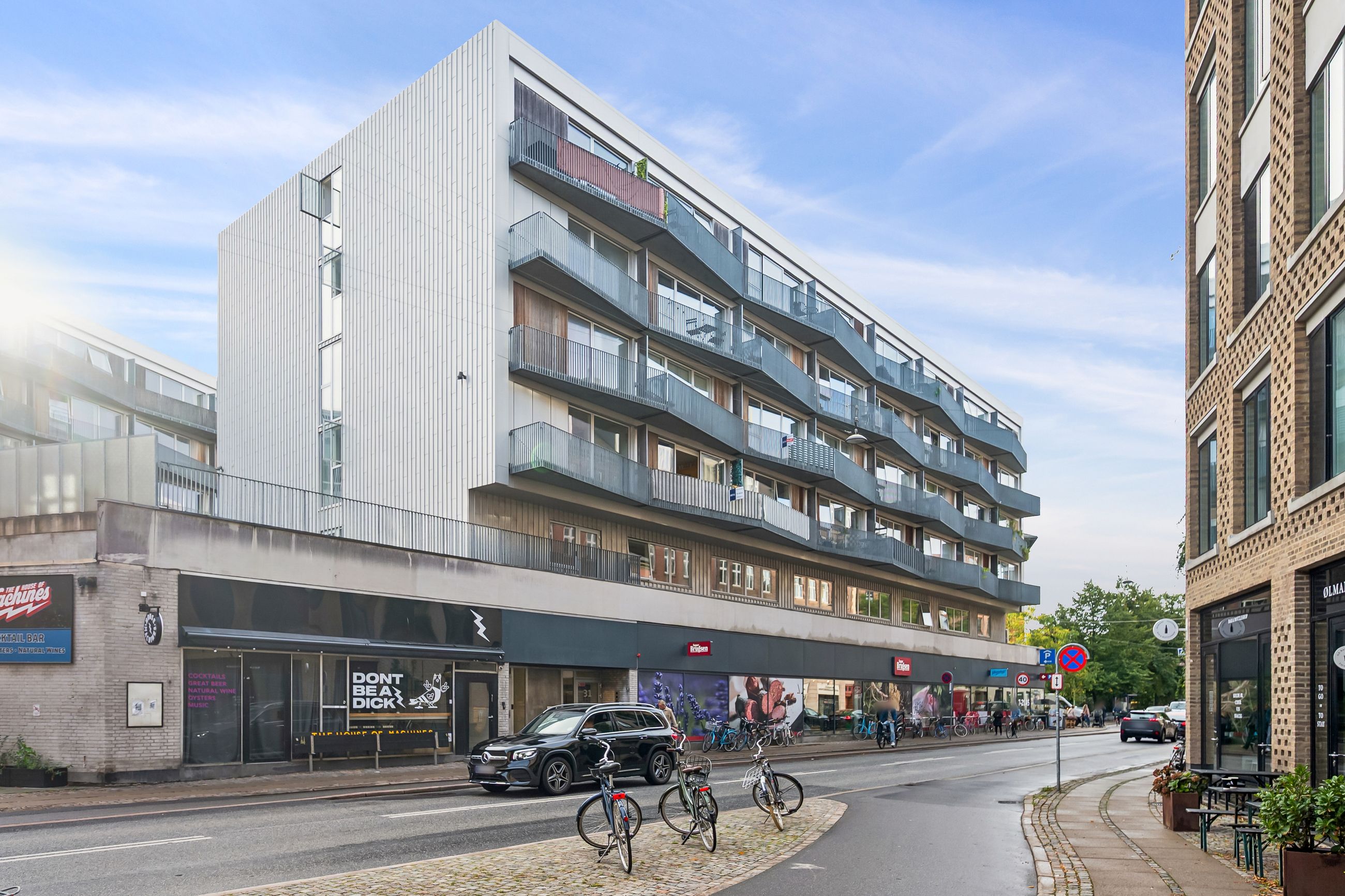 Ejendommen:Opført i 1971 og kendetegnet ved det modernistiske formsprog med generøse vinduespartier og markante altaner, der giver bygningen et levende udtryk. Ejendommen rummer elevator, grønne fællesarealer og cykelparkering – og som ekstra plus en tagterrasse med udsigt over København, der kan bruges af beboerne året rundt.