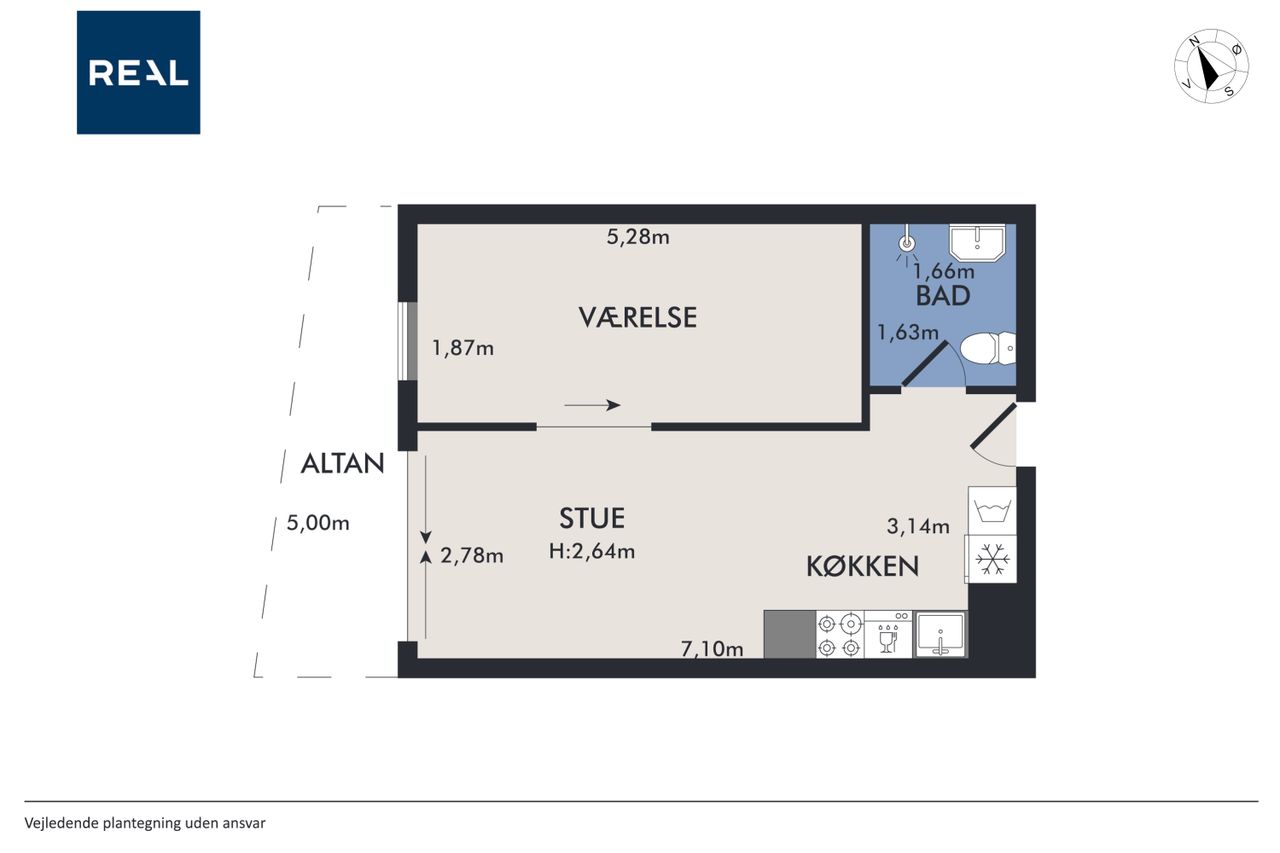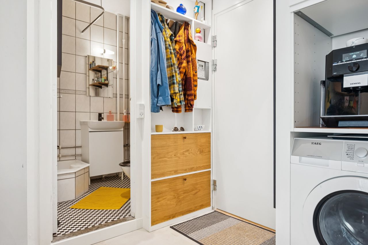 2 fordelt på en klassisk og velfungerende planløsning. Stuen er boligens naturlige samlingspunkt – lys, venlig og med store vinduespartier, der trækker omgivelserne ind. Herfra er der udgang til altanen mod vest, som hurtigt bliver et yndlingssted til både langsomme eftermiddage og aftener i solen. Køkkenet er praktisk indrettet med god skabsplads og en enkel stil, der giver plads til personligt præg. Soveværelset har en rolig atmosfære og en rar størrelse, hvor der er plads til både seng og garderobe.Badeværelset er indrettet med separat bruseniche og har et enkelt, funktionelt udtryk, der gør hverdagen let.