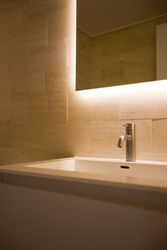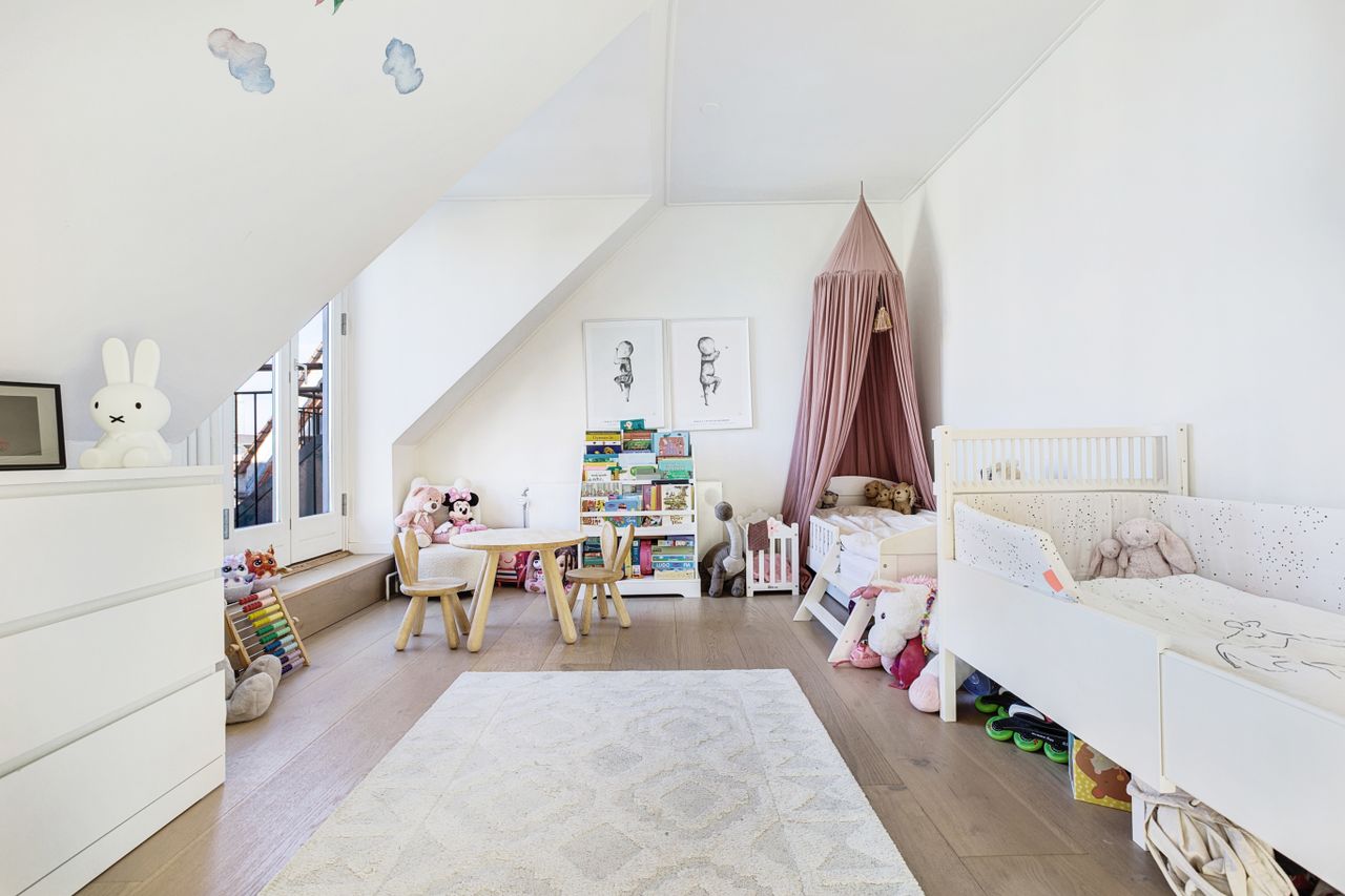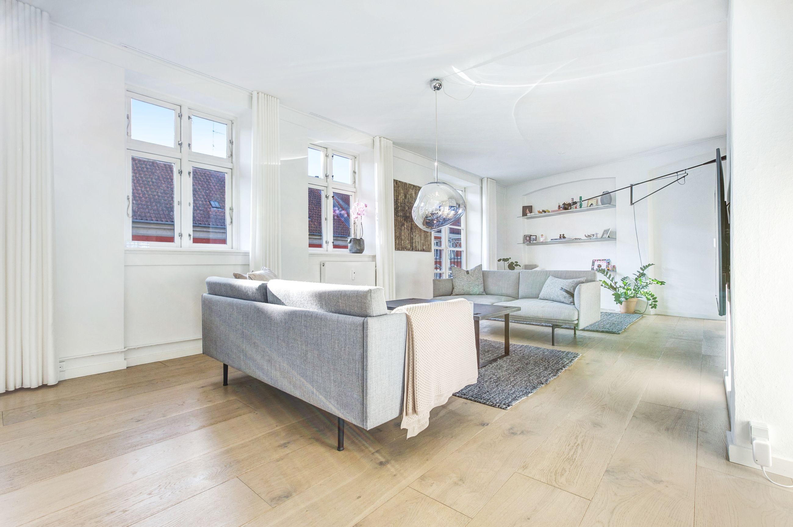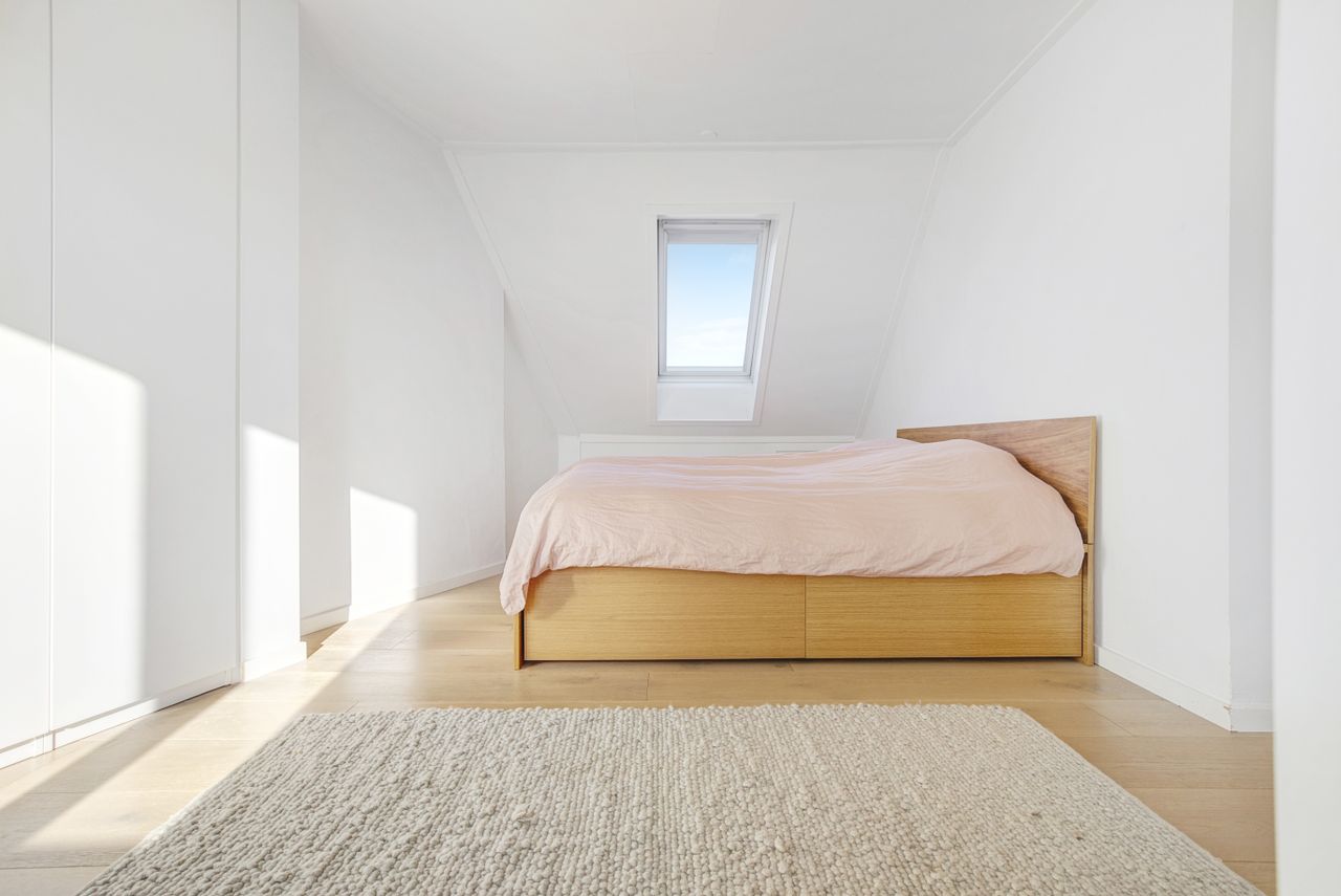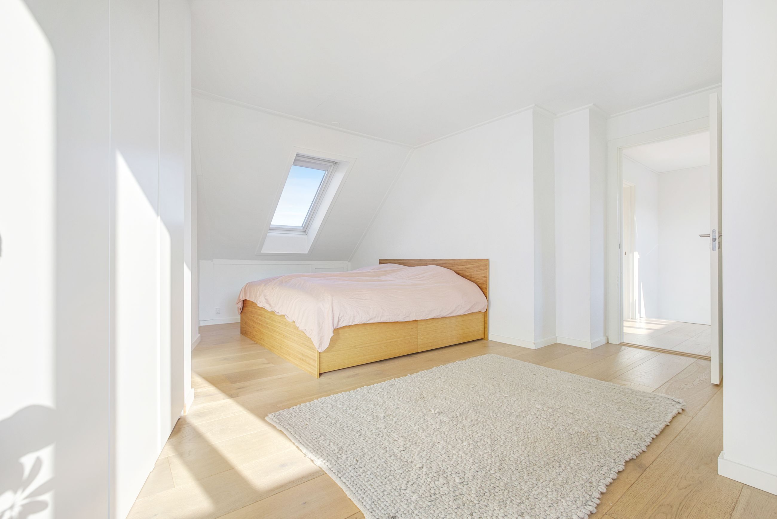 Hele boligen bærer præg af kvalitet og arkitektonisk sammenhæng. De lyse plankegulve, det smukke lysindfald og de skrå vinkler giver hjemmet karakter og varme – en sjældent vellykket kombination af funktionalitet og æstetik.