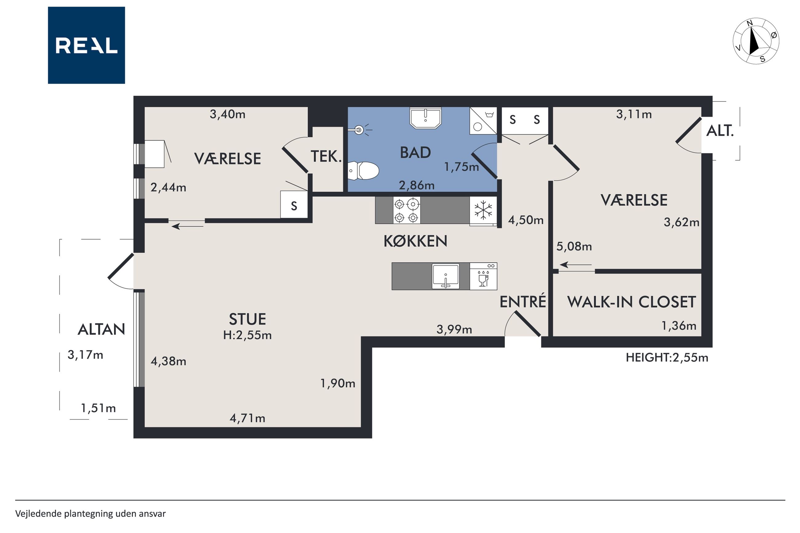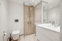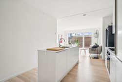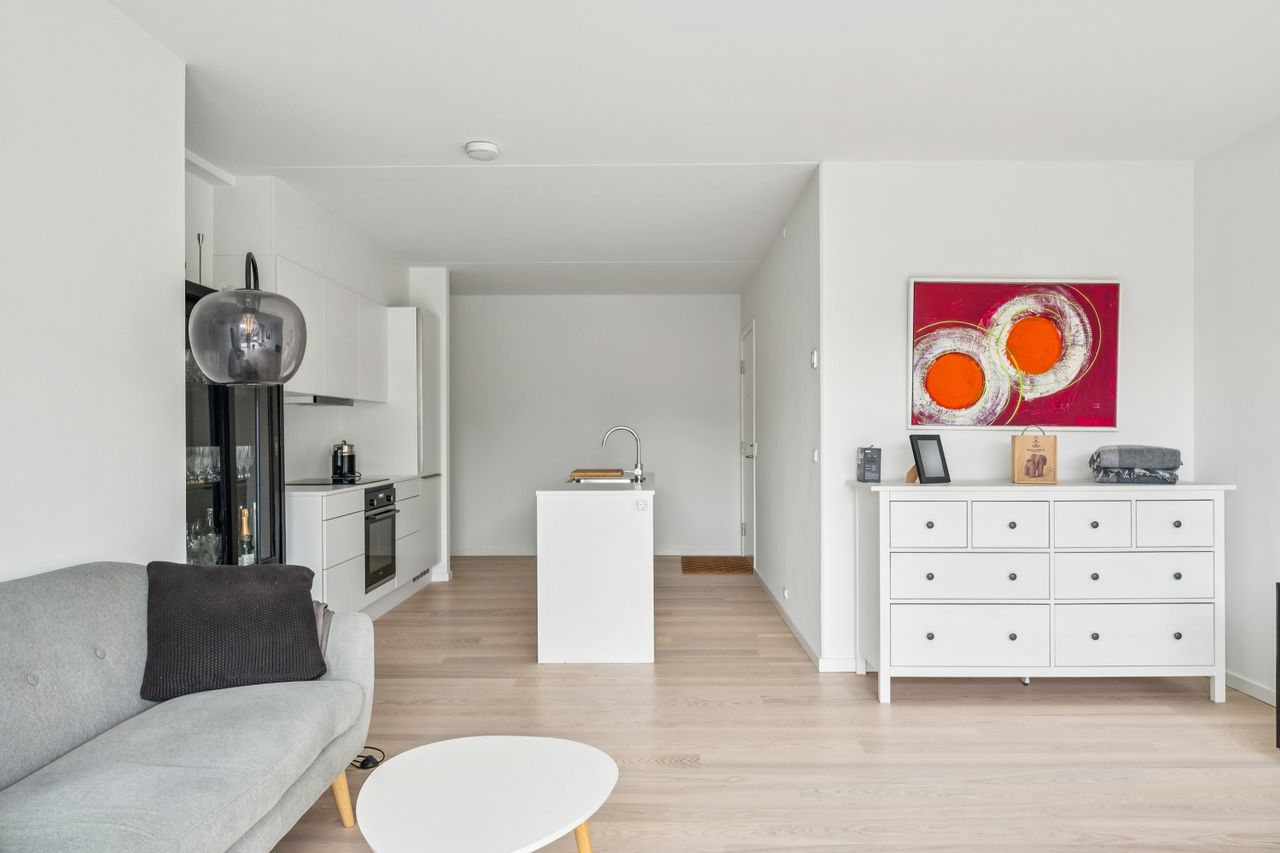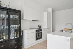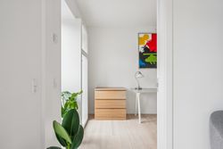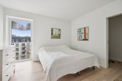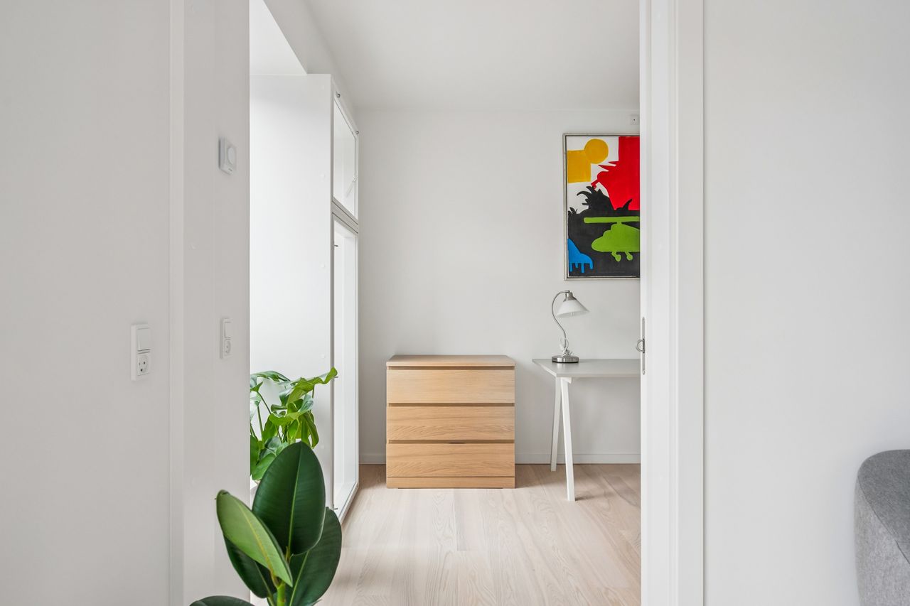 Når du træder ind i lejligheden, får du et godt førstehåndsindtryk. Boligens naturlige samlingspunkt er det store, åbne køkken-alrum med stue i forlængelse. De store vinduespartier fylder rummet med lys og skaber en behagelig og rummelig atmosfære. Herfra er der direkte adgang til en vestvendt altan, hvor solen kan nydes det meste af dagen – perfekt til hyggelige sommerdage. Lejligheden byder på to rummelige værelser. Master bedroom har et praktisk ekstra rum, ideelt som walk-in-closet eller til andet opbevaring. Det andet værelse er fleksibelt og kan indrettes efter behov, for eksempel som børneværelse, hjemmekontor eller gæsteværelse. Lejligheden rummer samtidig en moderne og indbydende badeværelse med et elegant design, der kombinerer funktionalitet og æstetik på bedste vis.