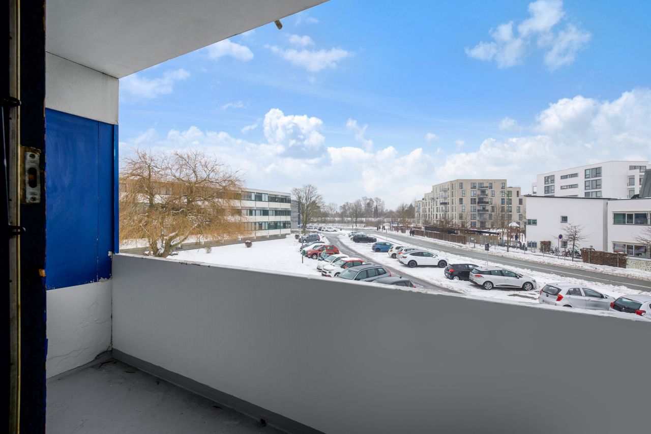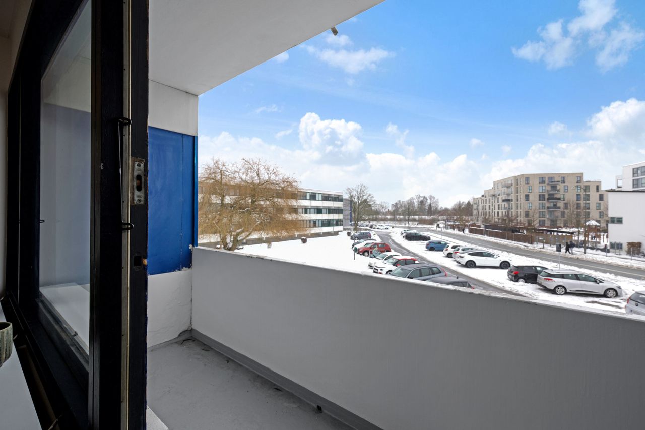 På attraktiv beliggenhed i Vejlegårdsparken udbydes denne velindrettede 2-værelses ejerlejlighed på 1. sal. Boligen fremstår lys og indbydende med rolige farvetoner, lyse gulve og et behageligt lysindfald.