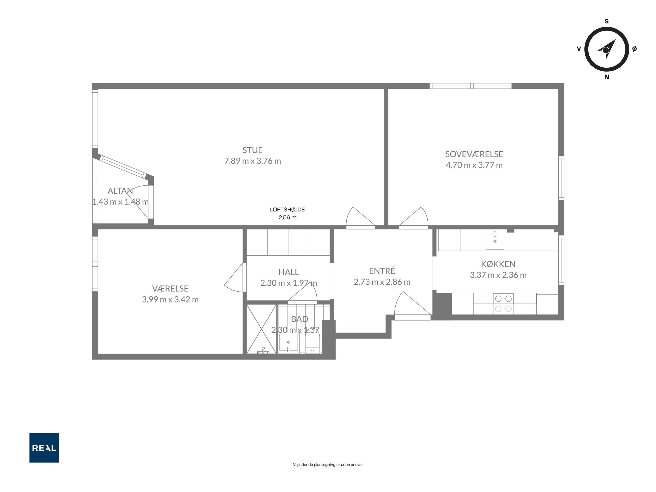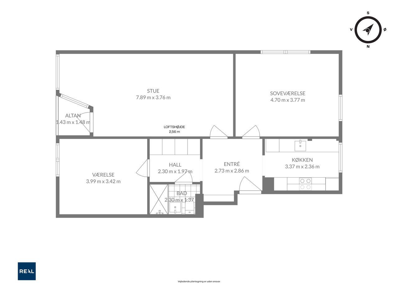 Lejlighedens naturlige samlingspunkt er den rummelige stue, som nemt rummer både spiseafdeling og sofaarrangement. De store vinduespartier giver et dejligt kig over området og et flot lysindfald det meste af dagen. Fra stuen er der direkte udgang til den vestvendte altan, hvor aftensolen kan nydes i rolige omgivelser med udsigt over nærområdet.