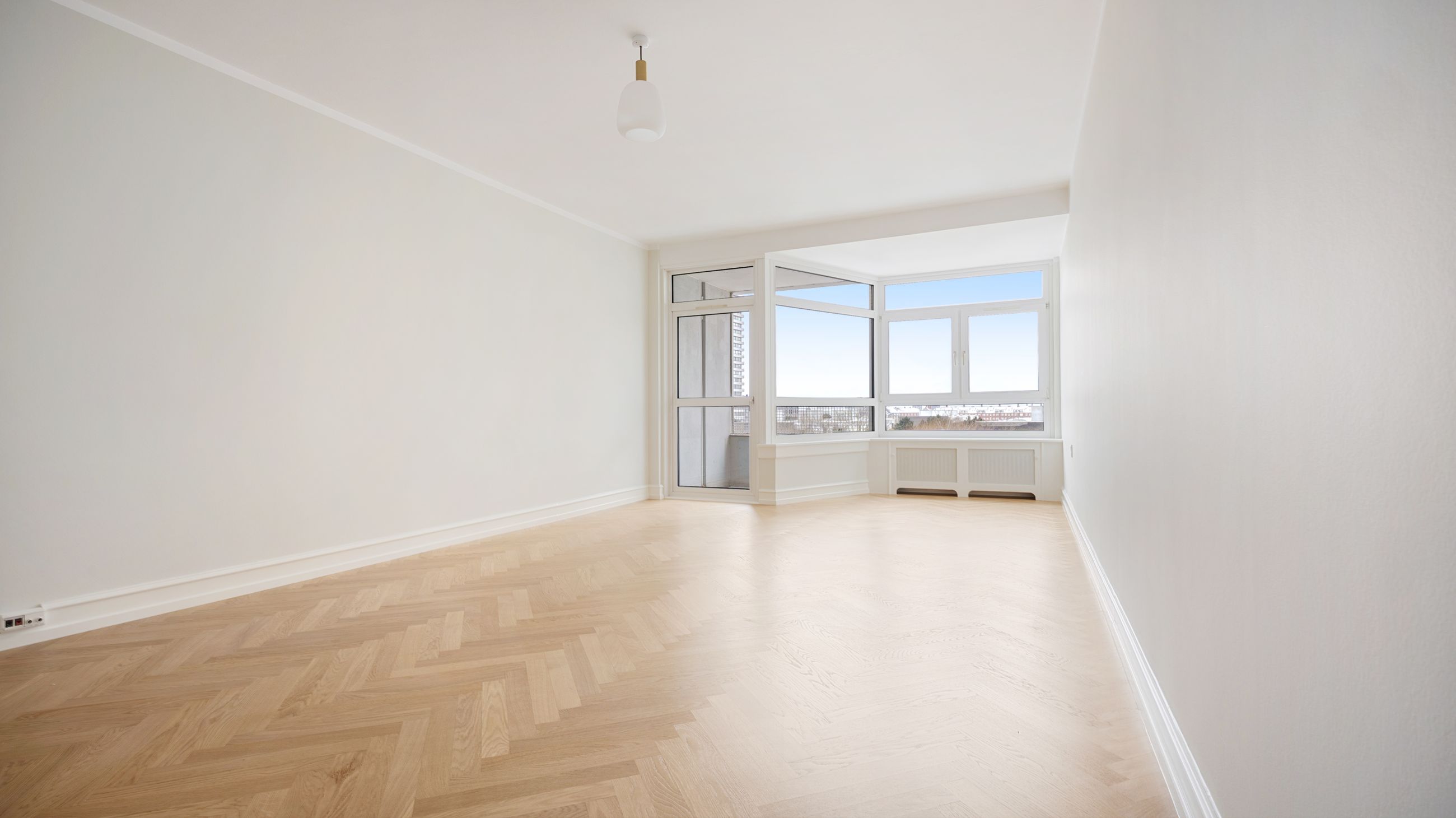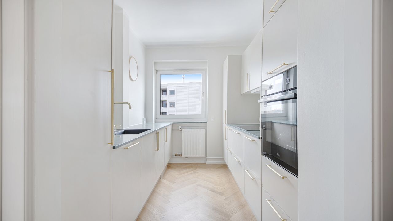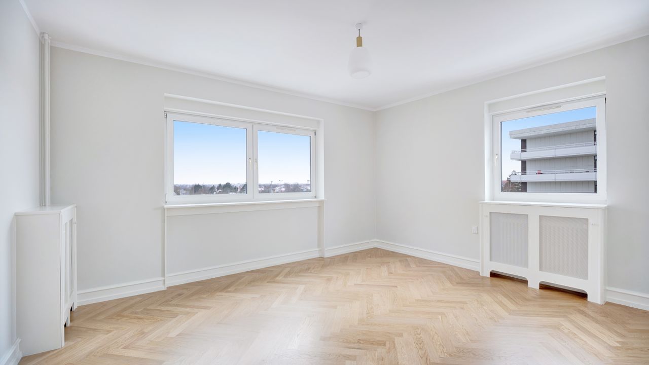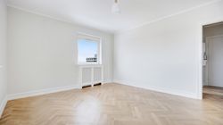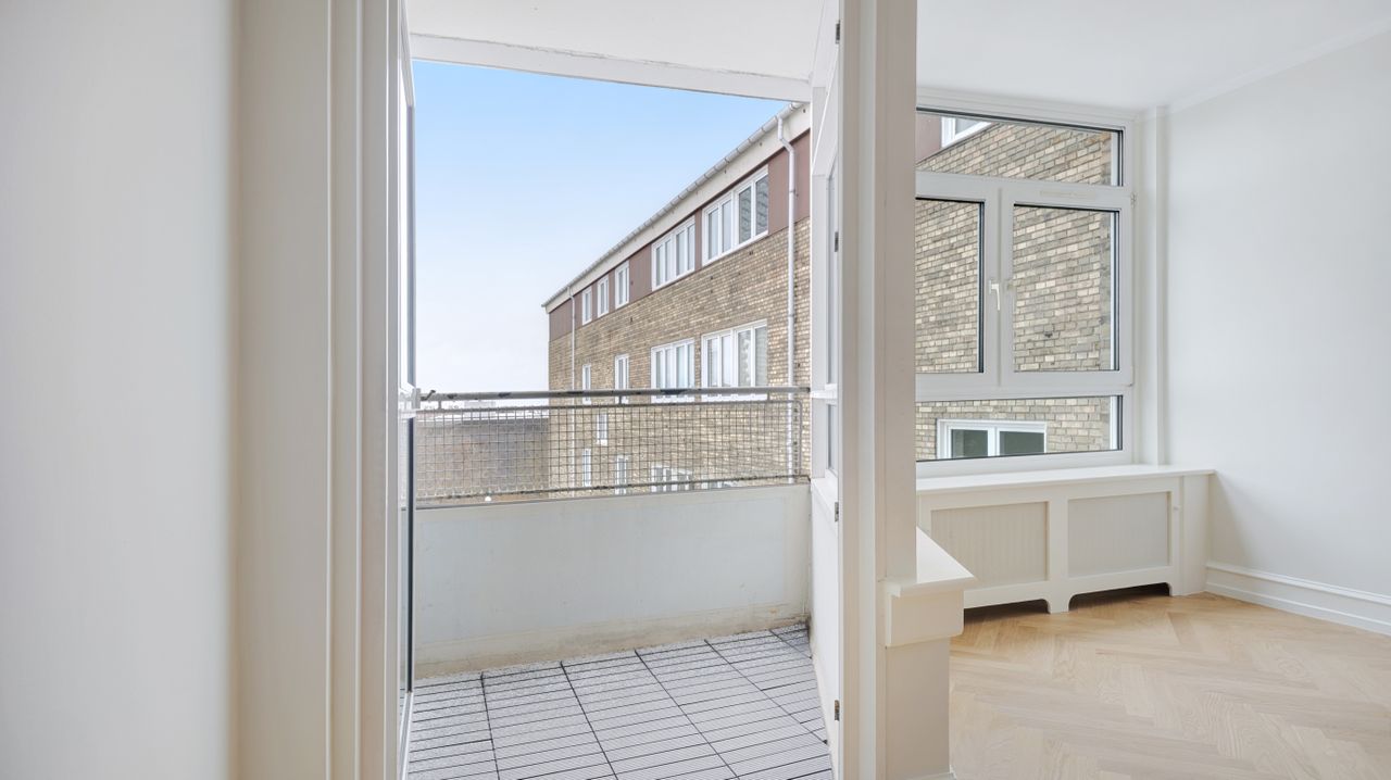 På attraktiv beliggenhed på Rådmandseins Allé udbydes denne indbydende og velindrettede lejlighed på 5. sal. Boligen fremstår lys, moderniseret og indflytningsklar med smukke sildebensgulve, rolige farvetoner og et gennemgående flot lysindfald, der skaber en behagelig og indbydende atmosfære.