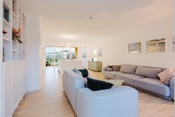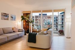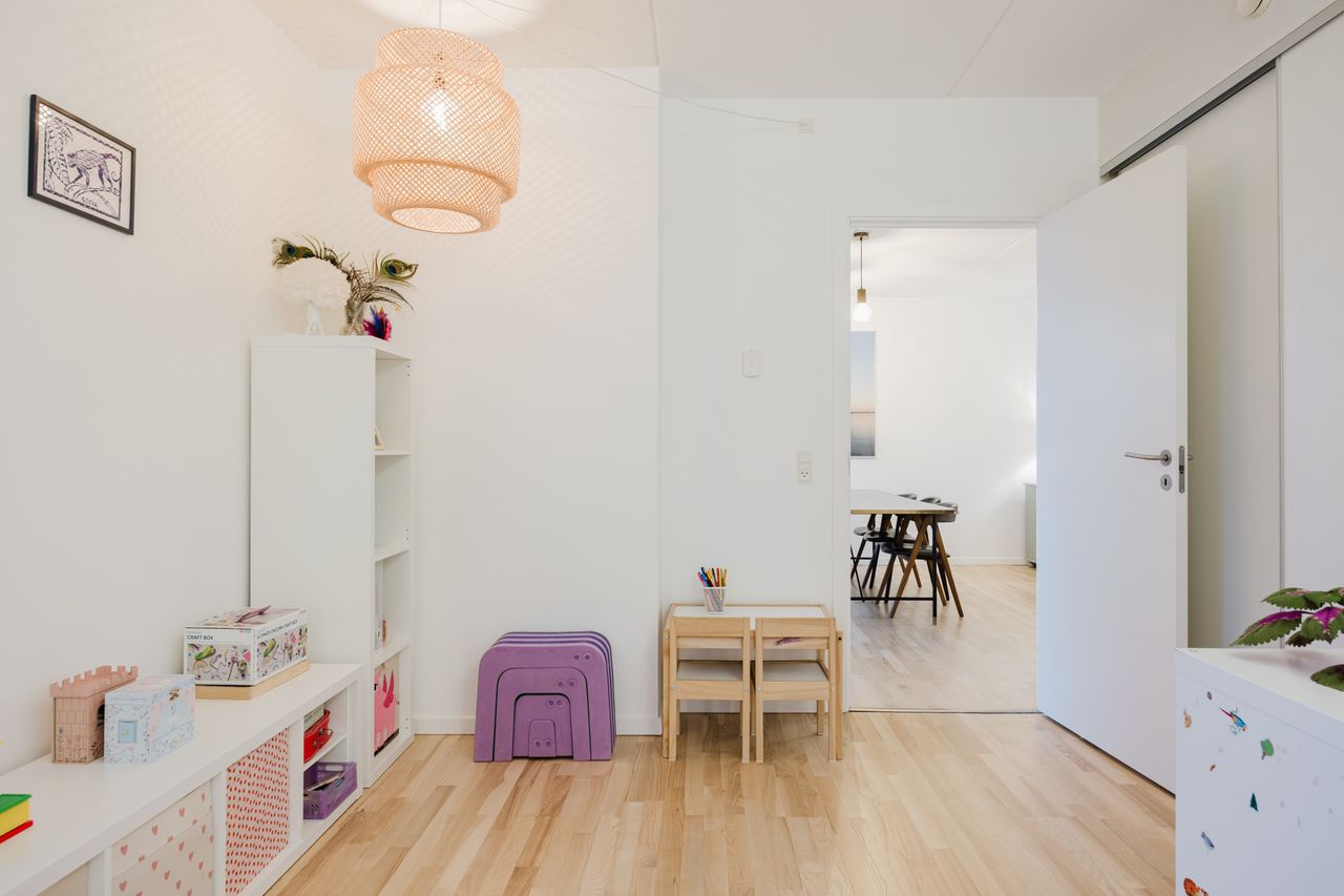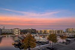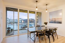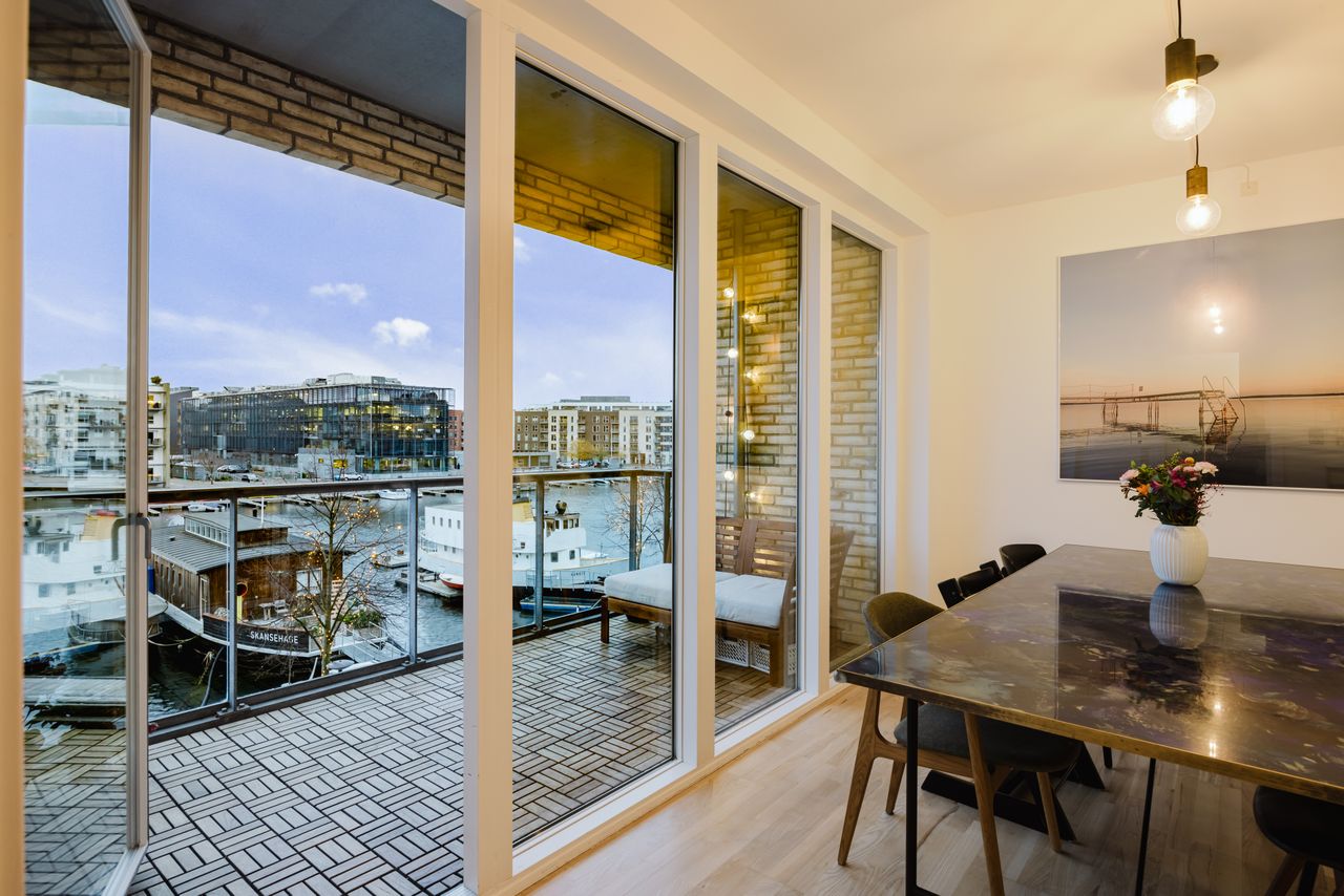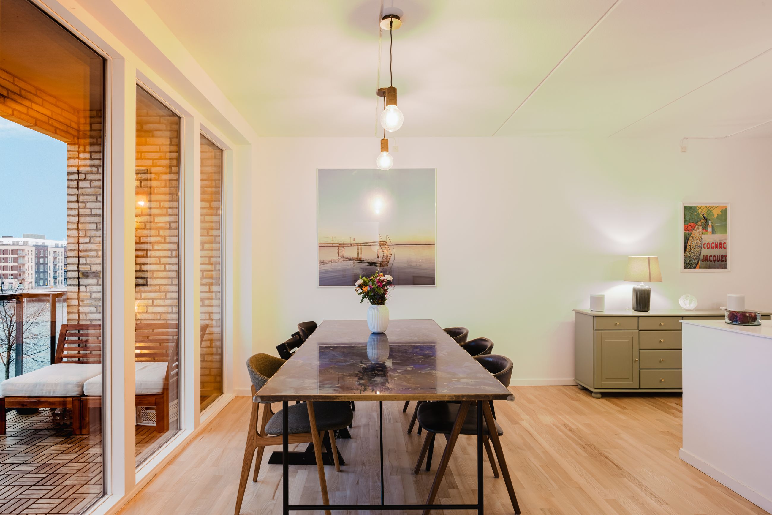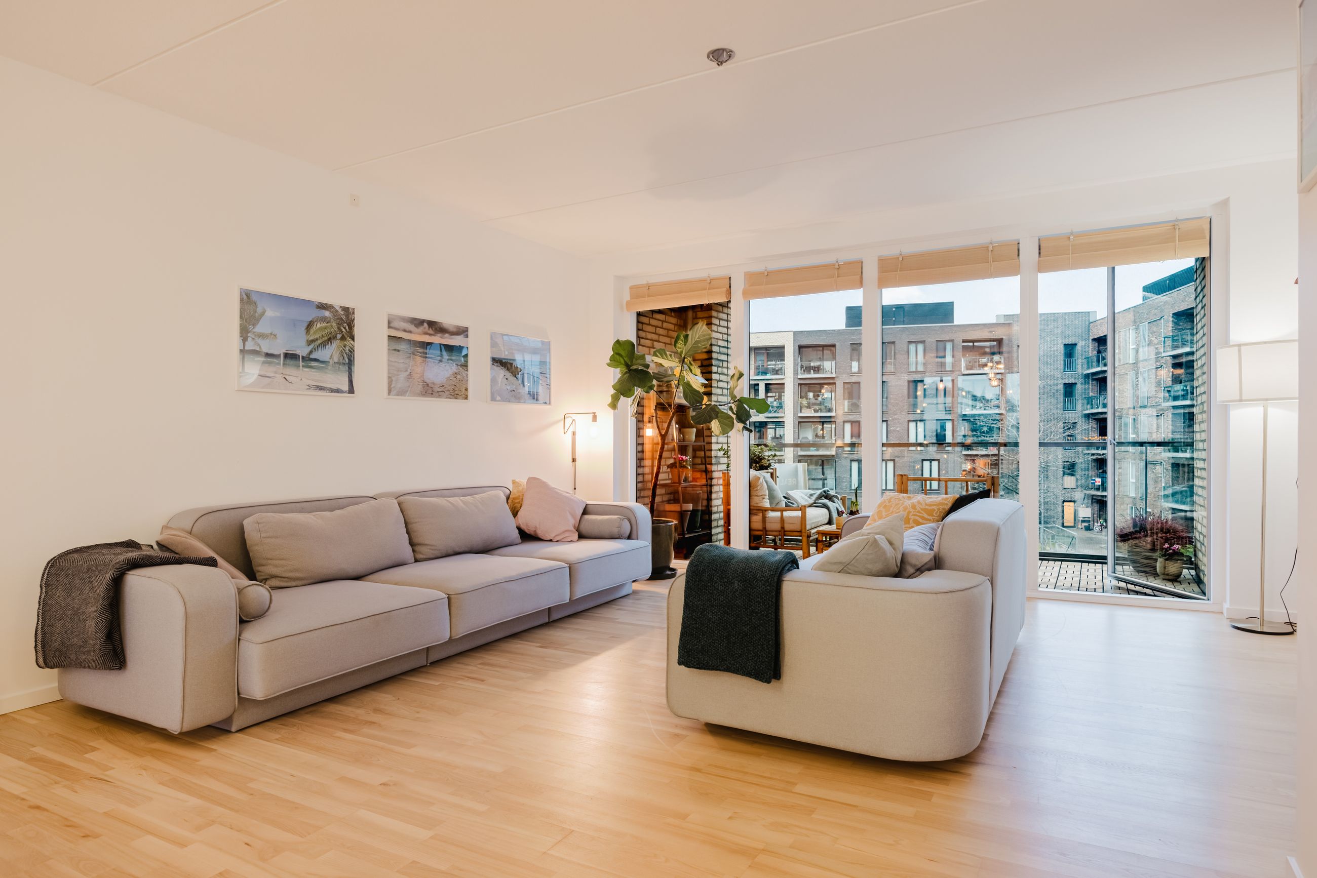 Velkommen til et lyst og velindrettet hjem på Dexter Gordons Vej, hvor vandet og udsigten bliver en naturlig del af hverdagen. Lejligheden ligger højt og frit med store vinduespartier mod kanalerne, og den gennemgående planløsning giver et behageligt flow fra entréen til opholdszonen. Allerede ved indgangen fornemmer du ro og rummelighed, her er garderobeplads, god opbevaring og et fint overblik til boligens rum.