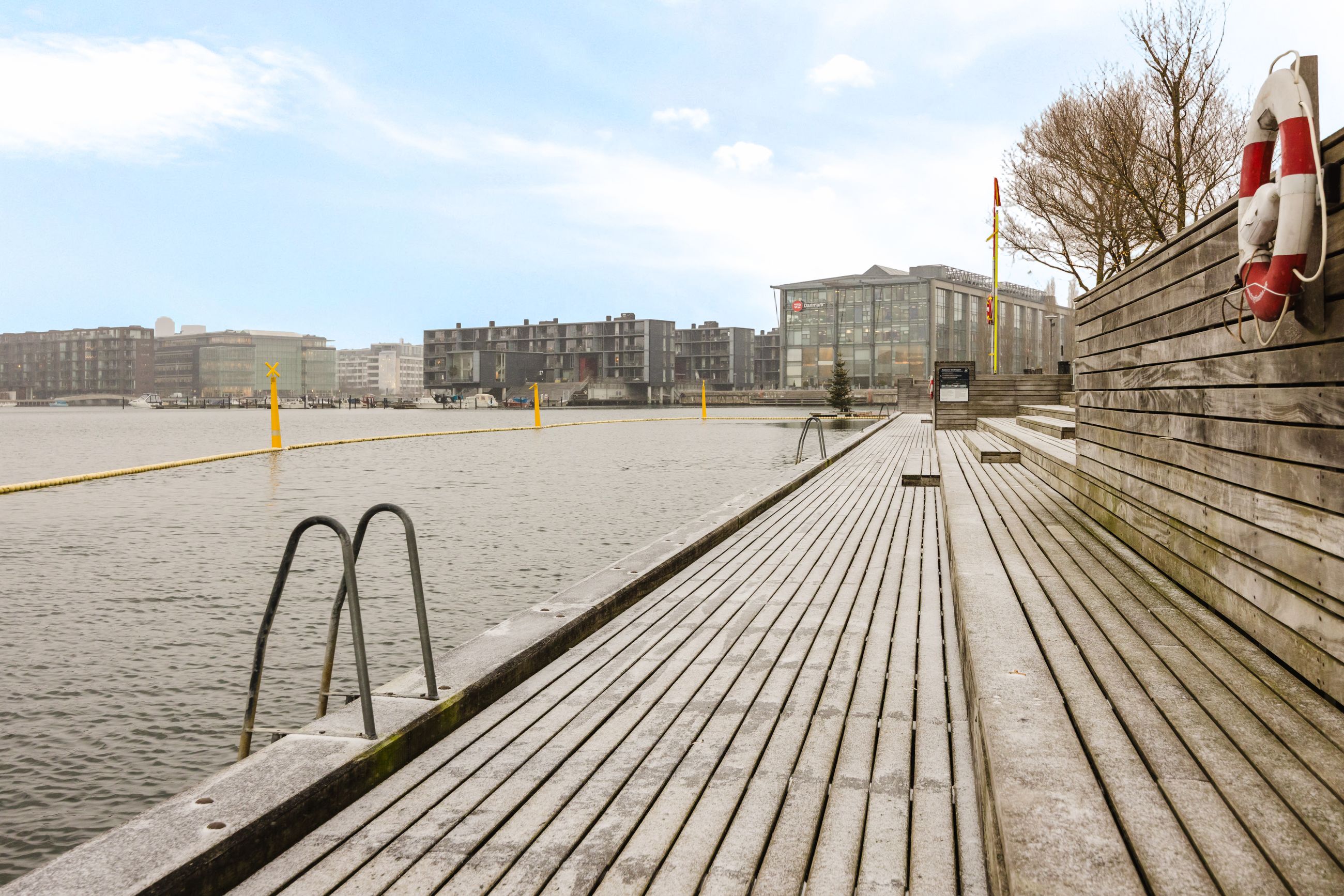 Nærområdet omkring Dexter Gordons Vej kombinerer byliv og natur. Du bor få skridt fra kajpromenader, badezoner, legepladser og grønne lommer, og der er kort afstand til indkøb, caféer og specialbutikker. Transporten er lige til, cykelbroer forbinder kvarteret med Bryggen og Vesterbro, havnebus og buslinjer ligger tæt på, og metro samt S-tog nås hurtigt, så du kommer nemt rundt i hele byen.