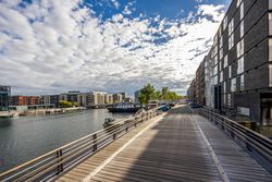 Området: Københavns attraktive havnefront Sluseholmen. Området har ideel placering, om du arbejder i eller udenfor byen. Her er kort afstand til motorvej & lufthavn, få minutter til tog, landets bedste indkøbscentre, og indre City er blot et lille kvarter væk. Området er kendetegnet ved de mange kanaler, slusen og havneløbet der sammen med de mange små bådklubber samt havnebadet giver en skøn maritim stemning. I sommeren 2024 kom den nye metro, hvor det nærmeste stop er blot 5 min. på gå ben fra lejligheden, som gør det endnu lettere at komme ind til centrum.