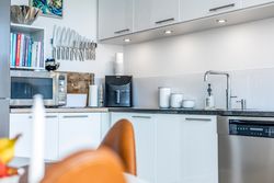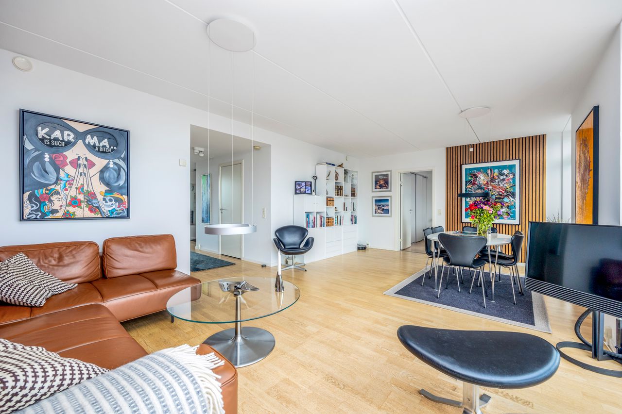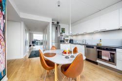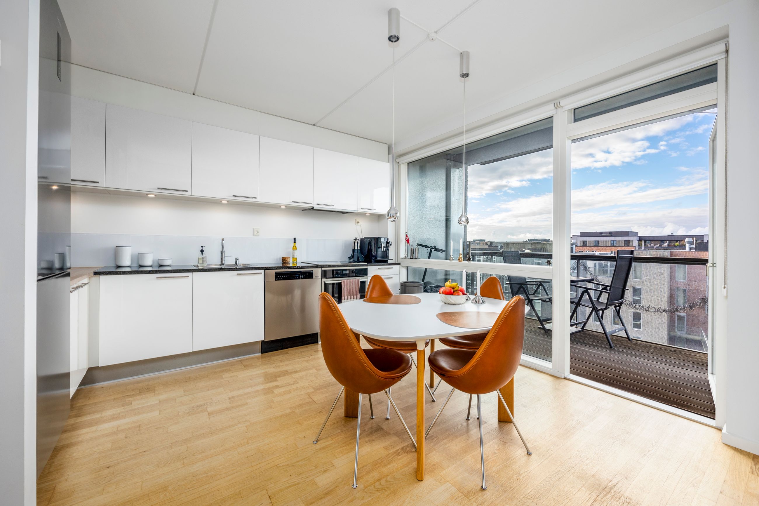 Denne lyse og indbydende lejlighed er beliggende i en moderne ejendom. Her får du en bolig, hvor udsigt, lys og funktionalitet går hånd i hånd. Lejligheden rummer et stort køkkenalrum med udgang til altan. Køkkenet er opført i en tidløs stil med god skabsplads. Det er et naturligt samlingspunkt, der giver plads til både madlavning og samvær.