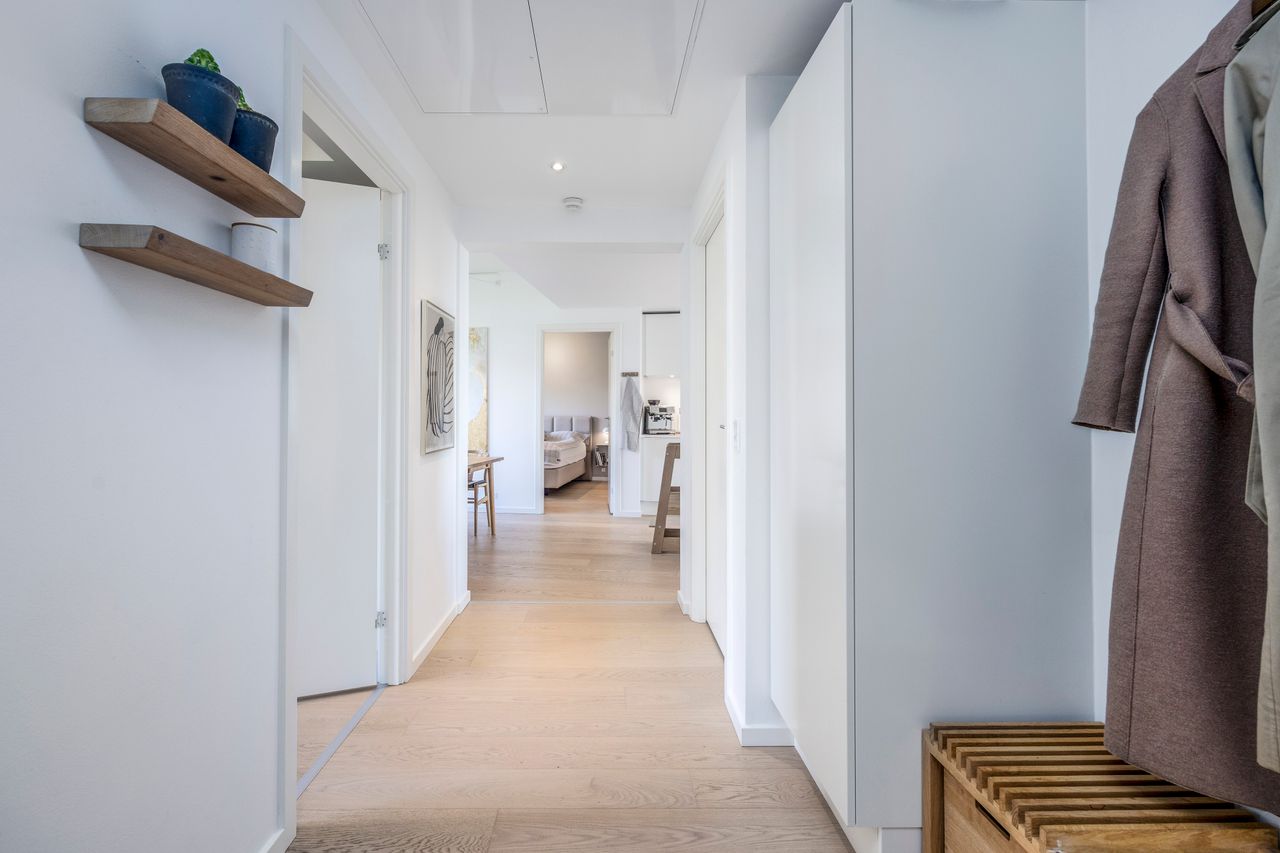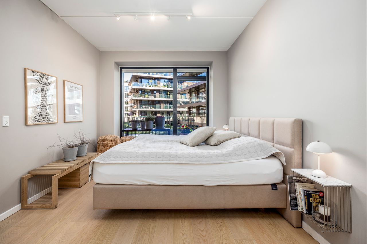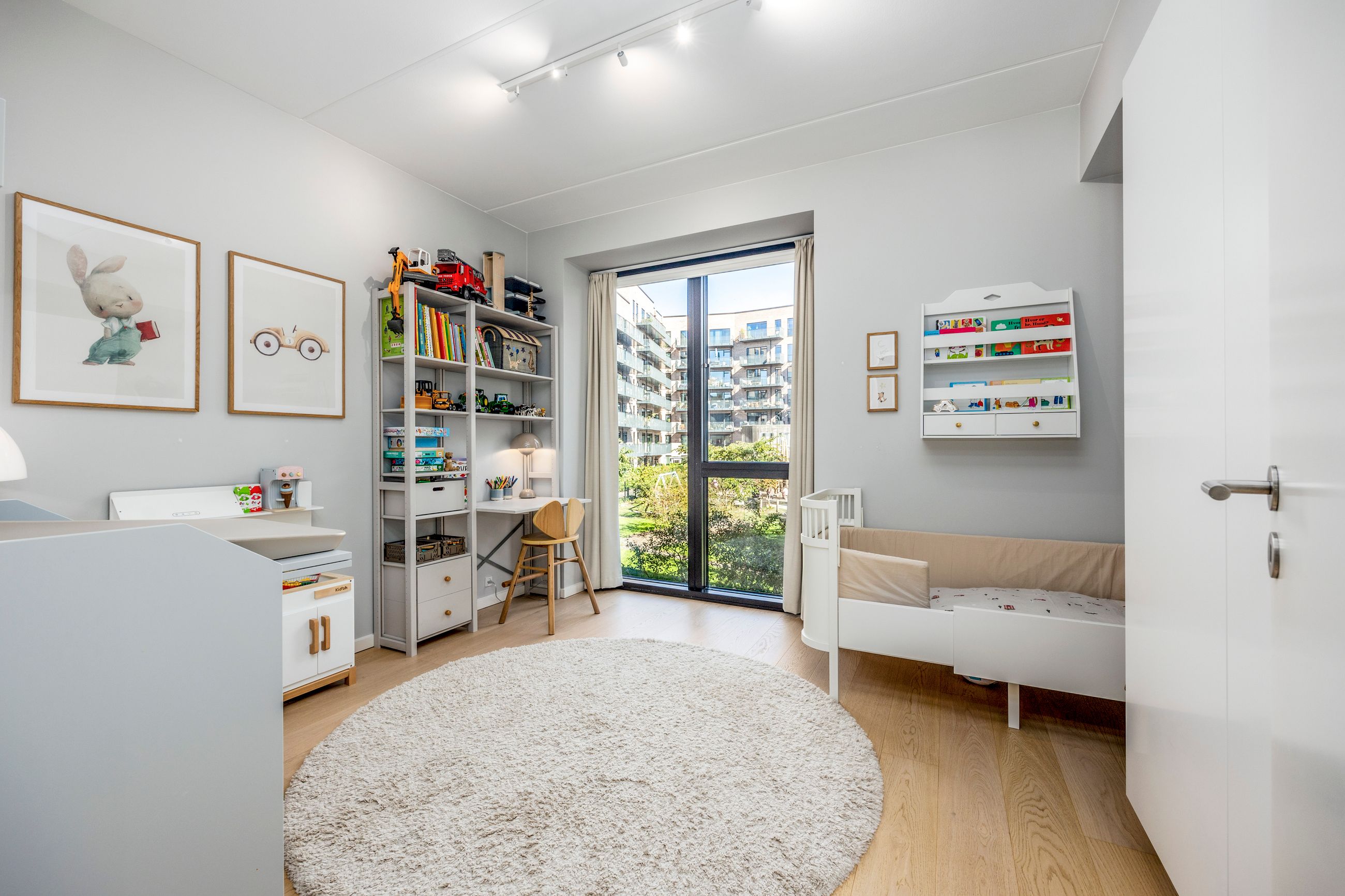 Lejligheden råder over to regulære værelser med fleksible indretningsmuligheder oplagte som soveværelse, børneværelse, kontor eller gæsteværelse alt efter behov. Dertil kommer to badeværelser, begge med toilet, så morgenlogistikken glider let for både par og børnefamilie. Det er meget nemt at etablere et ekstra soveværelse til den helt store familie. De to altaner giver dagen rytme og lys. I gården får du morgen og formiddagssolen, mens du på altanen ud mod vandet får eftermiddag og aftensolen. Den helt perfekte kombination!