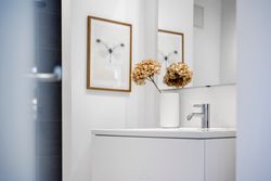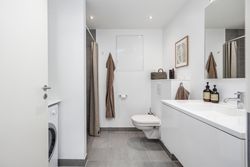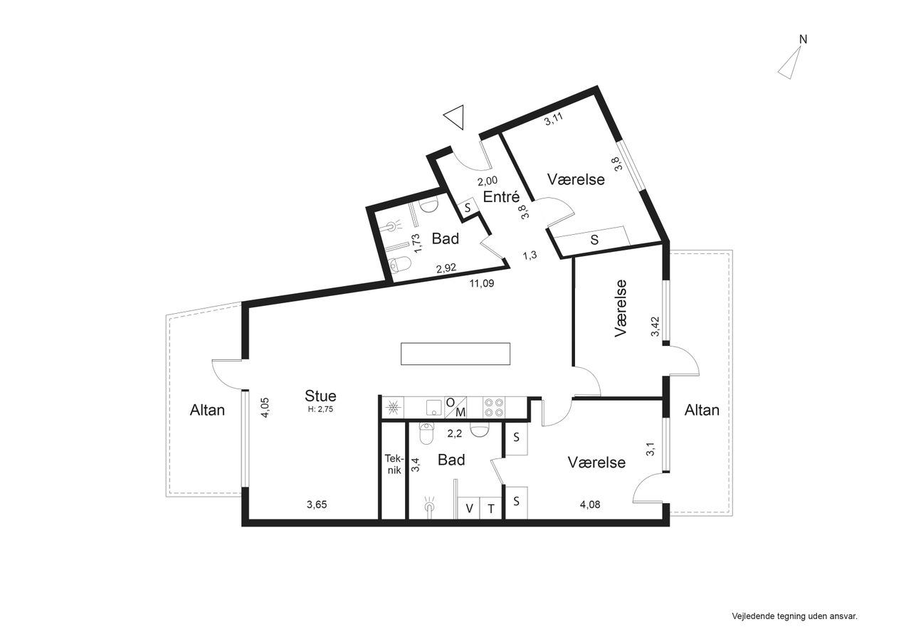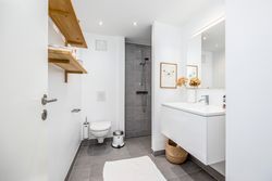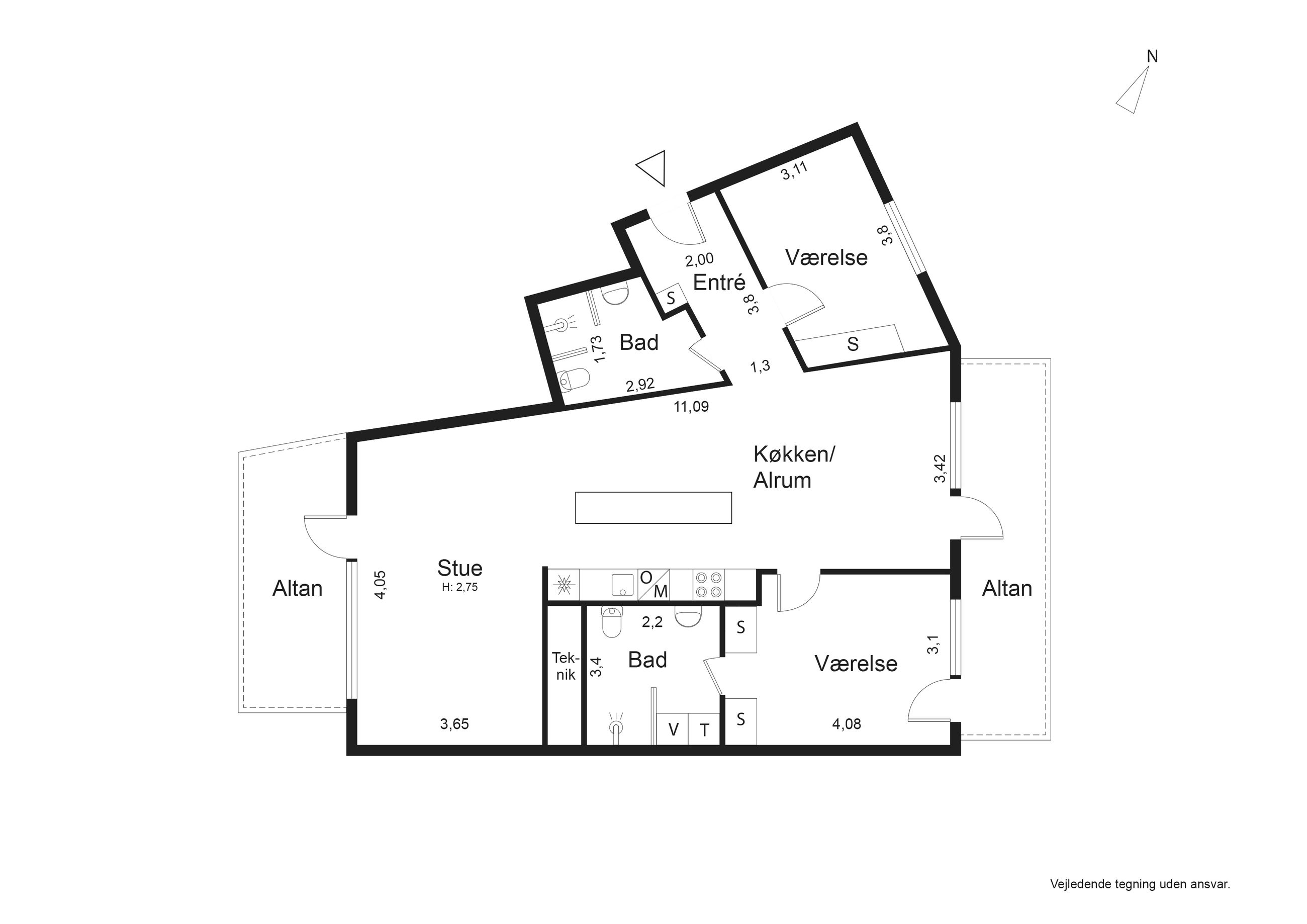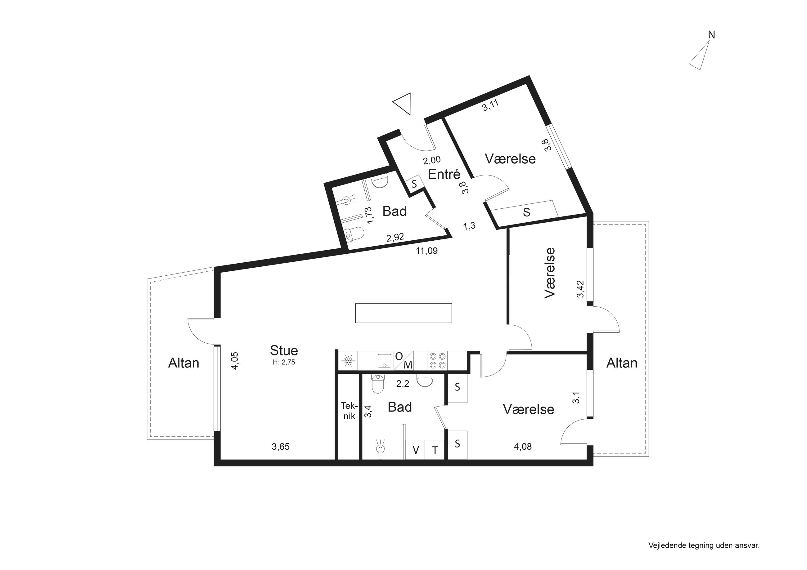 Lejligheden råder over to regulære værelser med fleksible indretningsmuligheder oplagte som soveværelse, børneværelse, kontor eller gæsteværelse alt efter behov. Dertil kommer to badeværelser, begge med toilet, så morgenlogistikken glider let for både par og børnefamilie. Det er meget nemt at etablere et ekstra soveværelse til den helt store familie. De to altaner giver dagen rytme og lys. I gården får du morgen og formiddagssolen, mens du på altanen ud mod vandet får eftermiddag og aftensolen. Den helt perfekte kombination!
