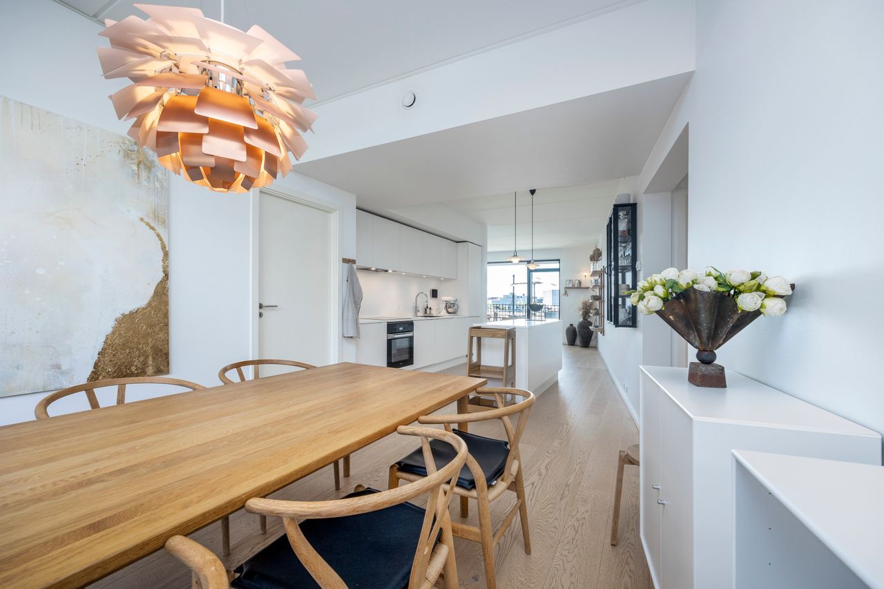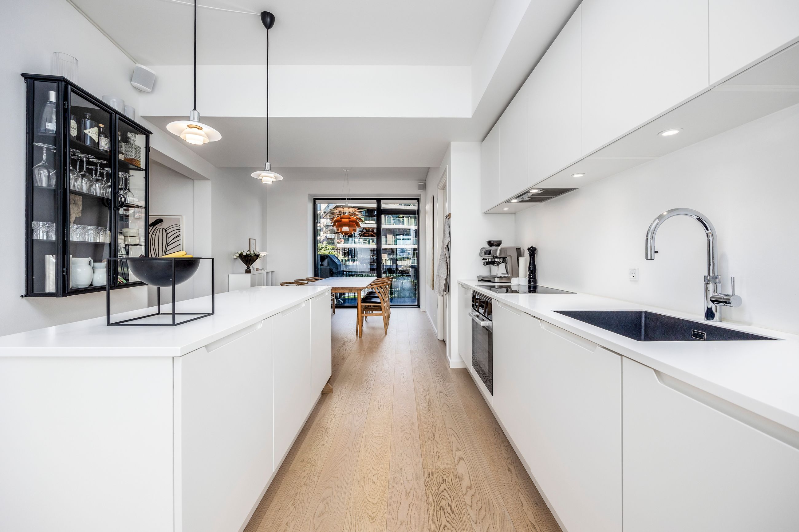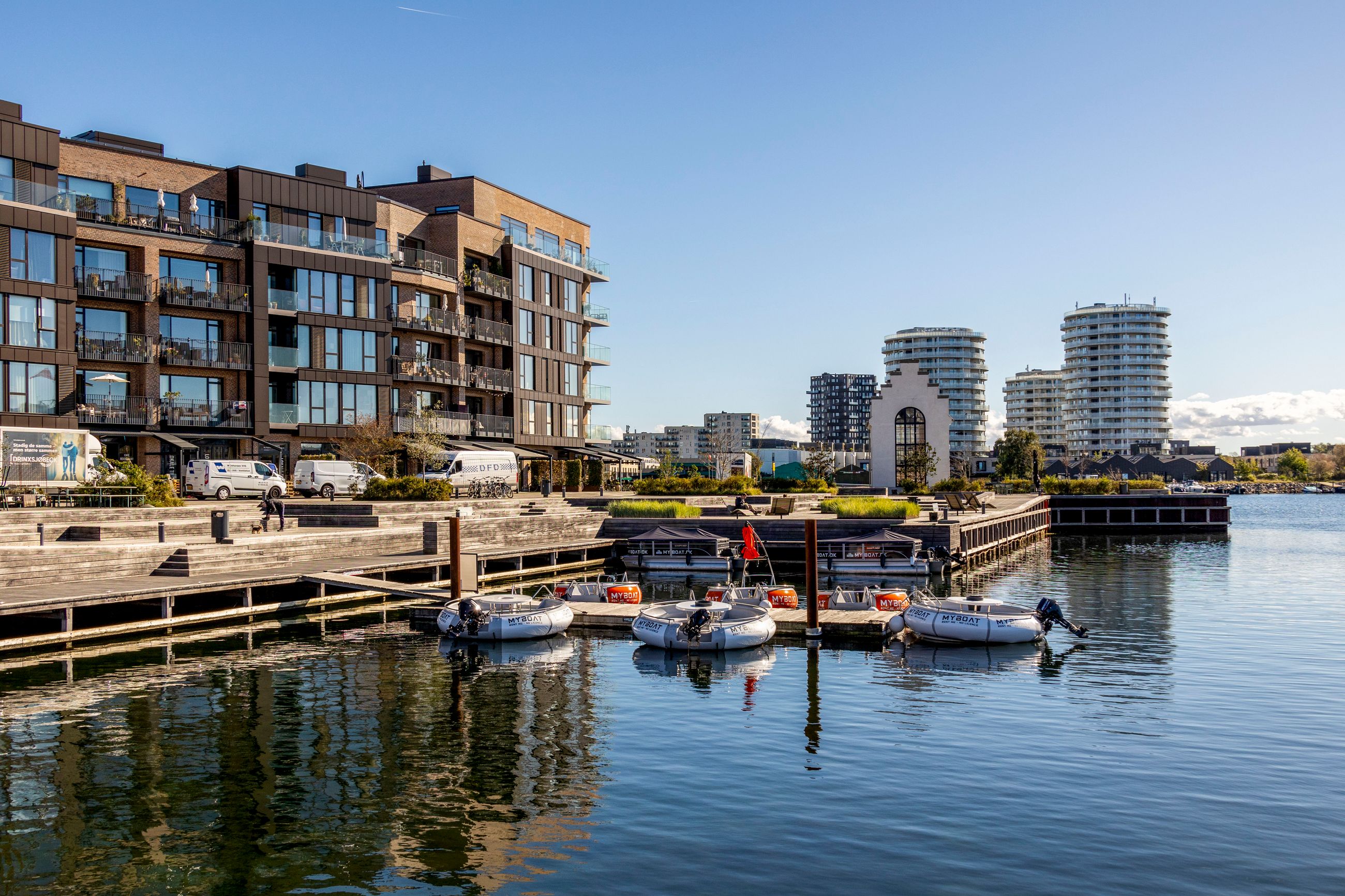 Lejligheden er beliggende på attraktive Engholmene et af Københavns nyeste og mest eksklusive boligområder. Her bor man direkte ved vandet i det fredelige og arkitektonisk velgennemtænkte kvarter, som forbinder Vesterbro, Islands Brygge og Sydhavnen. Området er præget af brede kanaler, moderne byggeri og maritime omgivelser, der leder tankerne hen på hollandske kanalbyer. Samtidig er der nem adgang til alt, hvad byen har at byde på cykelafstand til Indre By og Vesterbro, og med både havnebus og metro (Enghave Brygge station, åbnet juni 2024) inden for få minutters gang, er transportmulighederne helt i top.
