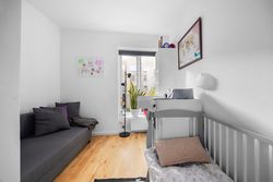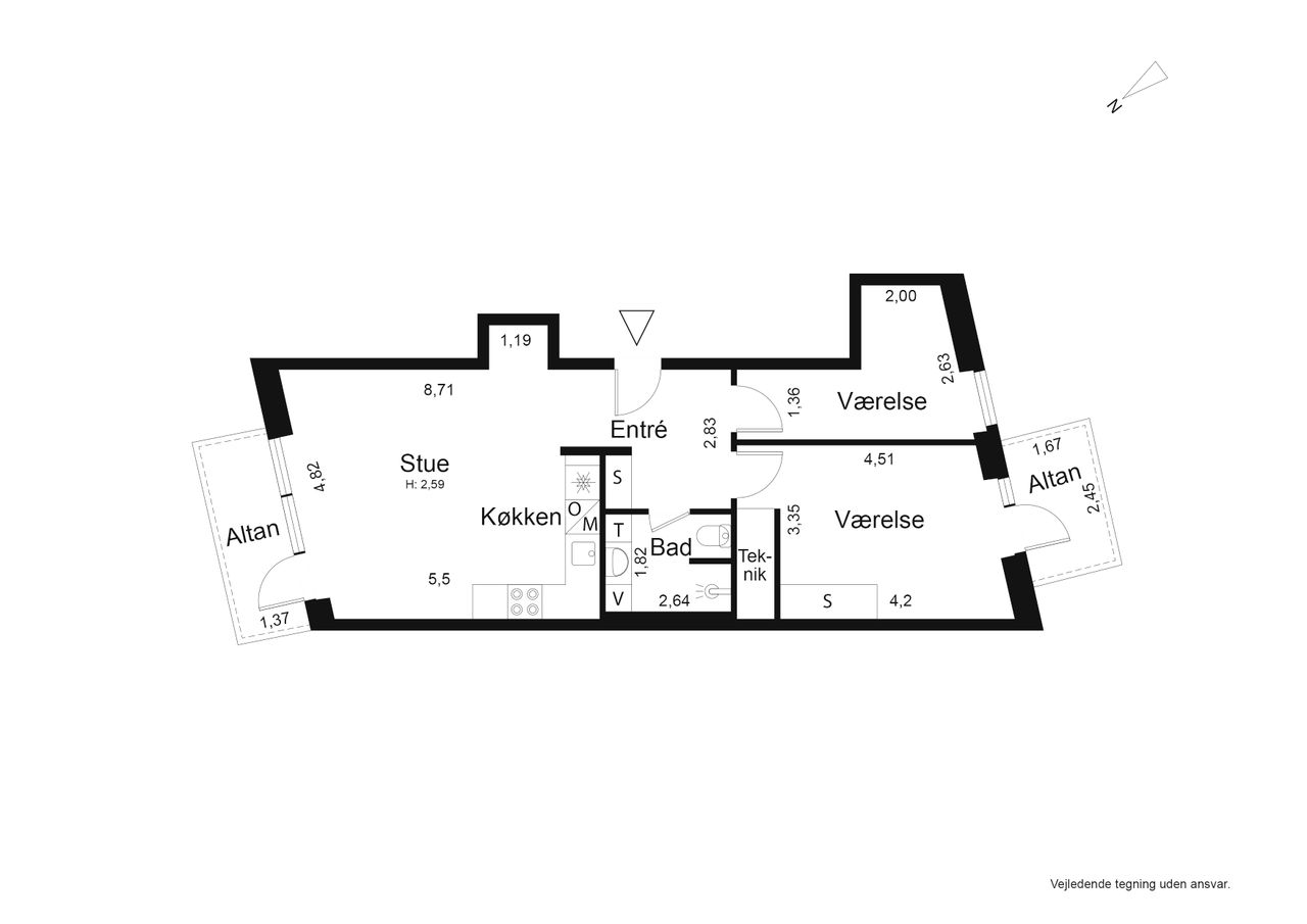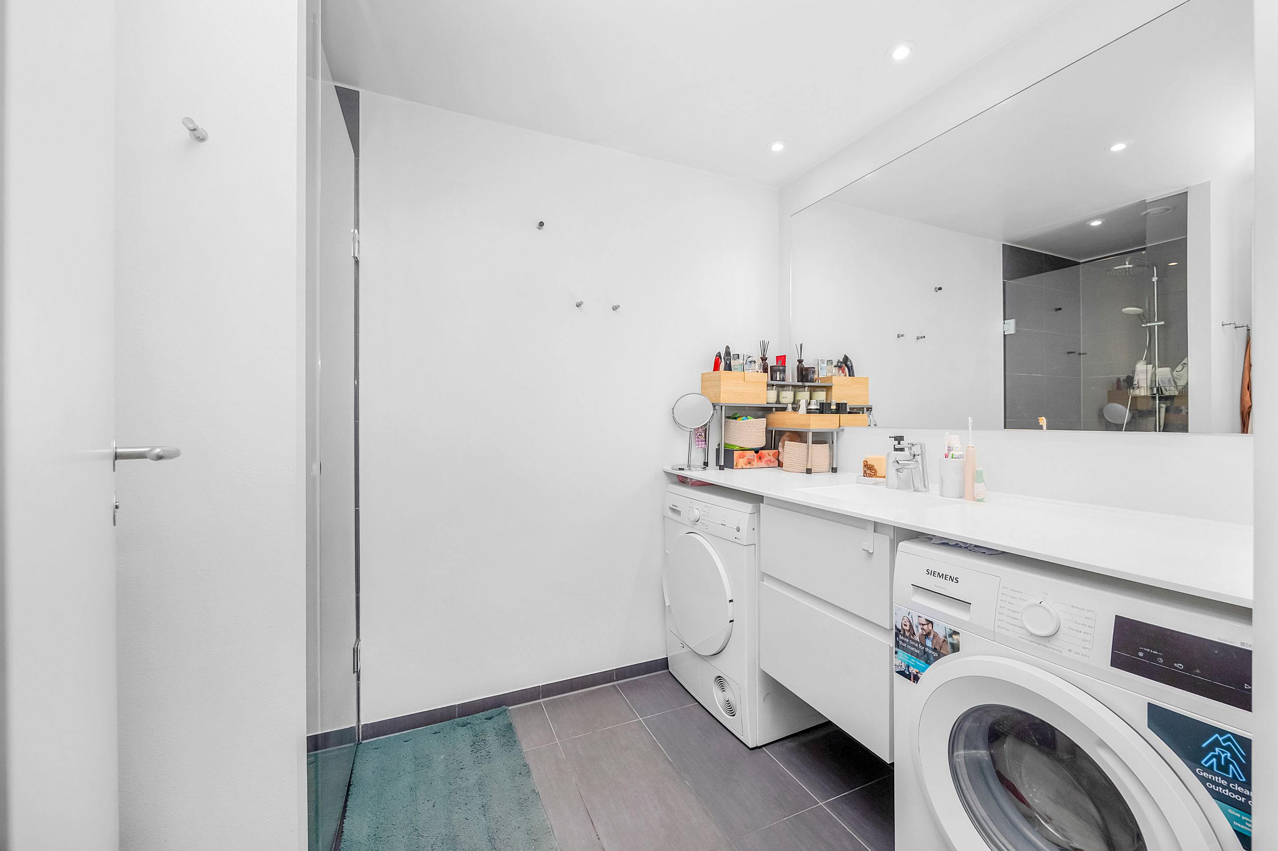 Fra entréen er der adgang til et flot badeværelse med separat bruseniche og vaskesøjle. Begge værelser er rummelige og nemme at indrette med plads til både skab og skrivebord. Det ene værelse fungerer oplagt som soveværelse mens det andet kan bruges som børneværelse kontor eller gæsteværelse alt efter behov.