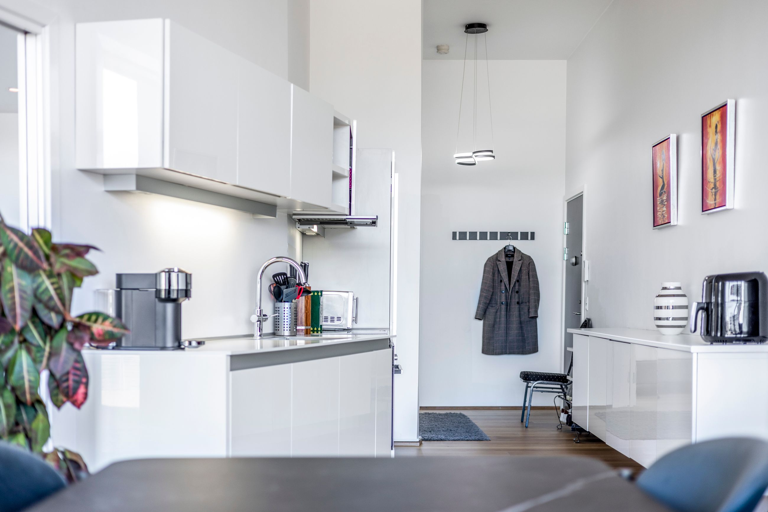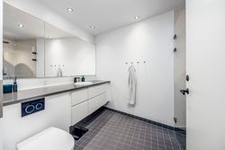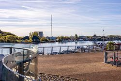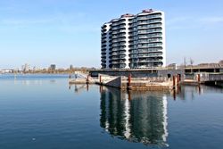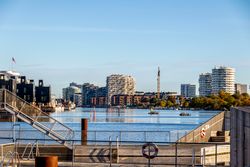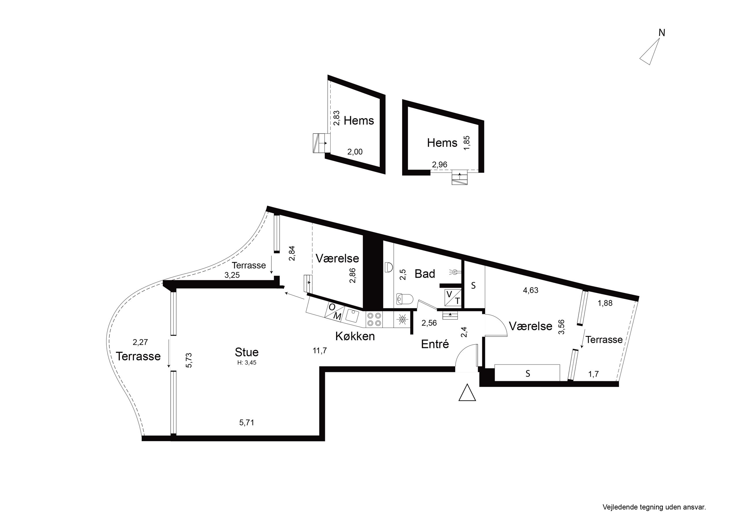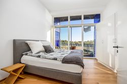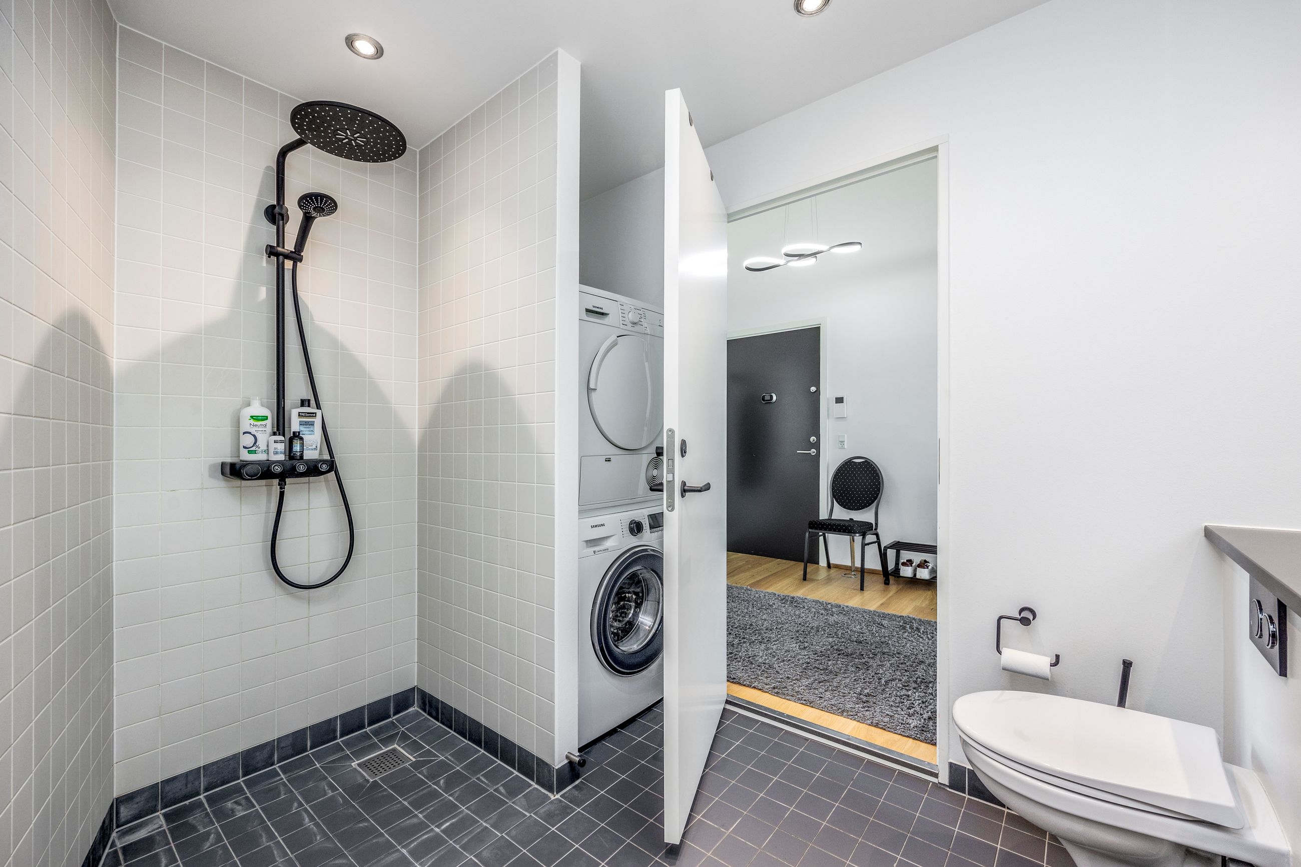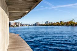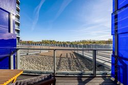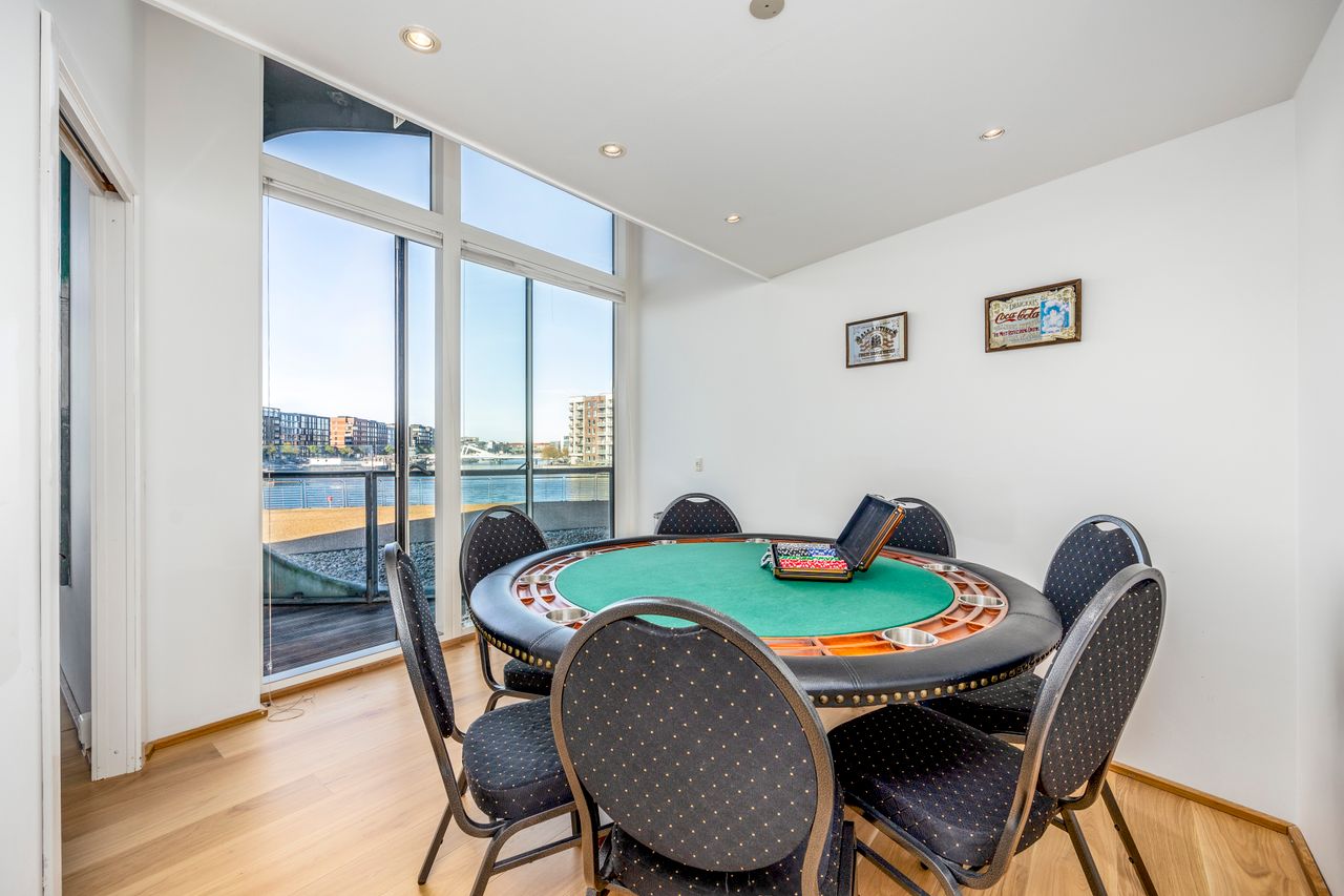 Lejligheden er en sjældent udbudt høj stuelejlighed på 106 m2, hævet over terræn og uden direkte kontakt til gadeplan – man har derfor ikke den almindelige københavneroplevelse af at bo i stueplan. Tværtimod giver niveauet den optimale højde til at fange den direkte vandudsigt fra stort set alle positioner i boligen. Boligen har altaner på begge sider og et imponerende kig langs kanalen. Indretningen er moderne og velfungerende med to gode soveværelser, to anvendelige hemse, et velproportioneret badeværelse samt et stort opholdsrum, hvor entré, køkken og stue flyder naturligt sammen. Køkkenet fremstår stilrent med lækre materialer, mens de store vinduespartier fra gulv til loft trækker udsigt og dagslys helt ind i boligen via den ca. 3,5 meter høje loftshøjde og lader de smukke trægulve komme til deres ret. Når behovet er ude, fortsætter udelivet på den store fælles tagterrasse, hvor København, Amager Fælled og Teglværkshavnen folder sig ud i horisonten.