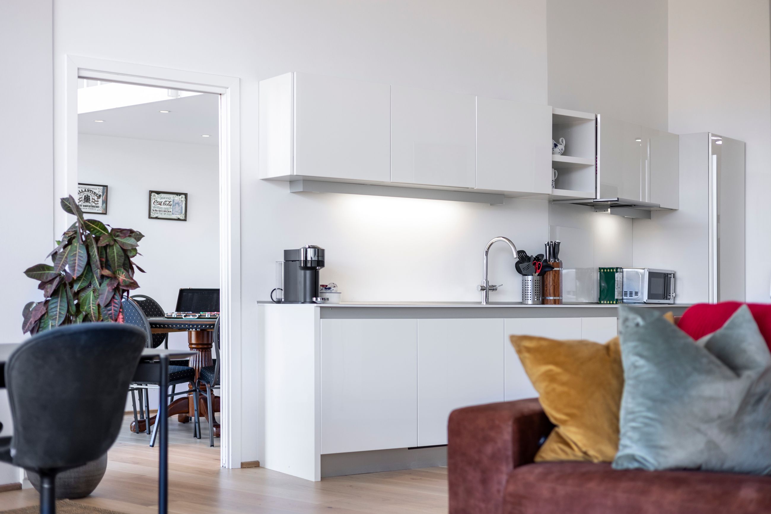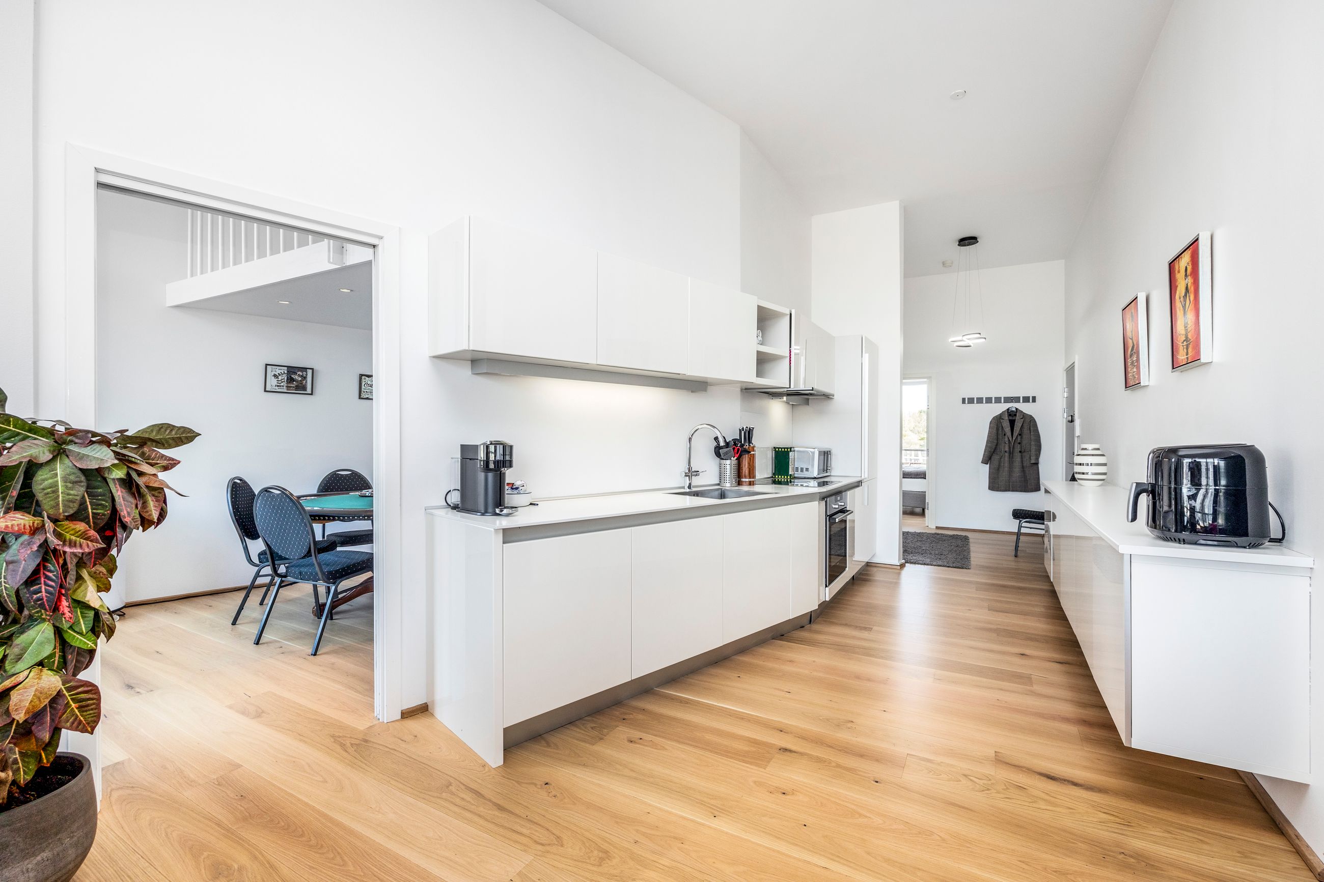 Nærmiljøet gør hverdagen enkel. Skole, daginstitutioner og indkøb findes i gåafstand, og både bus, havnebus og Sydhavn Station giver let adgang til resten af byen. Den nye metroforbindelse i området gør transport endnu mere smidig. På varme dage ligger Sydhavns havnebad få skridt fra hjemmet, så en dukkert kan blive en del af dagens rytme.