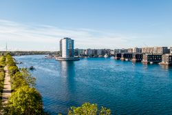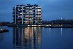 Med adresse på Sluseholmens mest markante punkt ligger den arkitektoniske ikonbygning Metropolis som en ø i byen, omgivet af vand til alle sider. Ejendommen rejser sig omkring 40 meter over havneløbet og er resultatet af et internationalt samarbejde mellem Kasper Danielsen Arkitekter og britiske Future Systems. Huset stod færdigt i 2008, rummer 11 etager og byder blandt andet på fælles tagterrasse med panorama, underjordisk parkering og adgang til egen marina. Den organiske formgivning fortsætter indendørs, hvor linjer og kurver spejler vandets bevægelse omkring bygningen.
