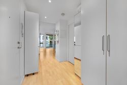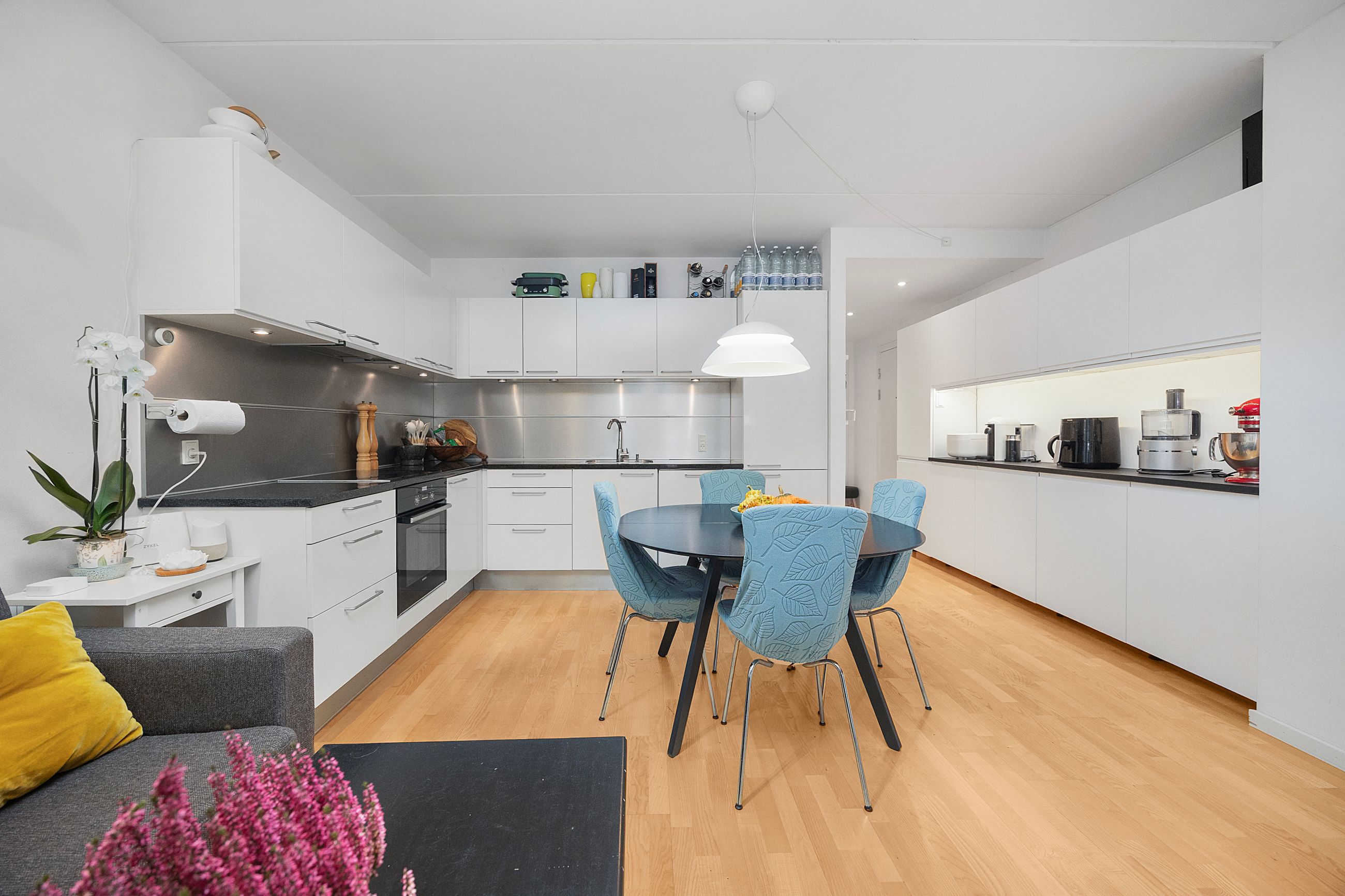 Velkommen til et lyst og indbydende hjem på Sluseholmen, hvor kanalerne bliver en del af hverdagen. Allerede fra entréen fornemmer du roen og det generøse lys, som fortsætter ind i det store opholdsmiljø med køkken og stue i åben forbindelse. Planløsningen er gennemtænkt med god skabsplads, tidløse materialer og et naturligt flow mellem rummene, så hverdagen glider let.