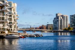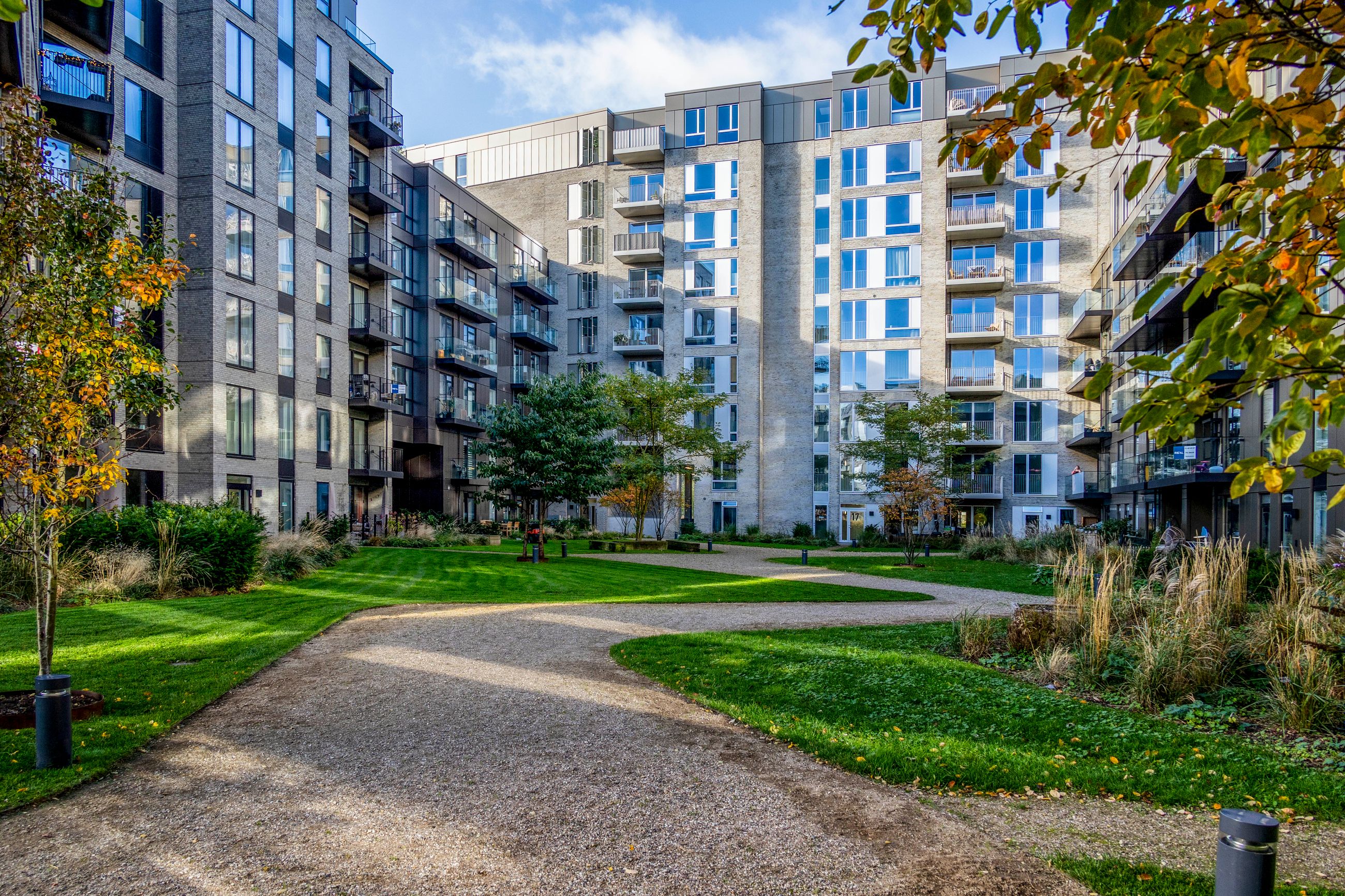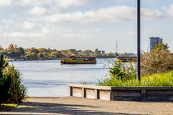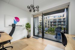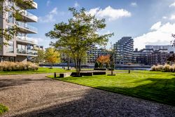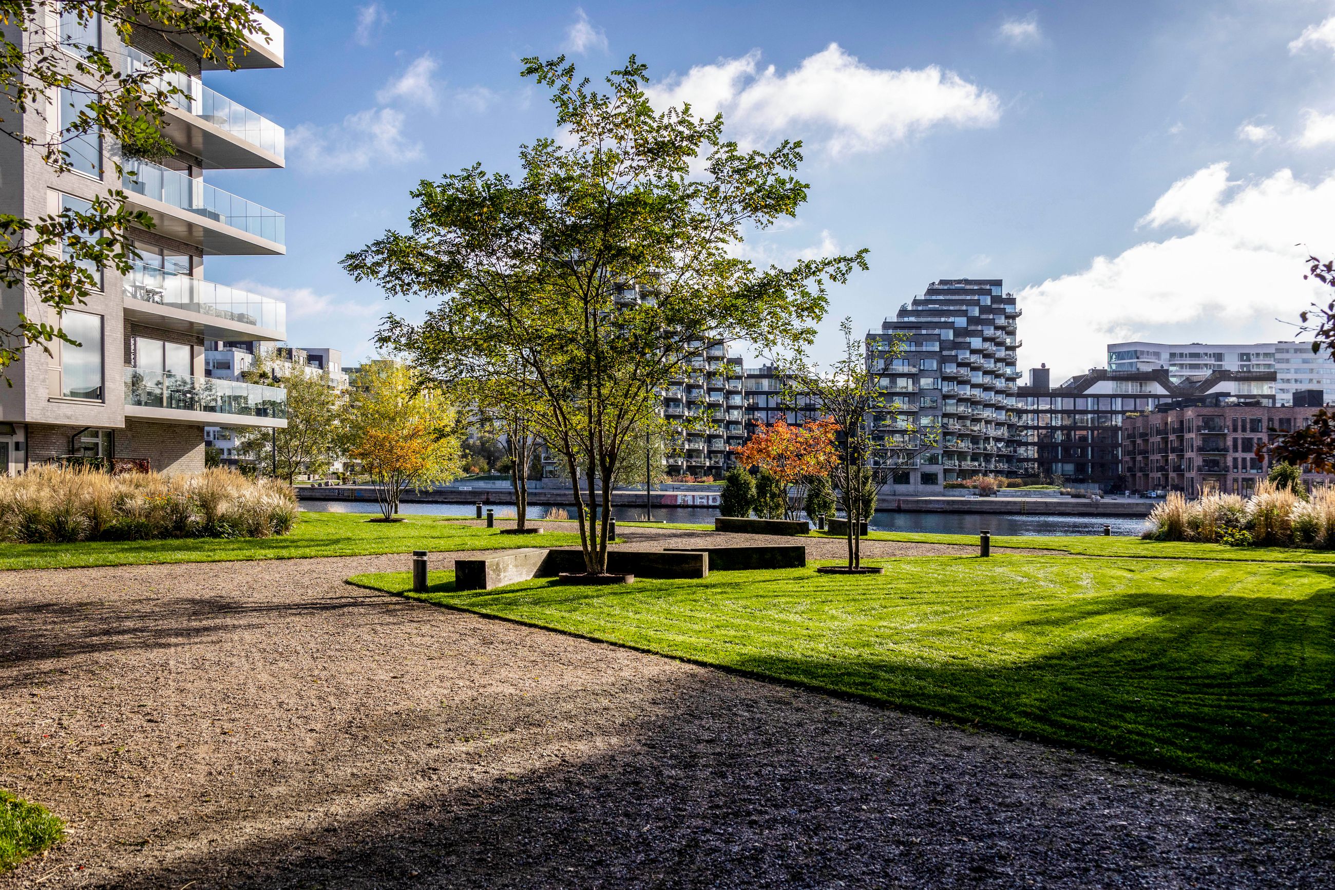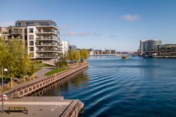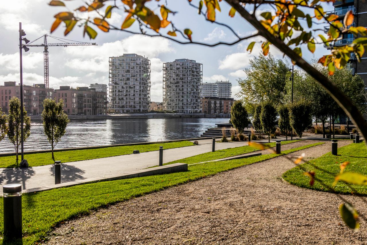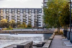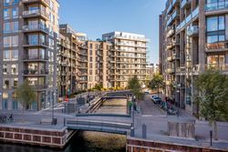 Ejendommen ligger i et nyere havnekvarter med promenader, opholdszoner og grønne lommer. Her bor du fredeligt, men bynært, tæt på indkøb, caféer og specialbutikker. Du har let adgang til både bus og havnebus, og der er metro og s tog i nærområdet