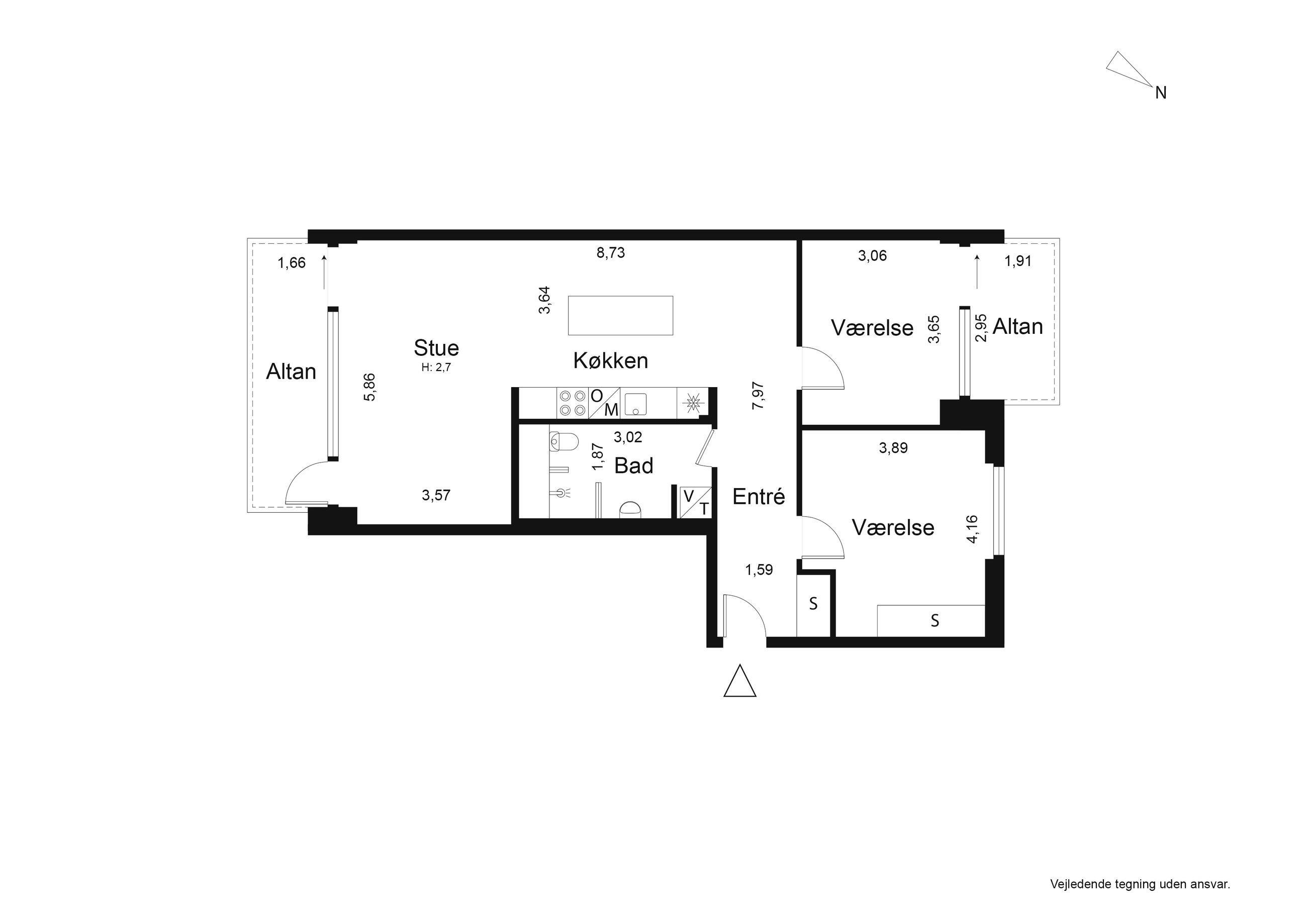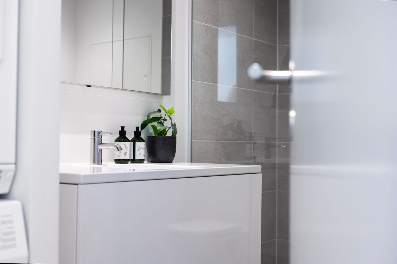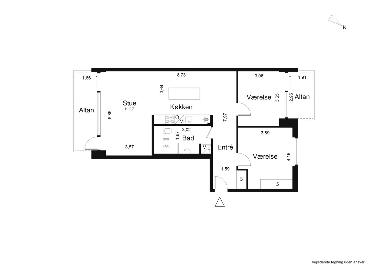 Planløsningen er veldisponeret med entré og god opbevaring, et køkken i åben forbindelse med opholdszonen, behagelige sove og opholdsrum samt et pænt badeværelse. Materialerne er holdt i et tidløst udtryk, der gør indretningen nem at tilpasse, og de gennemgående overflader binder hjemmet sammen på en rolig måde. Køkkenet ligger centralt, så madlavning, samtale og udsigt kan gå hånd i hånd, mens opholdszonen giver plads til både spiseplads og sofaarrangement. Boligen favner både hverdag og gæster, og den klare opdeling gør det nemt at etablere hjemmekontor eller ekstra soveplads efter behov.