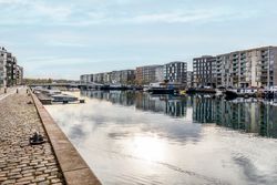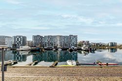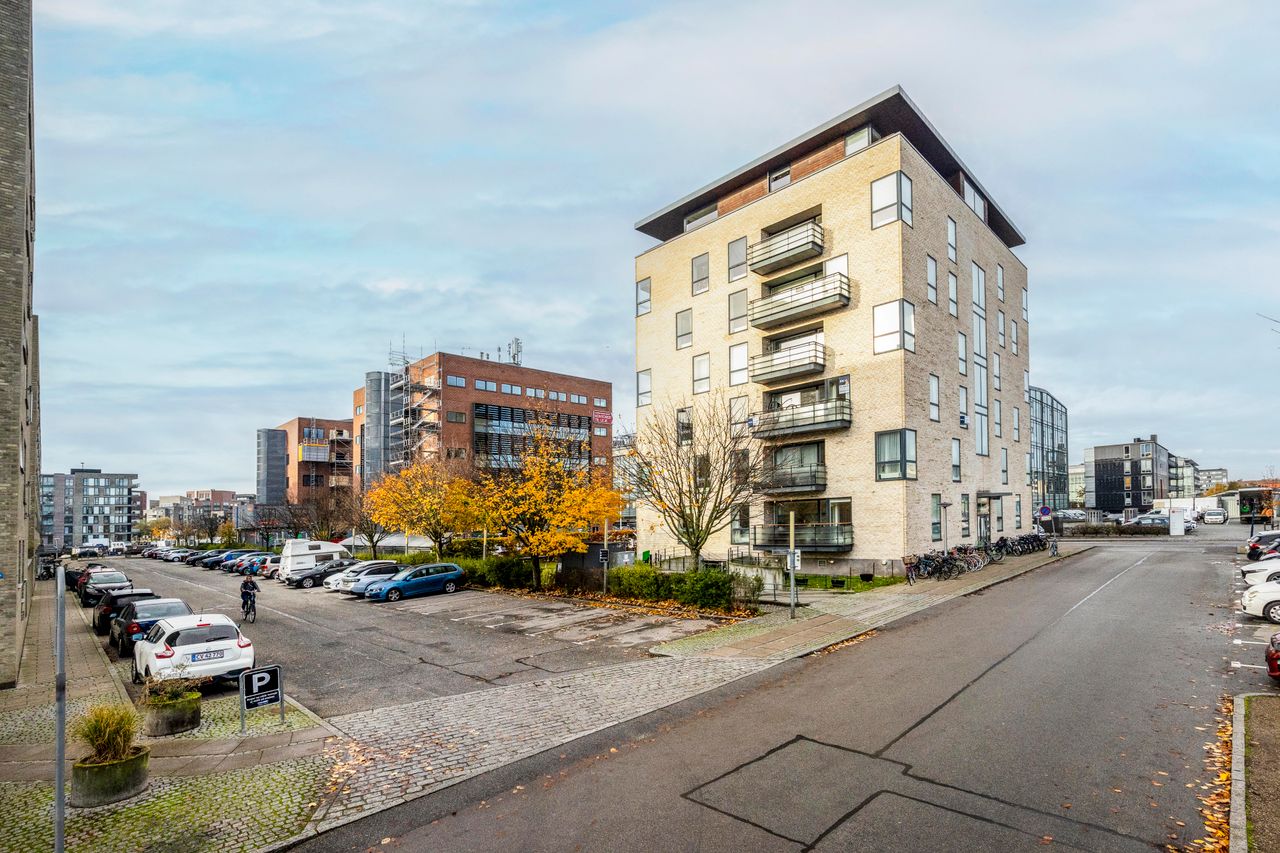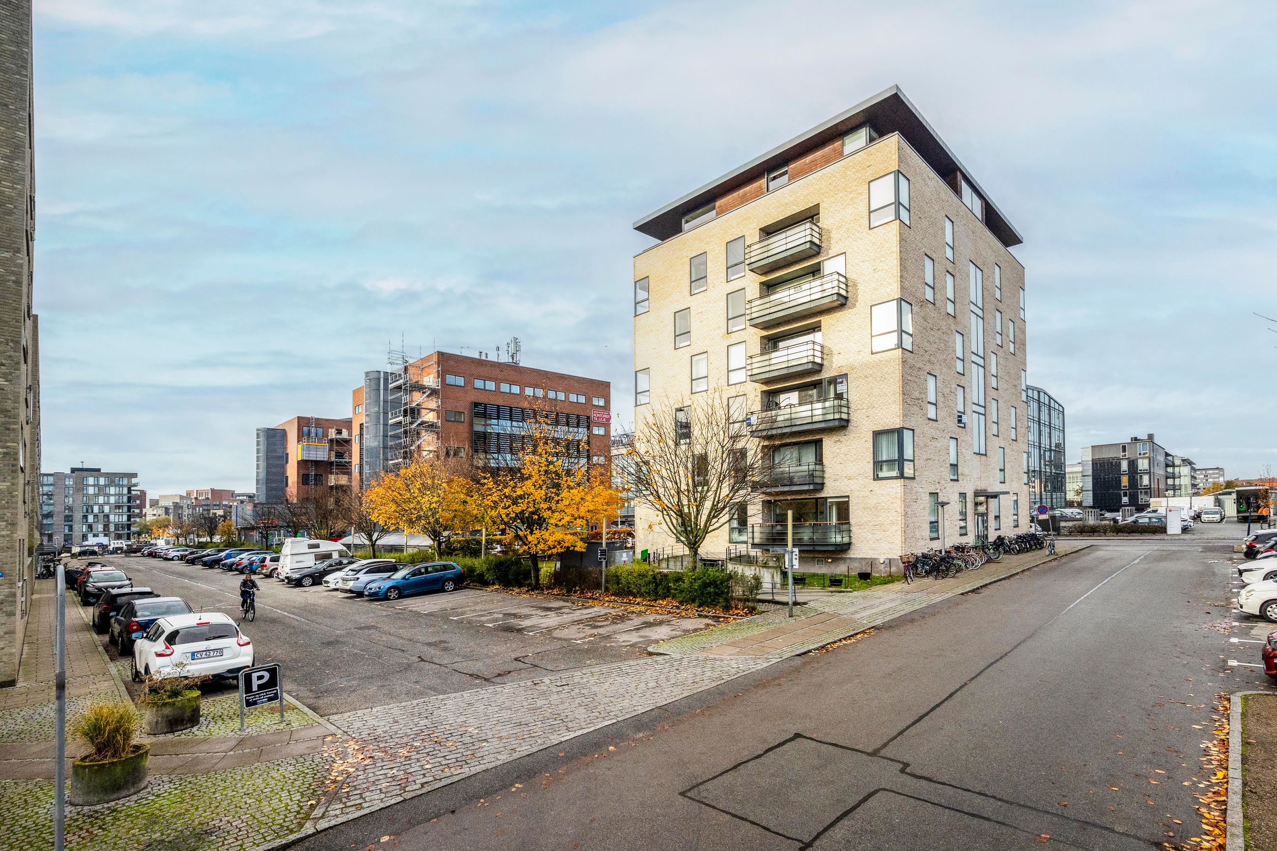 I bor bynært ved vandet med kanaler og kajpromenader lige om hjørnet. Gårdmiljøet rummer grønne arealer med borde/bænke til udeliv. Indkøb, caféer og spisesteder findes i nærområdet, og både Valby, Vesterbro og Sluseholmen nås hurtigt på cykel. Transporten er nem med bus, havnebus og metro i gåafstand. Havnebad og kajakker giver aktiv ramme.