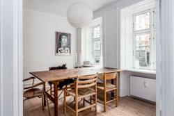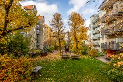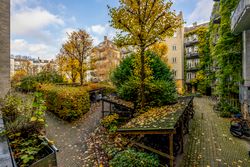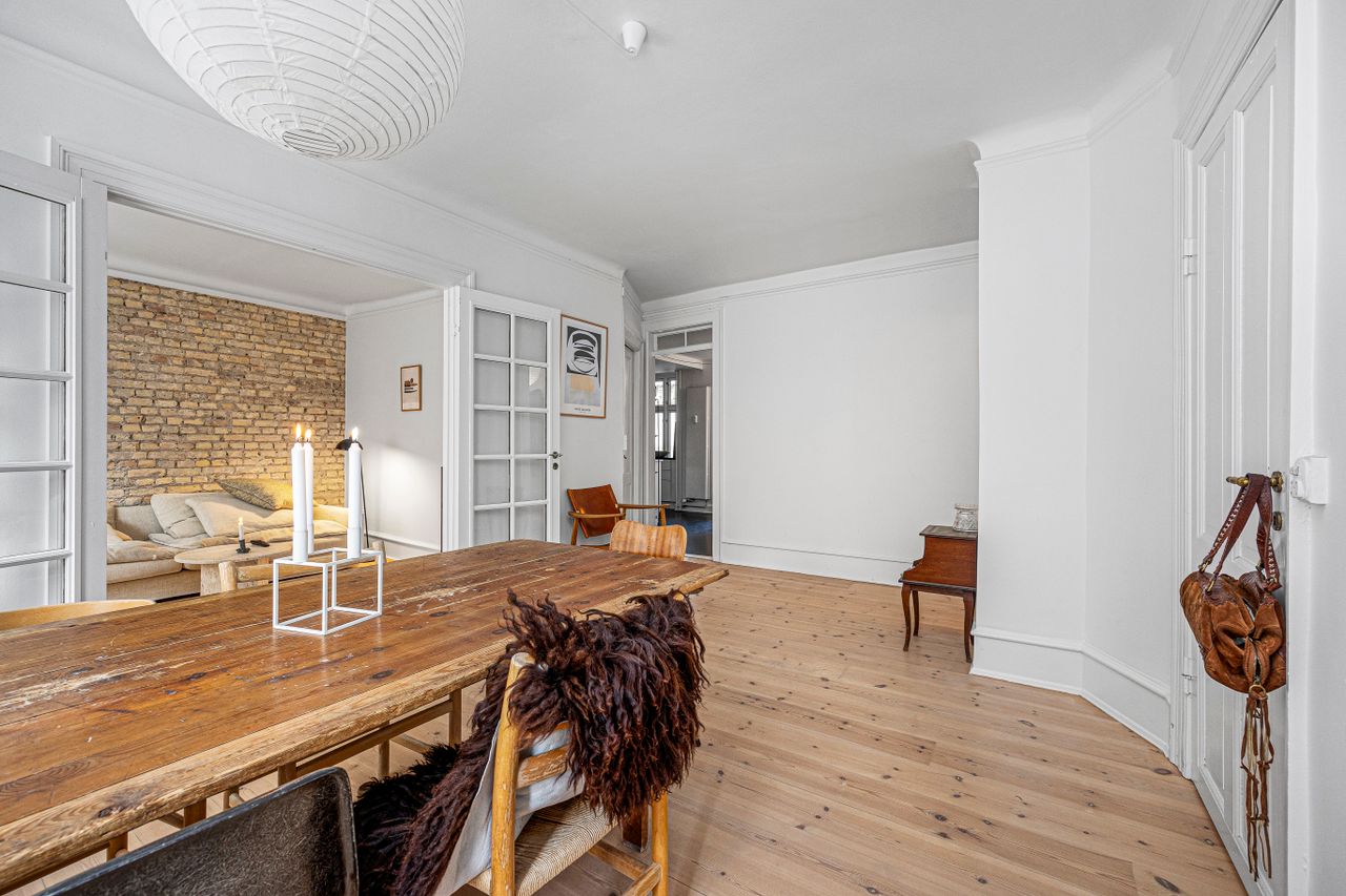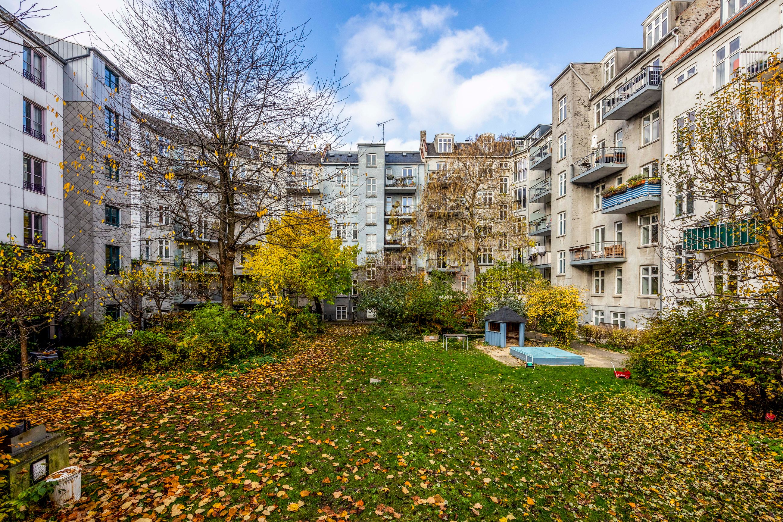 Klassisk københavnerkarré fra 1800-tallet med velholdt charme udefra. Lille, intim ejerforening med sund økonomi og ingen projekter i pipelinen. Grønt gårdmiljø med cykelparkering og to legepladser i den anden ende af gården, så børnene kan slippes løs, mens man kan holde øje fra altanen. Der følger desuden et stort, privat loftsrum med lejligheden.