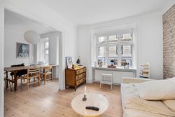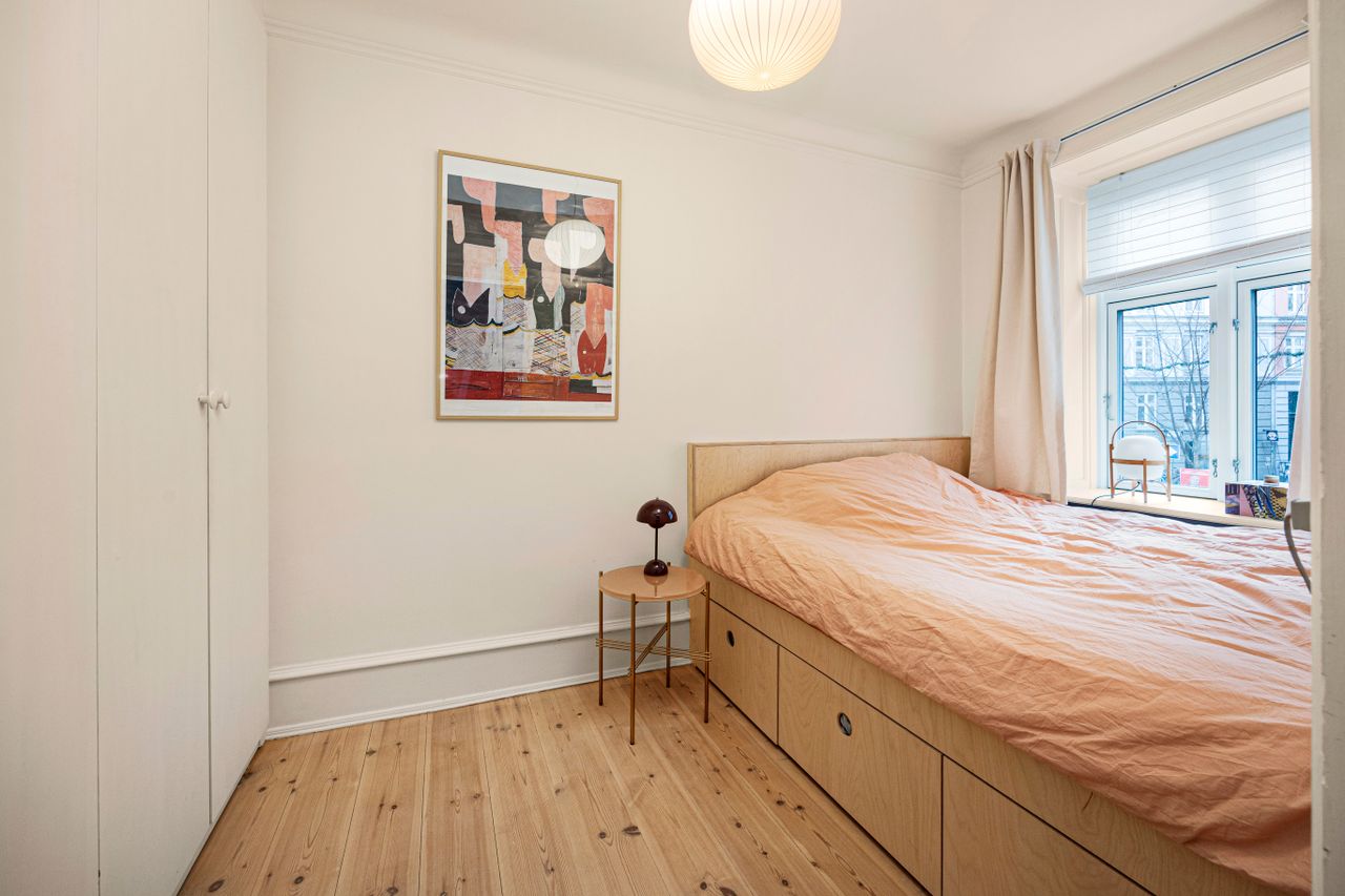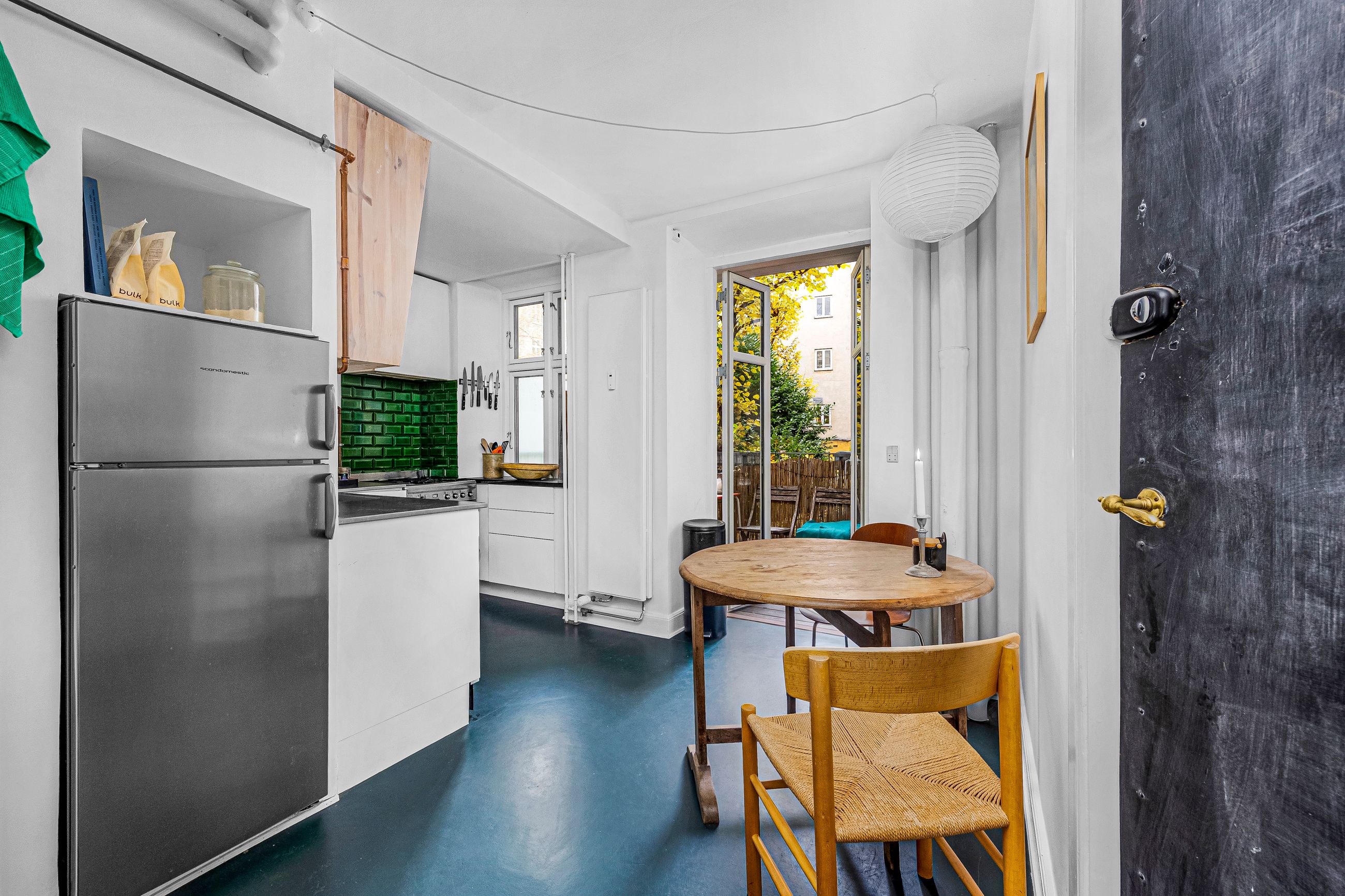 “Nørrebros Paris” – høj stue lejlighed med vintage tøjbutik som underbo. Velkommen til en gennemgående, indflytningsklar bolig på Egegade 2 – lige ved Sankt Hans Torv og Søerne. Planløsningen er delevenlig med to gode værelser og en lys stue med store sydvendte vinduer. De brede plankegulve er nyslebne, og hele lejligheden er nymalet for under et år siden. Køkkenet er fuldt funktionelt med opvaskemaskine, god bordplads og opbevaring, og der er plads til et rundt bord til fire. Herfra åbner dobbeltdøre til en stor altan mod den rolige gård. Badeværelset er rummeligt med separat bruseniche, vaskemaskine og behagelig gulvvarme. Soveværelset har indbygget seng og et dybt gulv-til-loft-skab. En fuldt funktionel lejlighed, der har det hele – oplagt til førstegangskøbere, forældrekøb, delevenner, ungt par eller solo.