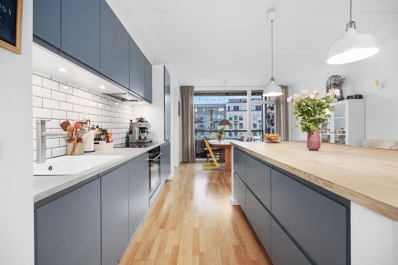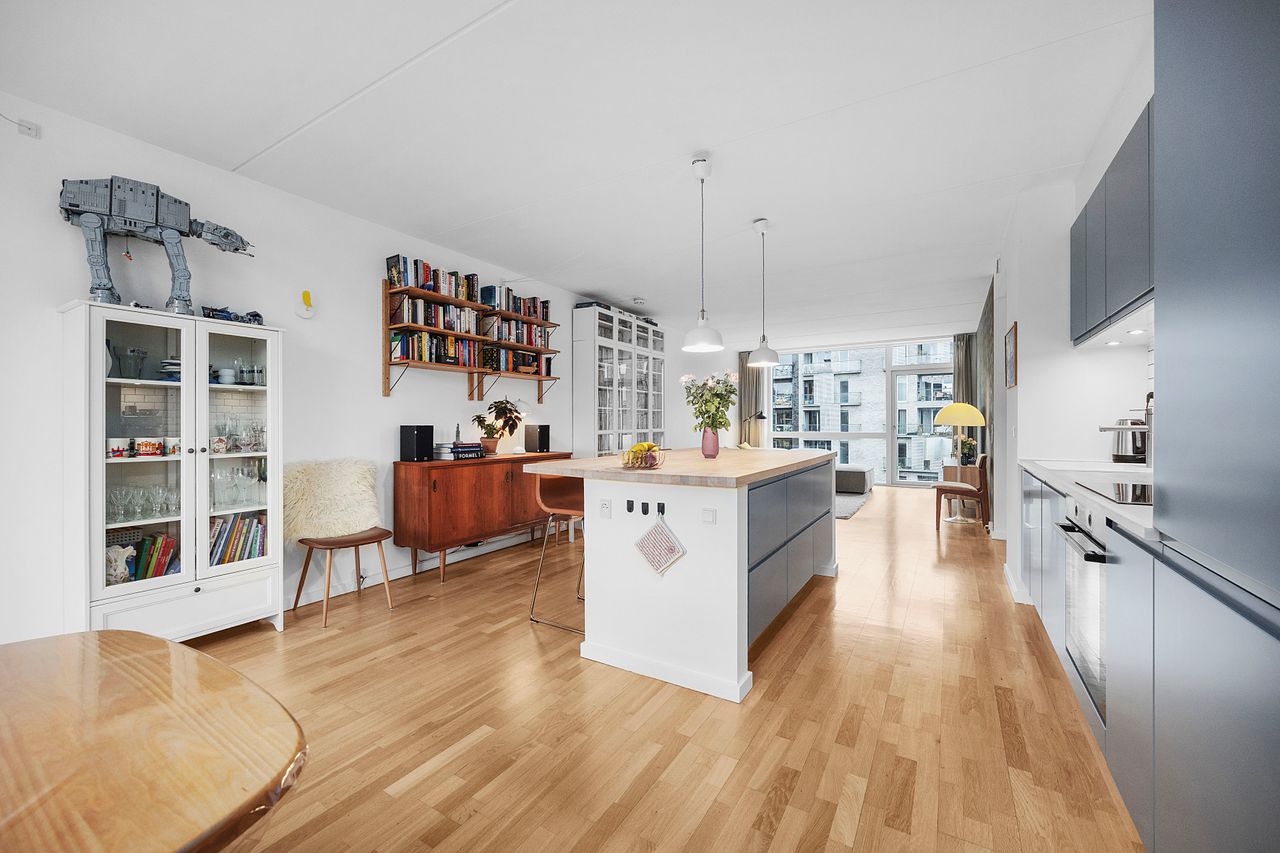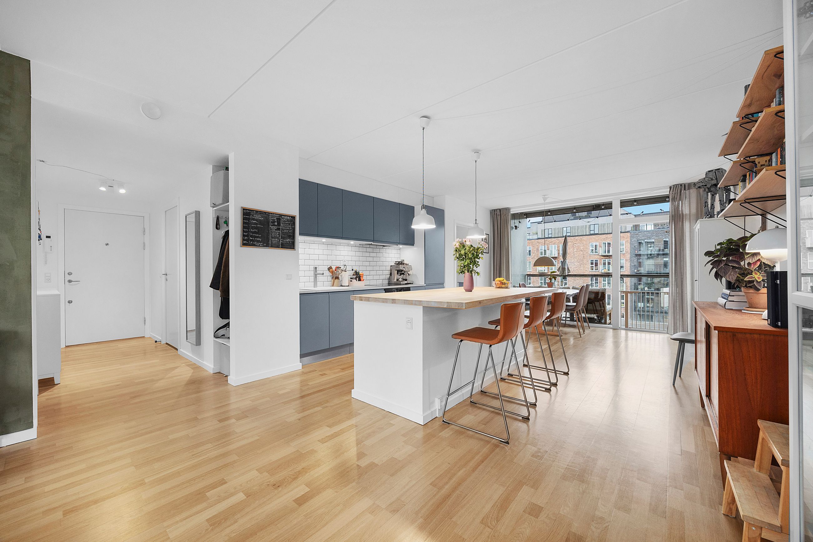 Højt til himlen, sol fra syd og kig til det glitrende vand – på Thad Jones Vej 6, 3. th. får du en lys og veldisponeret lejlighed på 106 kvm, hvor funktionalitet, atmosfære og delevenlighed går hånd i hånd.