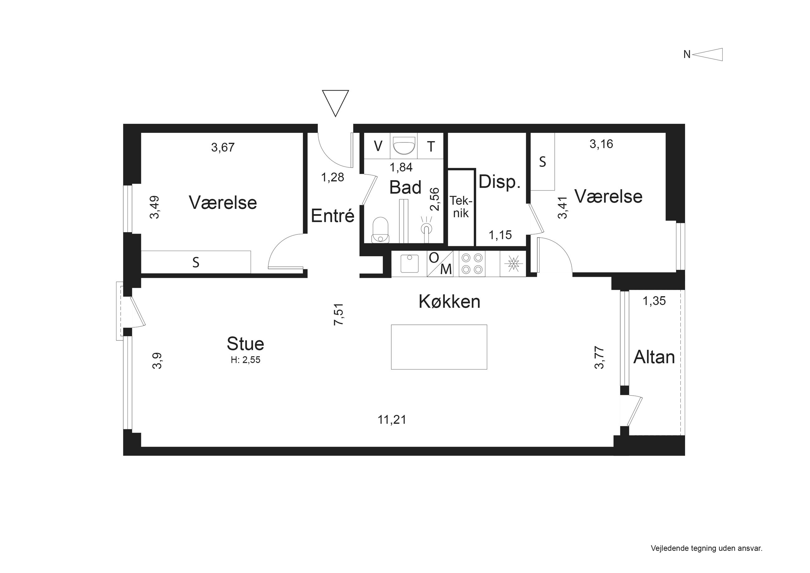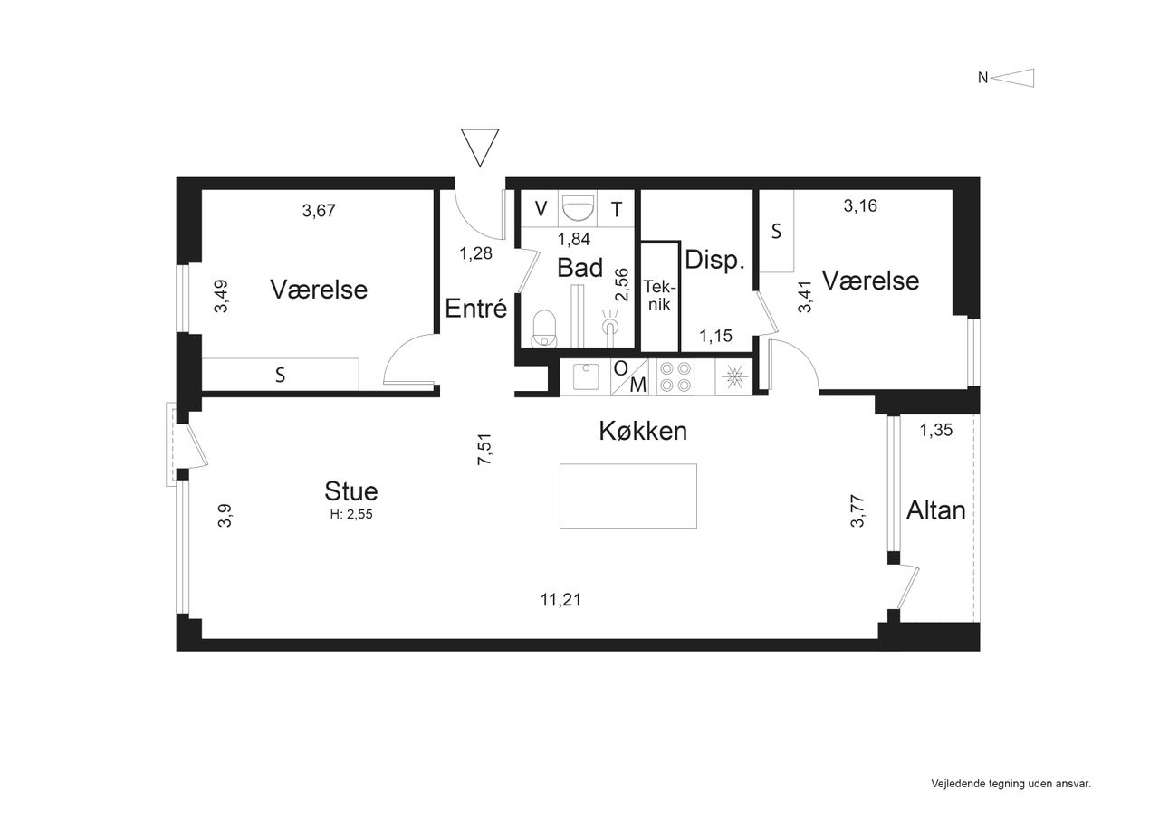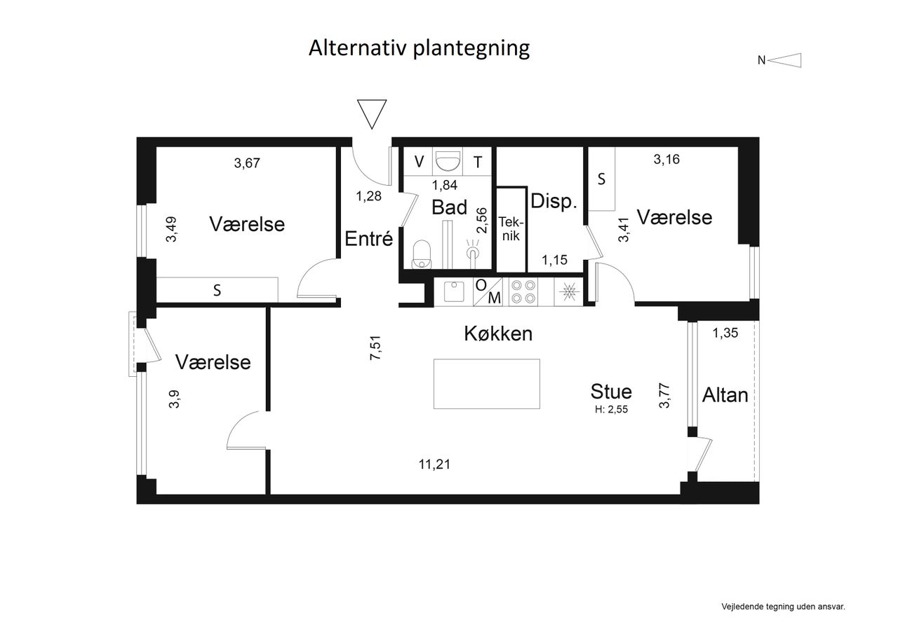 Lejligheden er oplagt til både par, små familier og som delelejlighed, da de to soveværelser ligger i hver sin ende af boligen. Det giver en naturlig opdeling og godt privatliv. Begge værelser har gode indretningsmuligheder, og planløsningen er gennemtænkt og fleksibel. Man kan tilmed etablere et ekstra værelse, se alternativt plantegning.
