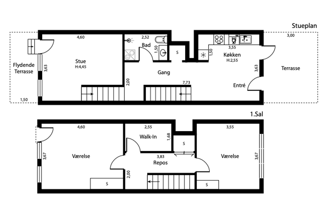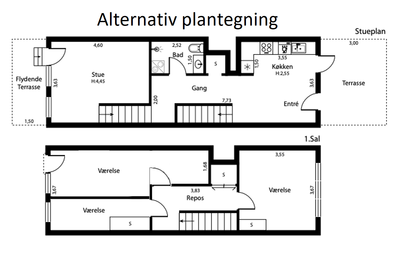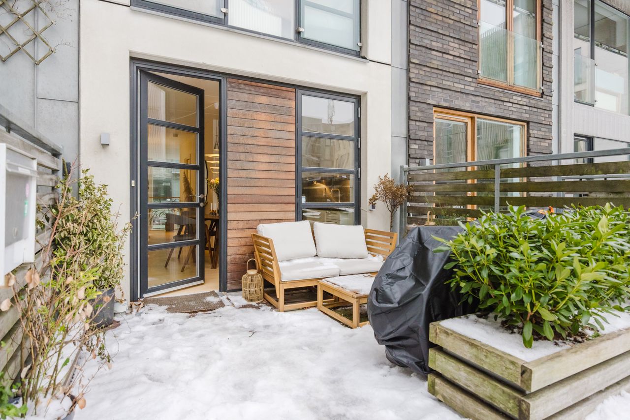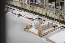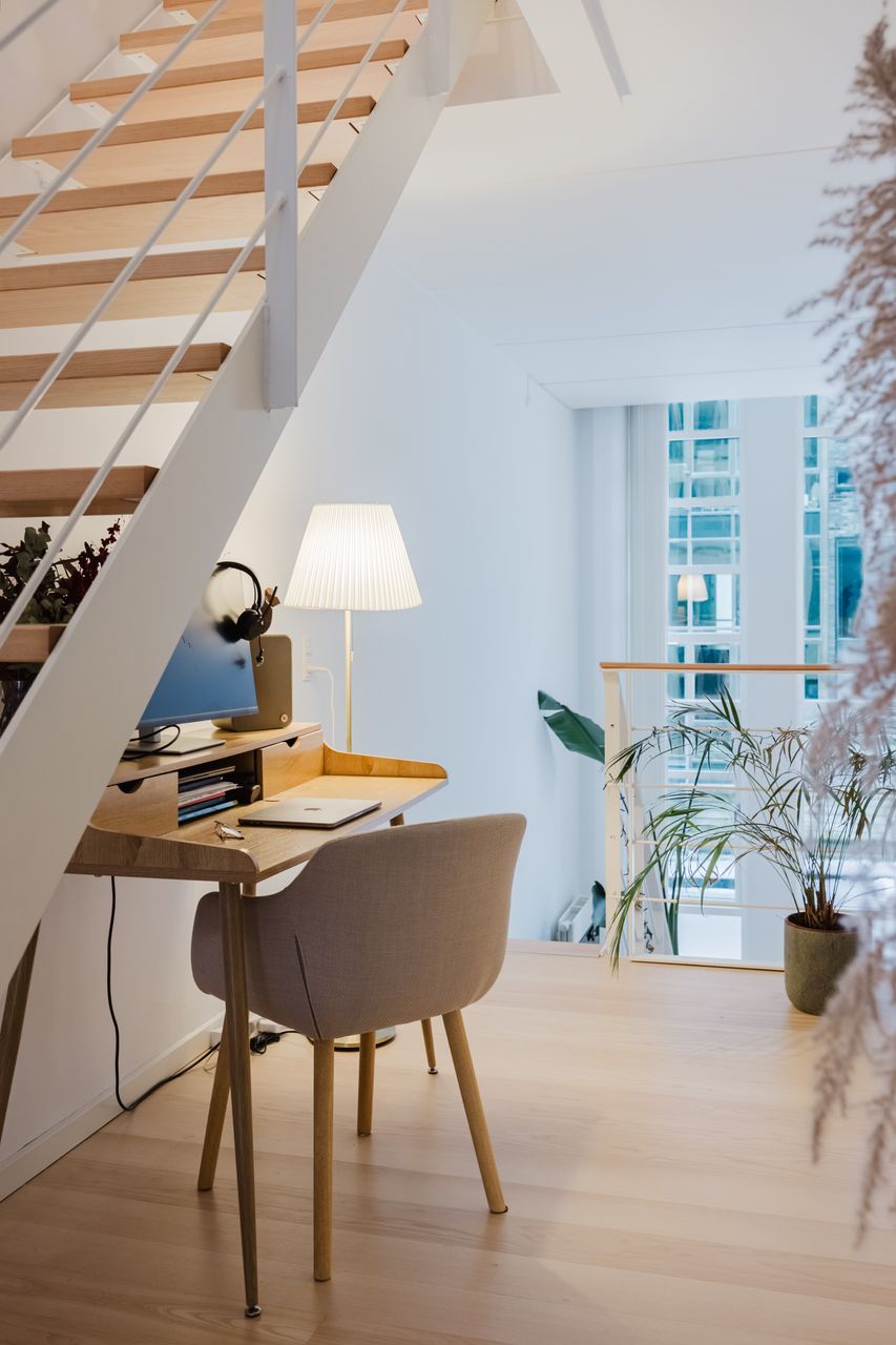 Køkken og stue er sepereret og sørger for god opdeling af rummene. Planløsningen er velovervejet, og hver kvadratmeter er udnyttet effektivt. Fra opholdsrummet er der direkte adgang til pontonen mod vandet, hvor man kan nyde solen og det levende havnemiljø. Pontonen fungerer som et ekstra uderum og giver mulighed for både badning, kajak eller blot ophold med udsigt over kanalen.