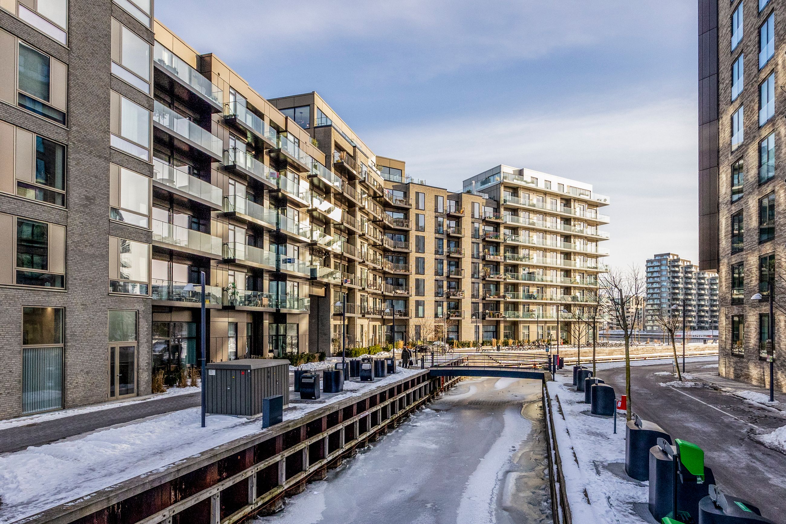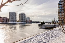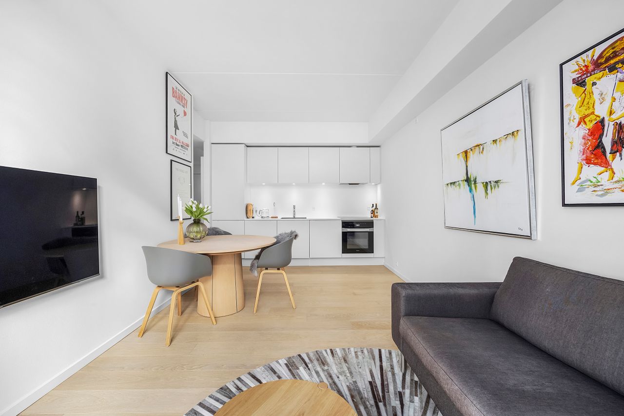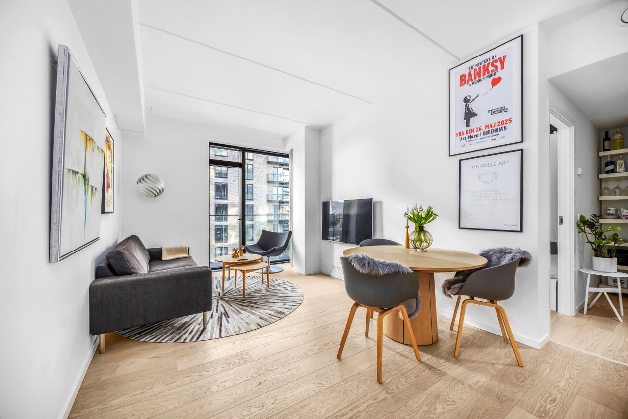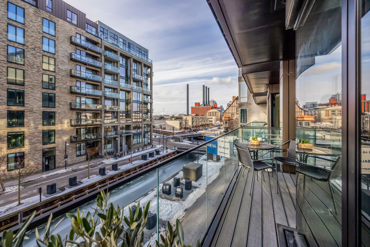Beliggenheden på Engholmene giver dig den særlige kombination af vand, luft og bynærhed. Området er præget af nyere arkitektur, brede passager og en rolig stemning, samtidig med at du har indkøb, caféer og gode stiforbindelser tæt på. Metroen ved Enghave Brygge ligger inden for nem rækkevidde, og cyklen tager dig hurtigt videre mod Bryggen og Indre By.