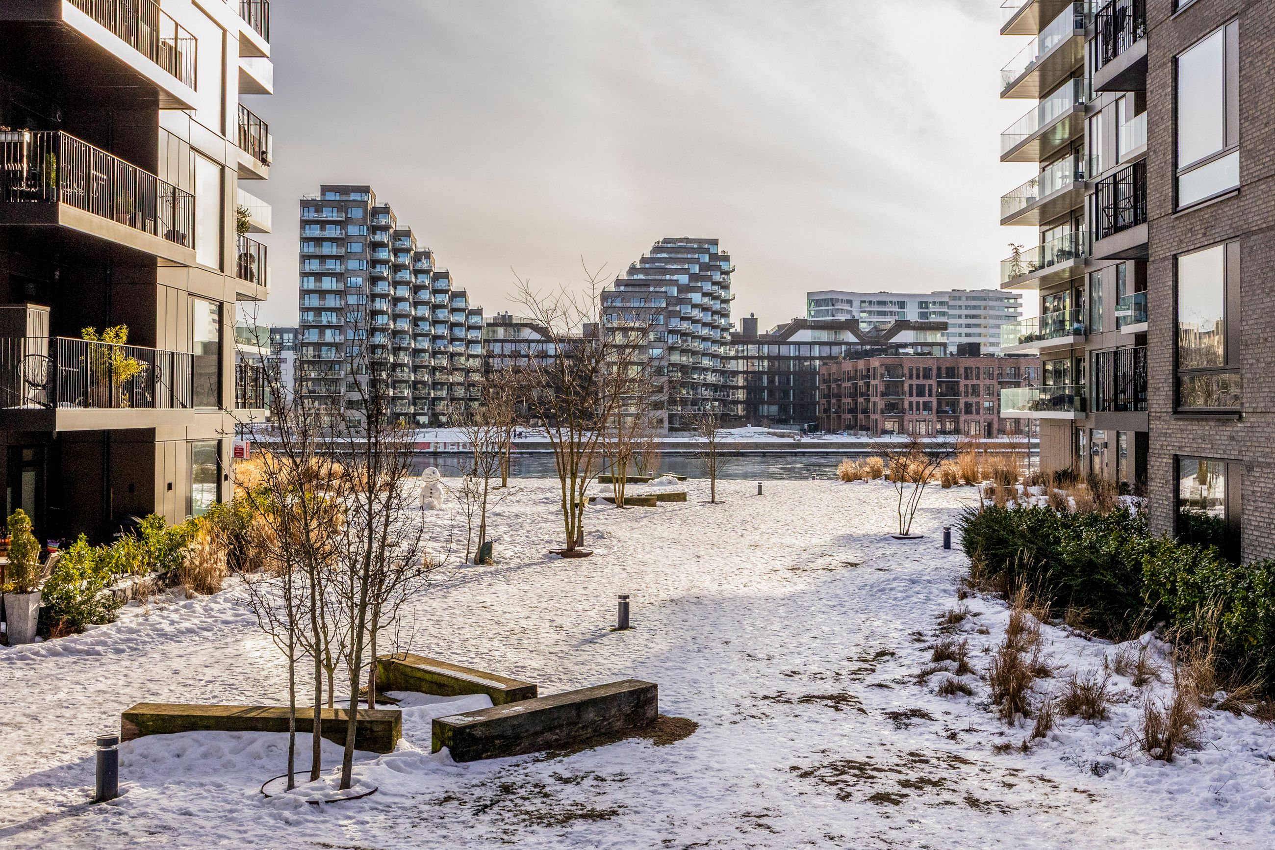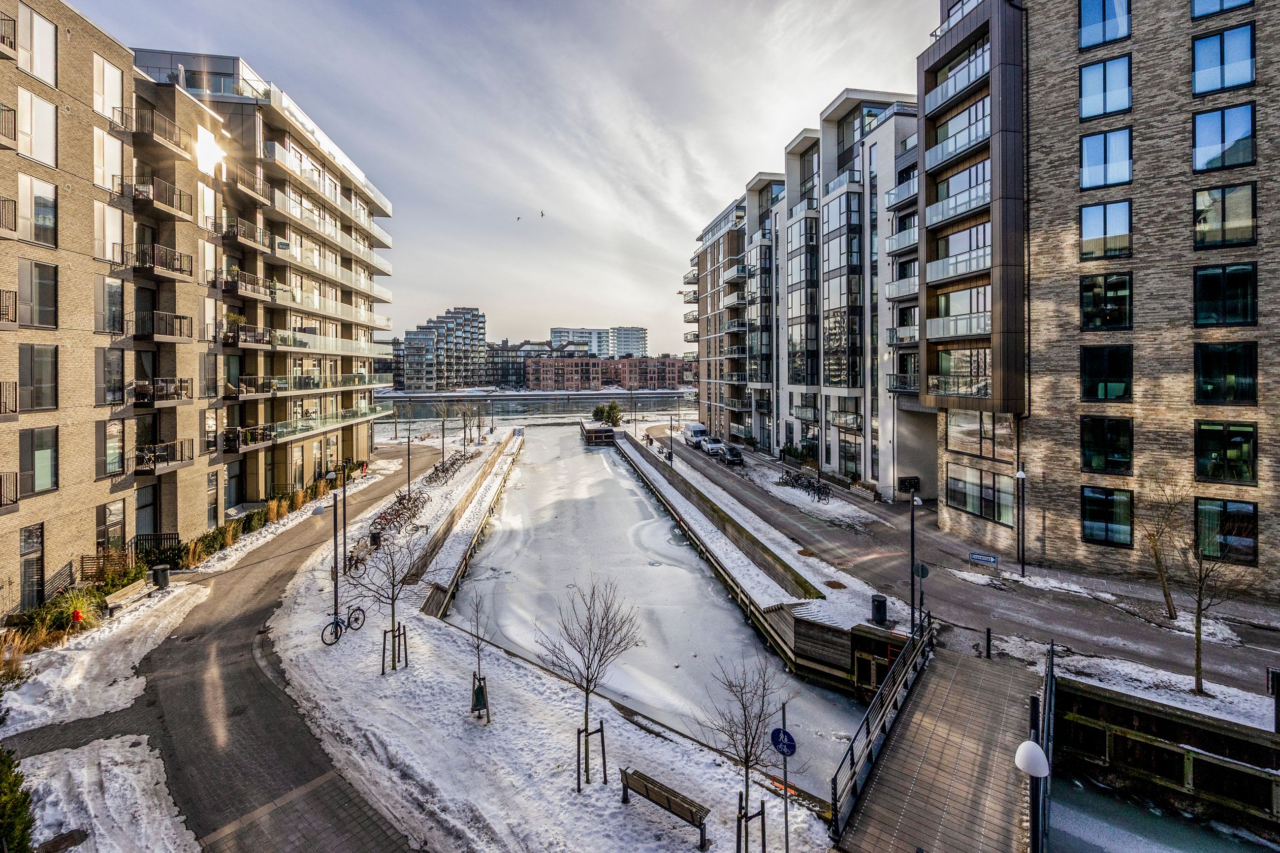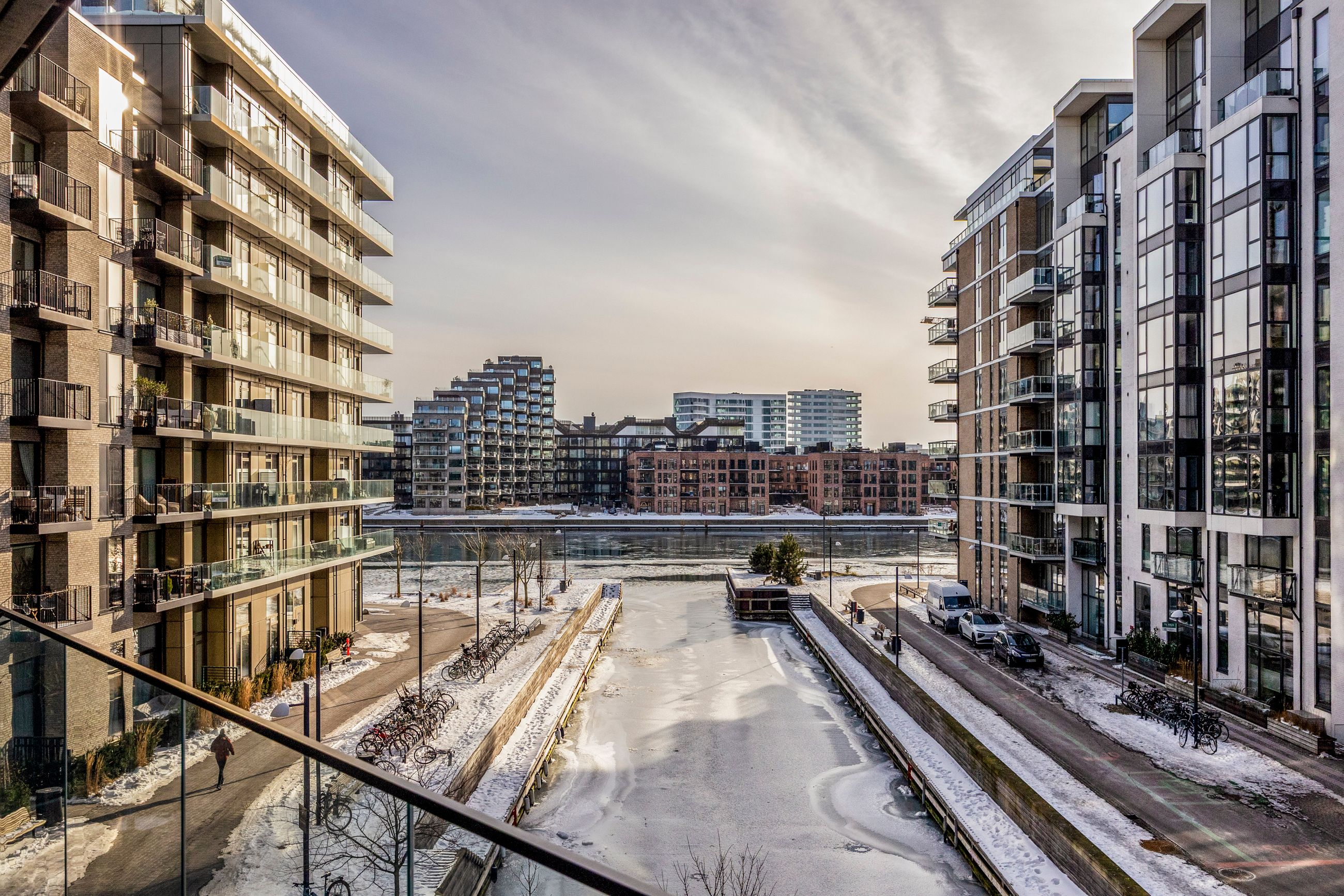 Beliggenheden på Engholmene giver dig den særlige kombination af vand, luft og bynærhed. Området er præget af nyere arkitektur, brede passager og en rolig stemning, samtidig med at du har indkøb, caféer og gode stiforbindelser tæt på. Metroen ved Enghave Brygge ligger inden for nem rækkevidde, og cyklen tager dig hurtigt videre mod Bryggen og Indre By.