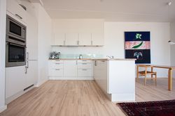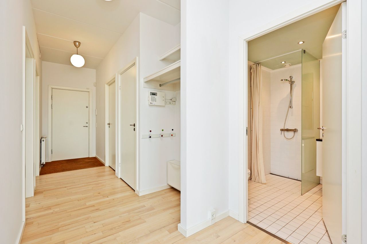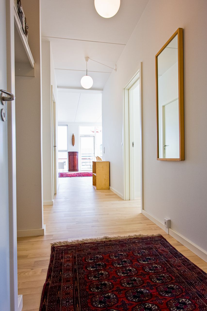 På Kenny Drews Vej 101 finder du en imponerende og særdeles veldisponeret lejlighed, hvor arkitektur, lys og udsigt spiller sammen på fornem vis. De høje og brede vinduespartier sætter scenen allerede ved første øjekast og giver et markant lysindfald, som løfter hele boligen og skaber en åben, eksklusiv atmosfære. Det store køkken alrum er boligens naturlige midtpunkt og indbyder til både hverdagsliv og større sammenkomster, mens de fire regulære soveværelser giver plads til familien, hjemmearbejdspladsen eller gæster uden kompromiser. Fra stuen er der direkte adgang til den rummelige altan, hvor solen kan nydes fra morgen til aften. Her får du en sjælden og betagende udsigt over Slusen og Amager Fælled, som giver en helt særlig følelse af luft, ro og nærhed til naturen. Planløsningen er knivskarp og uden spildplads, og via fordelingsgangen er der nem og overskuelig adgang til lejlighedens to badeværelser samt samtlige rum. En bolig, der både imponerer visuelt og fungerer perfekt i hverdagen.