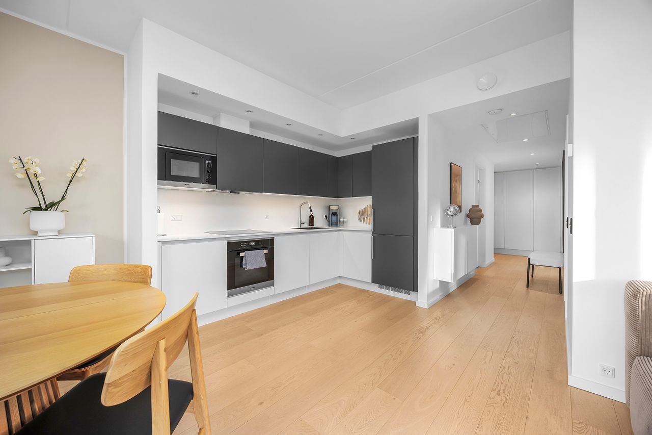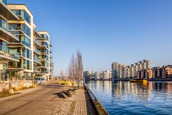 Området: Beliggenheden på Engholmene er noget helt særligt. Her bor du tæt på vandet med kanaler, promenader og grønne opholdsarealer lige uden for døren, samtidig med at byen er inden for nem rækkevidde. Området byder på indkøb, caféer og metro, så hverdagen bliver både nem og bekvem. En ideel bolig for dig, der ønsker et moderne hjem i rolige, vandnære omgivelser, uden at give afkald på byens muligheder.