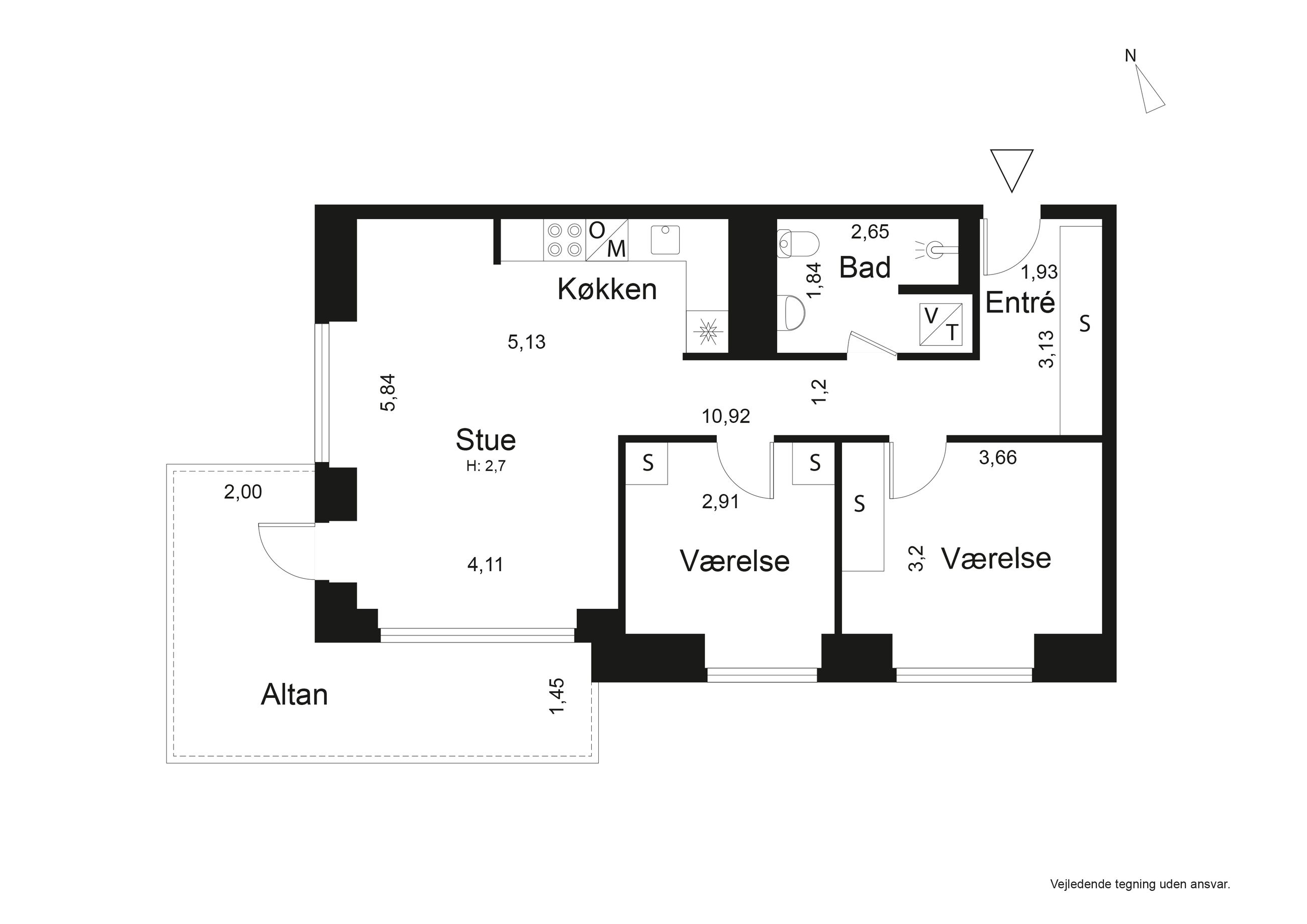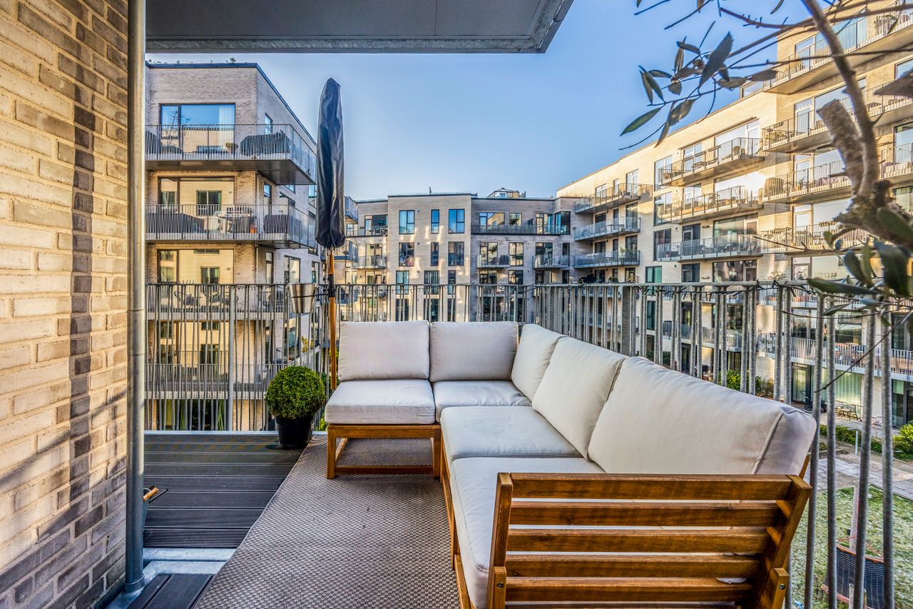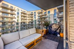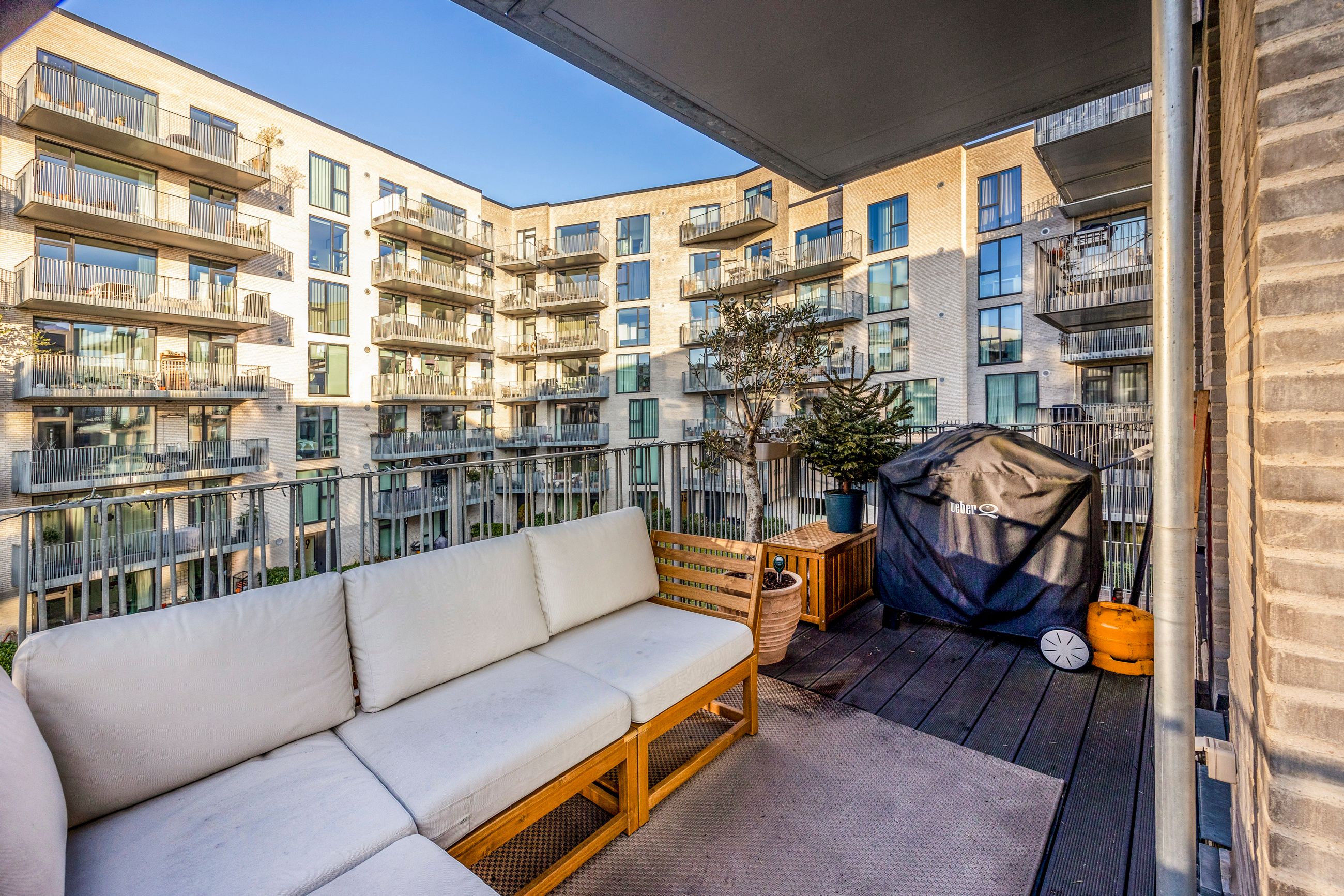 Fra opholdsrummet er der udgang til altanen, som fungerer som en naturlig forlængelse af boligen. Her er der god plads til at indrette sig med cafébord eller loungestemning, og altanen bliver hurtigt det sted, man bruger igen og igen, specielt til morgenkaffen, en rolig stund i solen eller et glas vin, når dagen går på hæld.