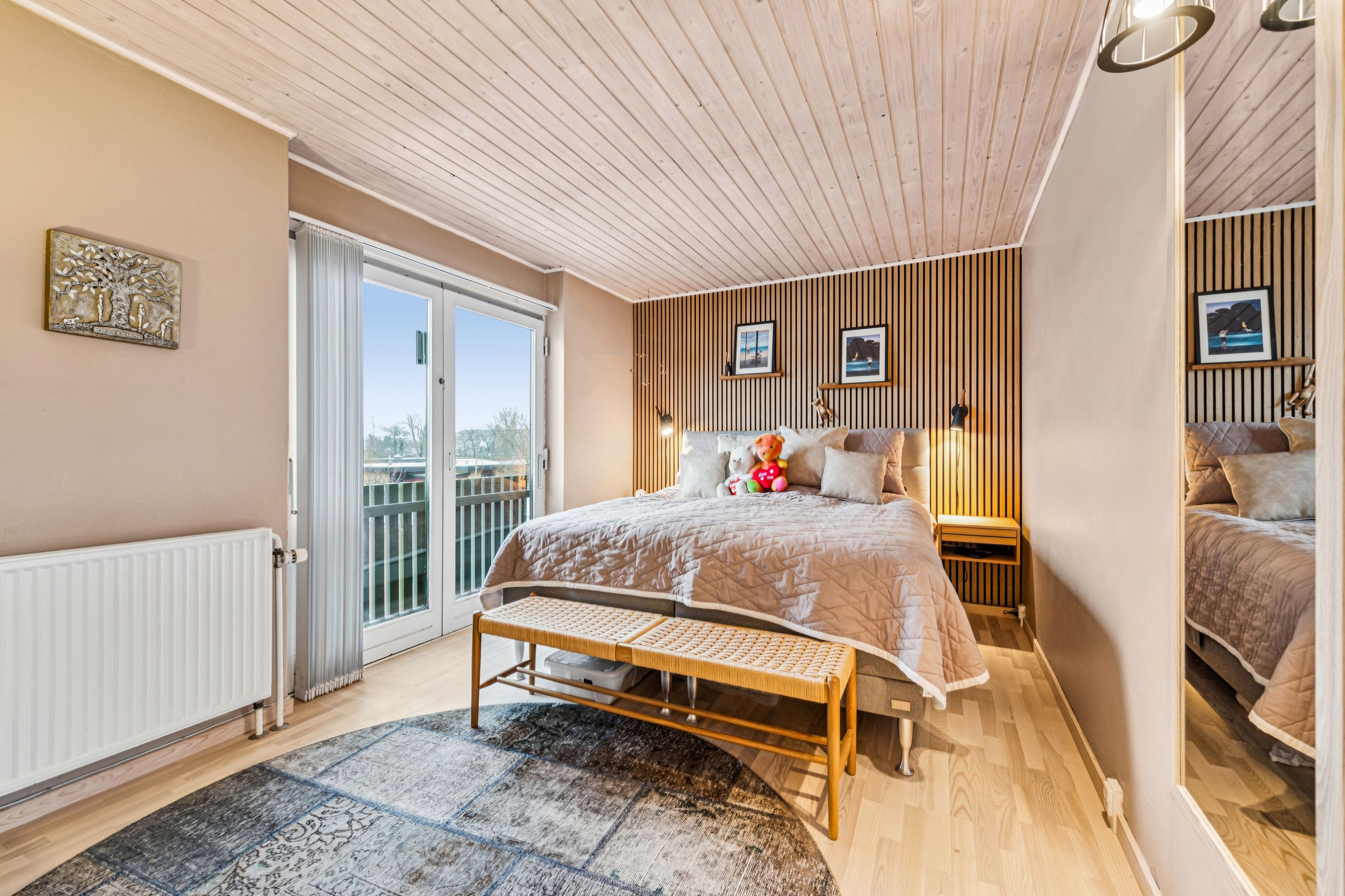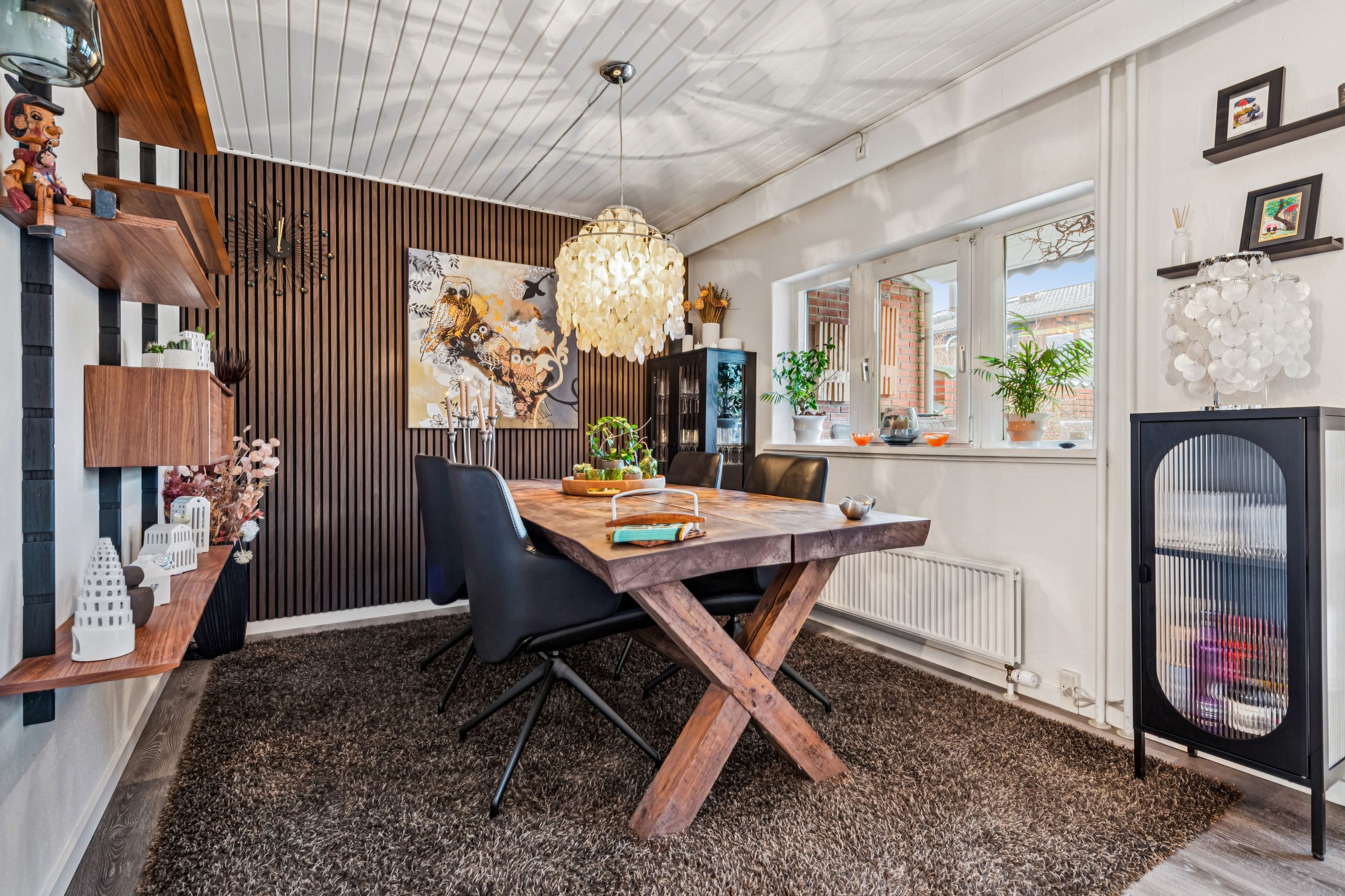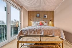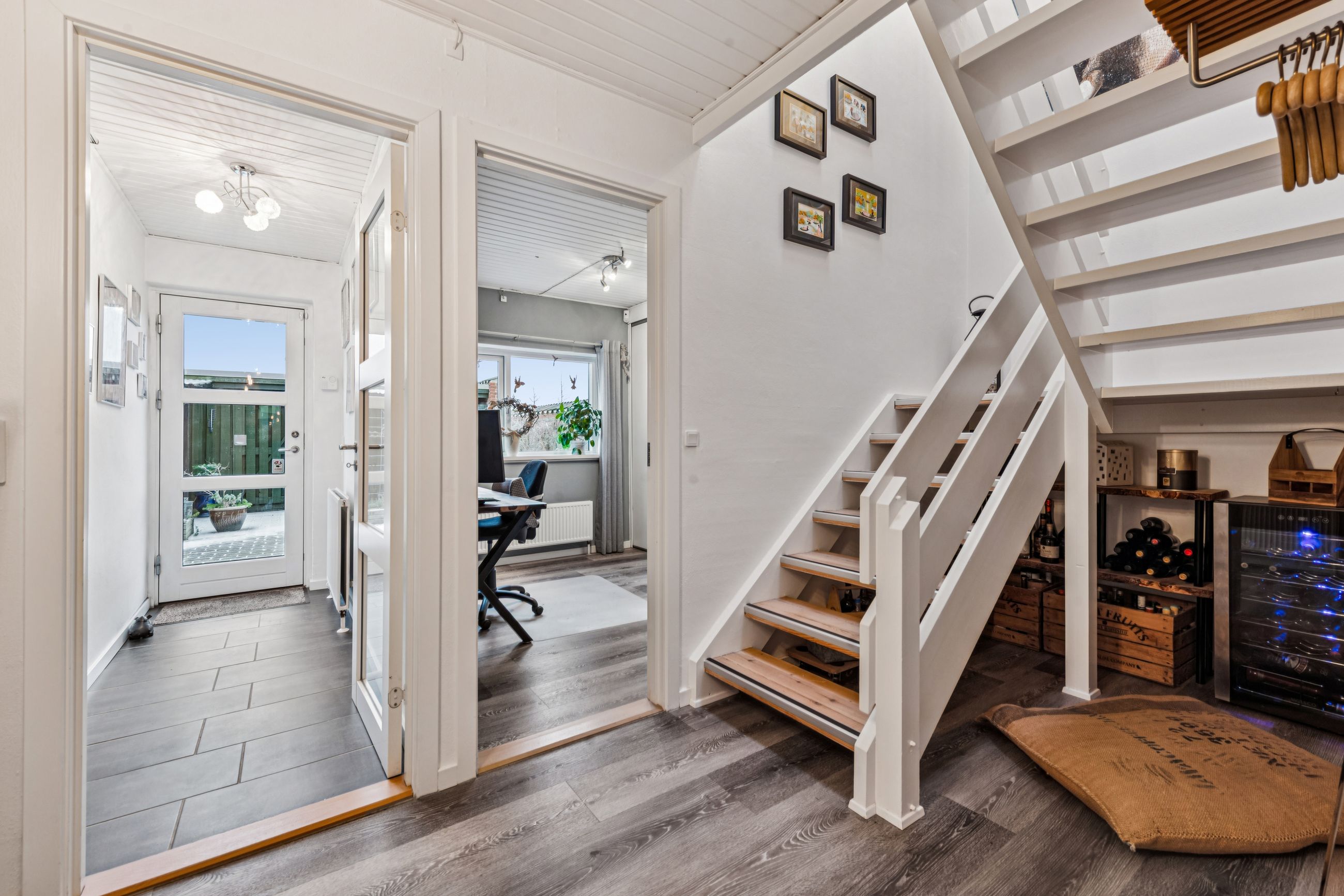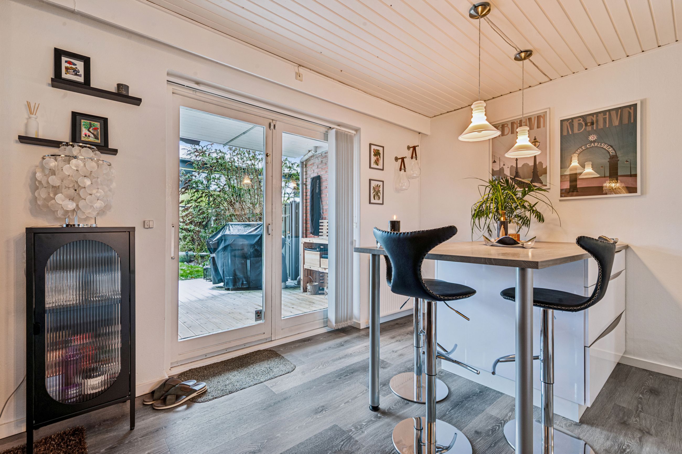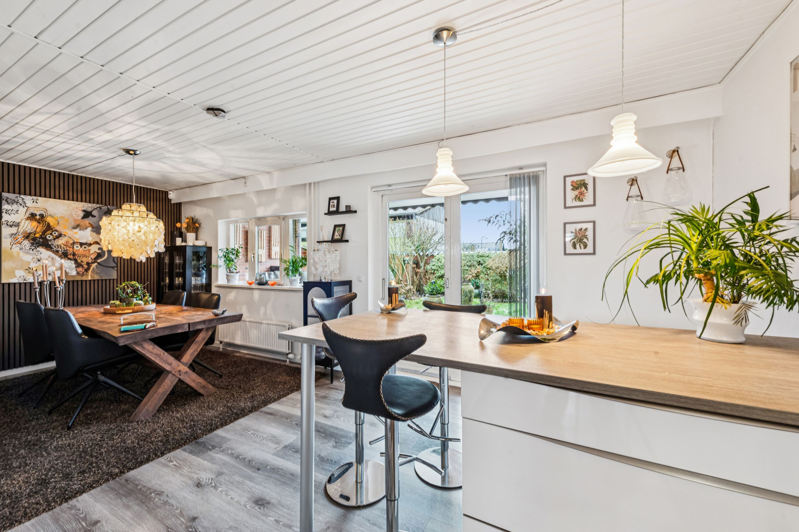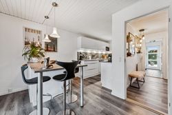 Indenfor er stilen lys og indbydende og de store vinduespartier sørger for et skønt lysindfald. Boligen har en god planløsning og de 134 kvadratmeter, som er fordelt på stueplan og førstesal, giver en god balance mellem fællesrum og private zoner.