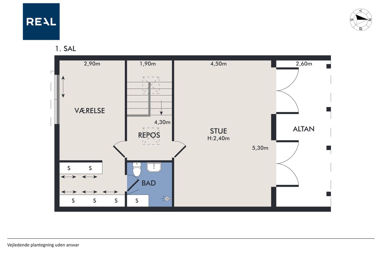 1. sal – skøn stue og ekstra badeværelse
