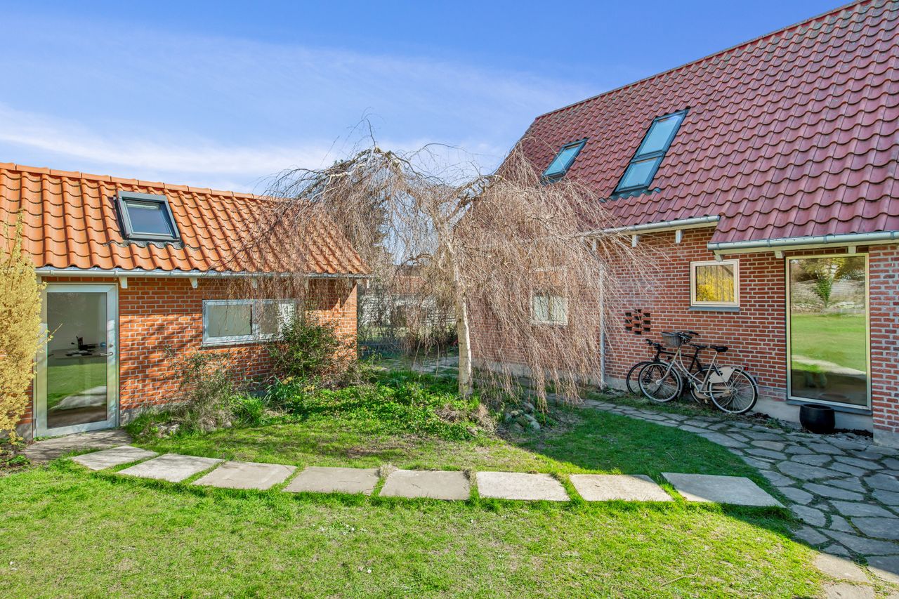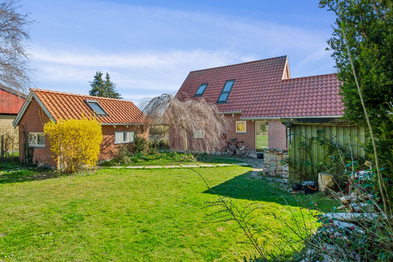 Til slut får man som køber af det smukke hjem, et lille viktualierum ved køkkenet, et flot bryggers med vaskemaskine og tørretumbler, et indendørs værksted, en hems - og i øvrigt en solrig og naturskøn grund på hele 800 m2, med terrasse og muligheder for det skønneste udeliv, for store som små.