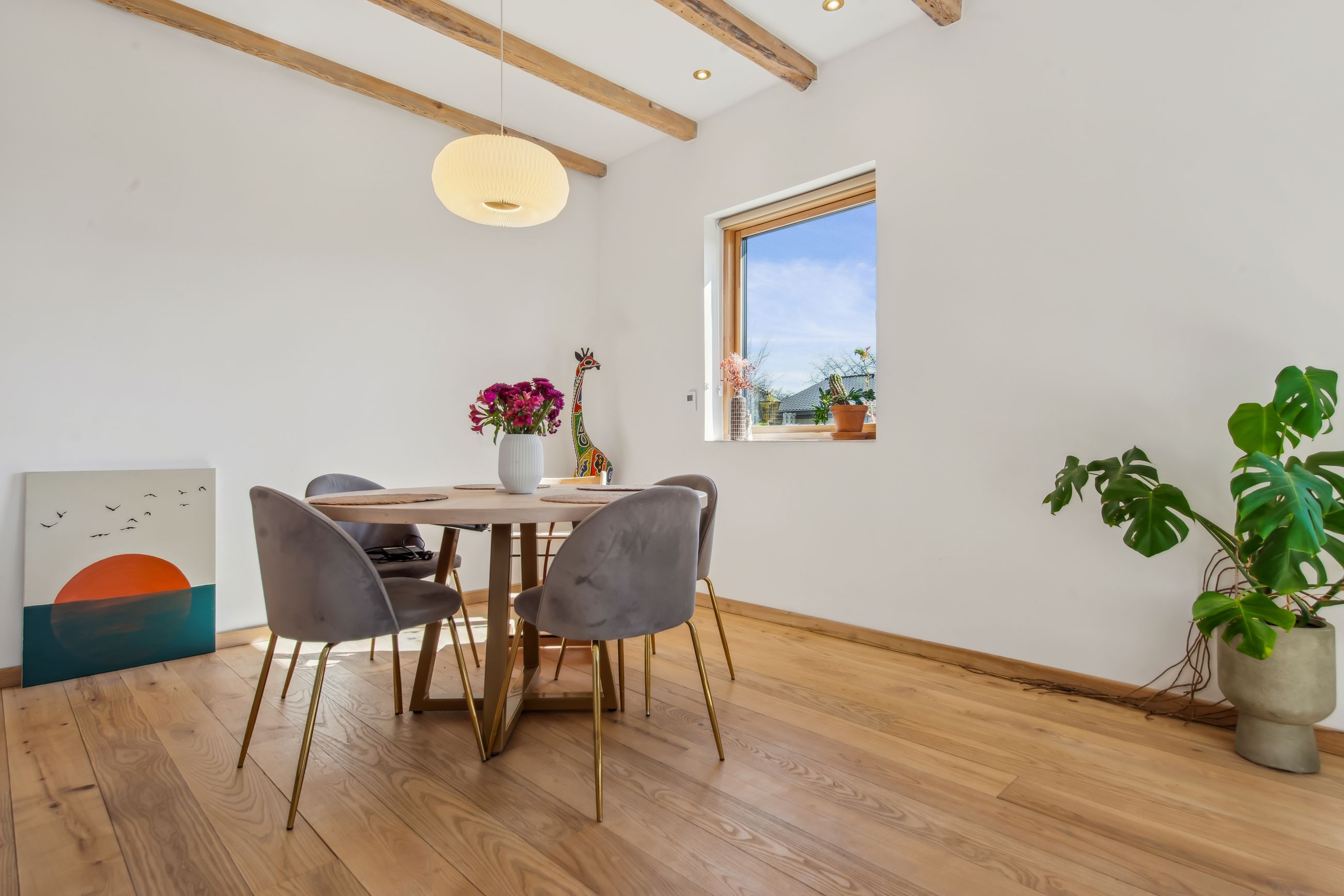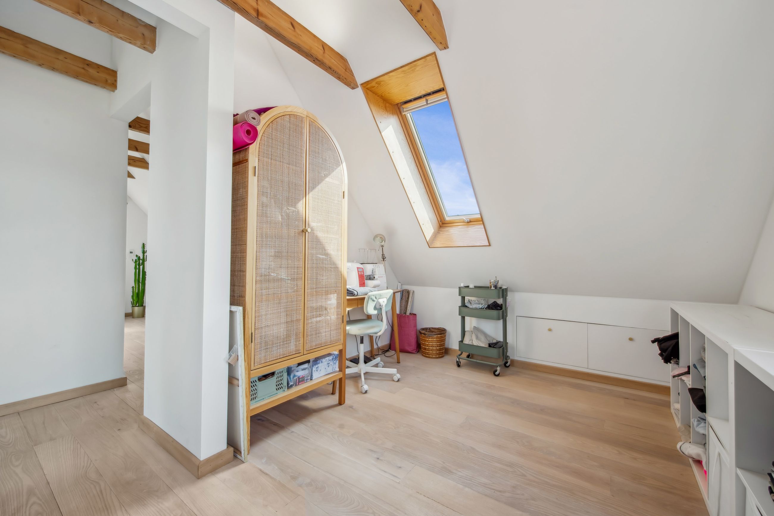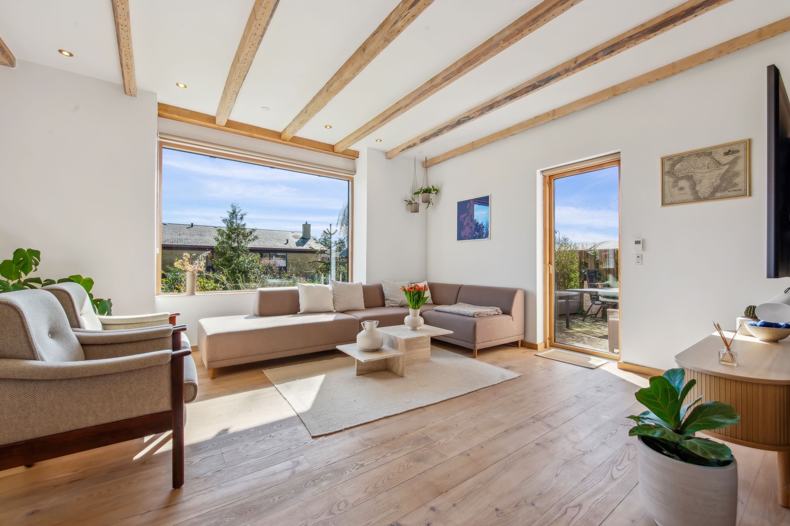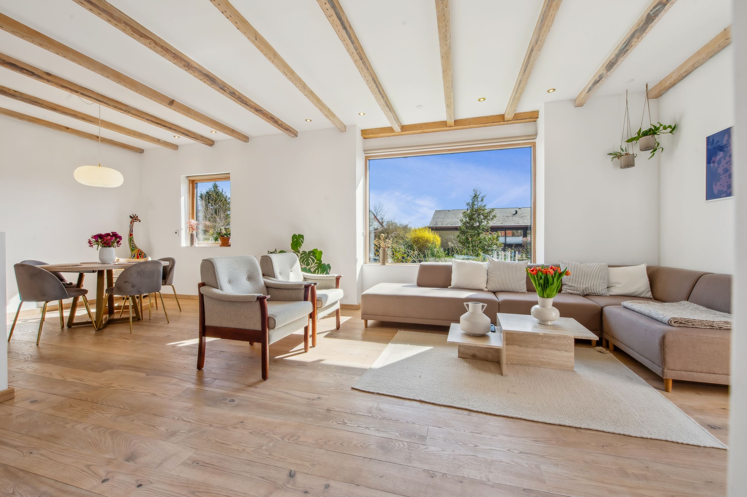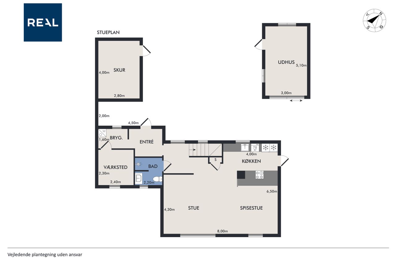 På 1.sal er der klargjort til at kunne opdele det store soveværelse til to, såfremt man måtte have behov for et ekstra værelse - og det er naturligvis også muligt at isætte døre, og lukke af heroppe, skulle det ønskes. Ud over det, hører der til ejendommen et fantastisk flot udhus, istandsat fuldstændig i sync med villaen.