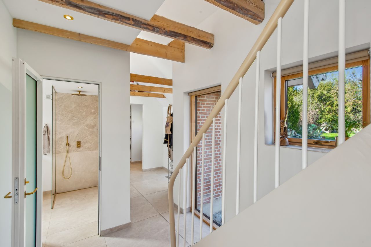 Huset indeholder intet mindre end et væld af unikke detaljer, bl.a. kan det indledningsvist nævnes, at der er gulvvarme i hele huset - og dermed ingen skæmmende radiatorer, ny el i hele huset, gennemgående massive asketræsgulve - samt marmorfliser i badeværelse, køkken, og entré/gang. Videre er der etableret ekstra lofthøjde i stue/køkken alrum, med smukke fritlagte bjælker - og huset bærer tydeligt præg af, at tanken om lys, luft og rummelighed har været i højsædet. Der er installeret BWT blødgøringsanlæg, der klargjort med eltræk til ladestander, fra eltavlen i teknikrummet - samt klargjort til udebelysning.