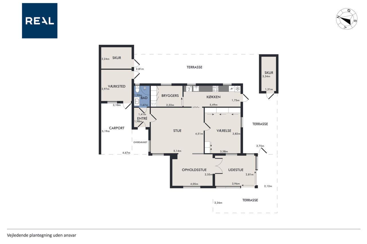 Udendørs får du en skøn og ugeneret have - perfekt til sommerens grillhygge eller et roligt hvil i solen. Til boligen hører også en carport og et praktisk skur til opbevaring.