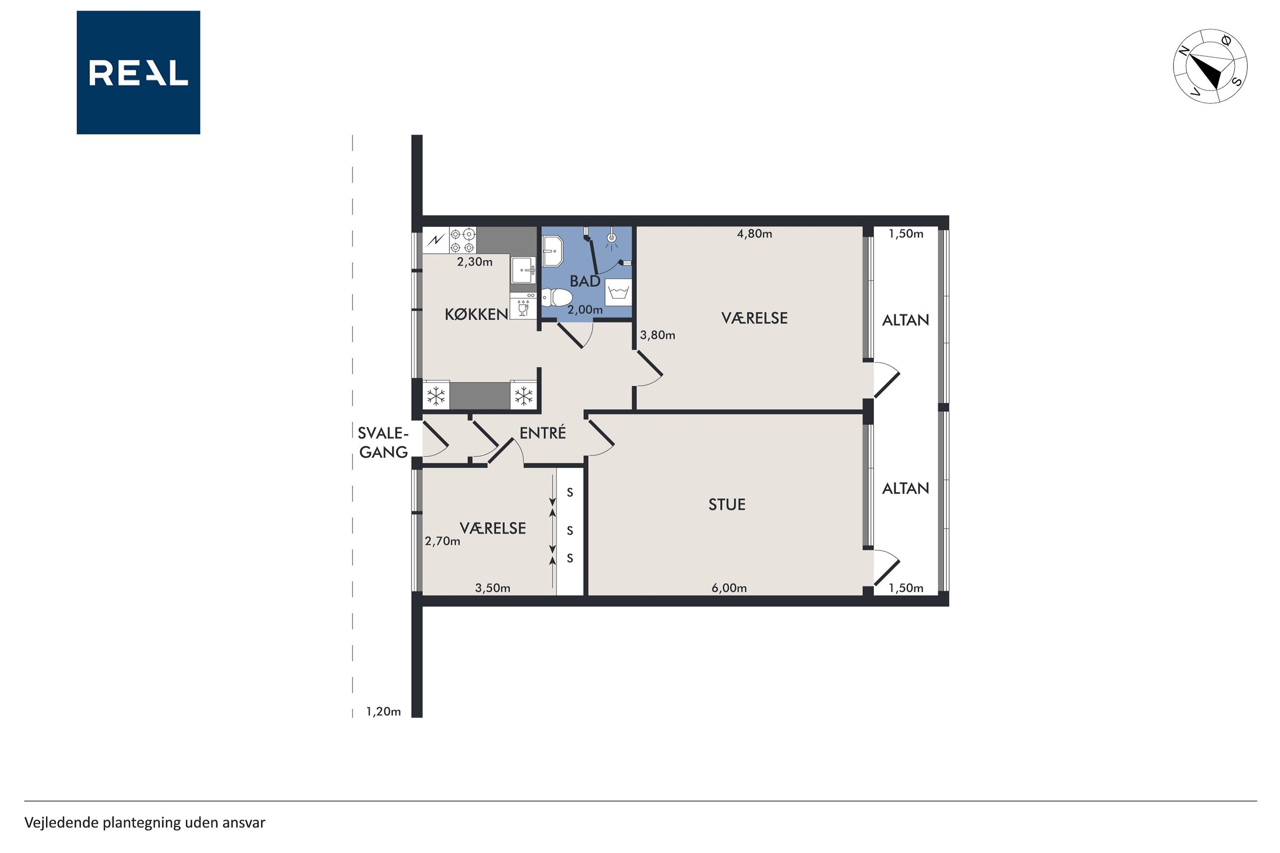 Lejligheden er lys og byder på en rummelig fordelingsentré. Stor stue med god plads til både spisebord og sofa afdeling. Stuen har et dejligt lysindfald fra det store vinduesparti, i hele rummets bredde - og fra stuen kommer du også ud til lejlighedens altan. Velholdt køkken med god plads. Herudover indeholder lejligheden to værelser samt et stort badeværelse.