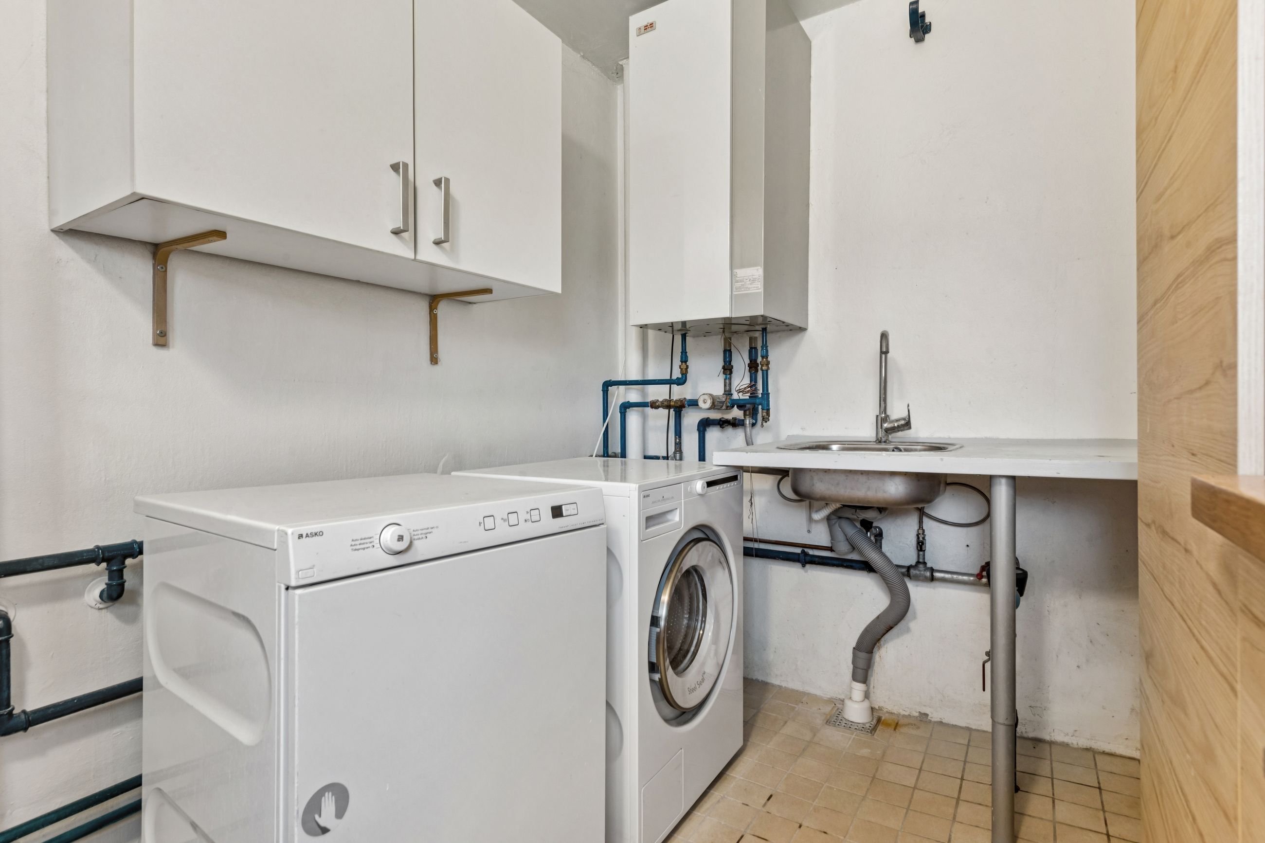 Boligen byder på en usædvanlig god planløsning og rummer således 119 særdeles veludnyttede kvadratmeter. De store vinduespartier sørger for et godt lysindfald i hele boligen.