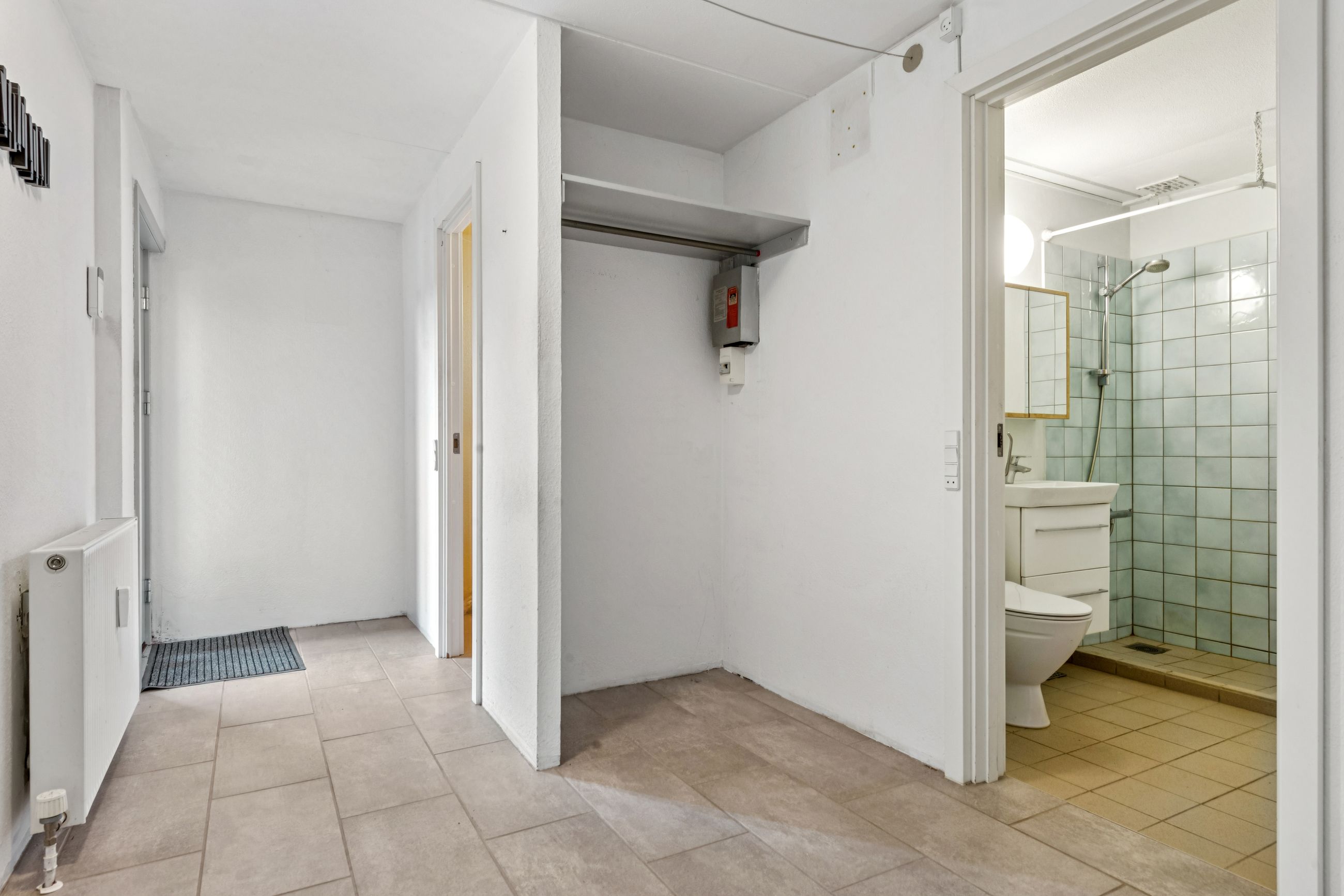 Her er du i kort afstand til alle dagligdagens fornødenheder som børnehave, skole, indkøbsmuligheder, gode offentlige transport muligheder og motorvejs forbindelser. Rækkehuset ligger i et lukket område, hvilket gør det ekstra trygt - især for børnefamilier.