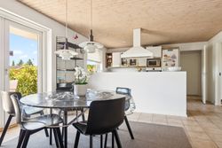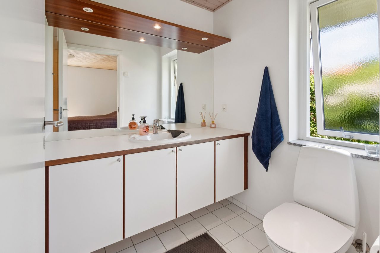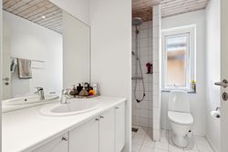 Ejendommen fremtræder indflytningsklar og de store vinduespartier sørger for lys overalt i huset. Boligen opvarmes endvidere med fjernvarme og der er gulvvarme overalt i villaen.