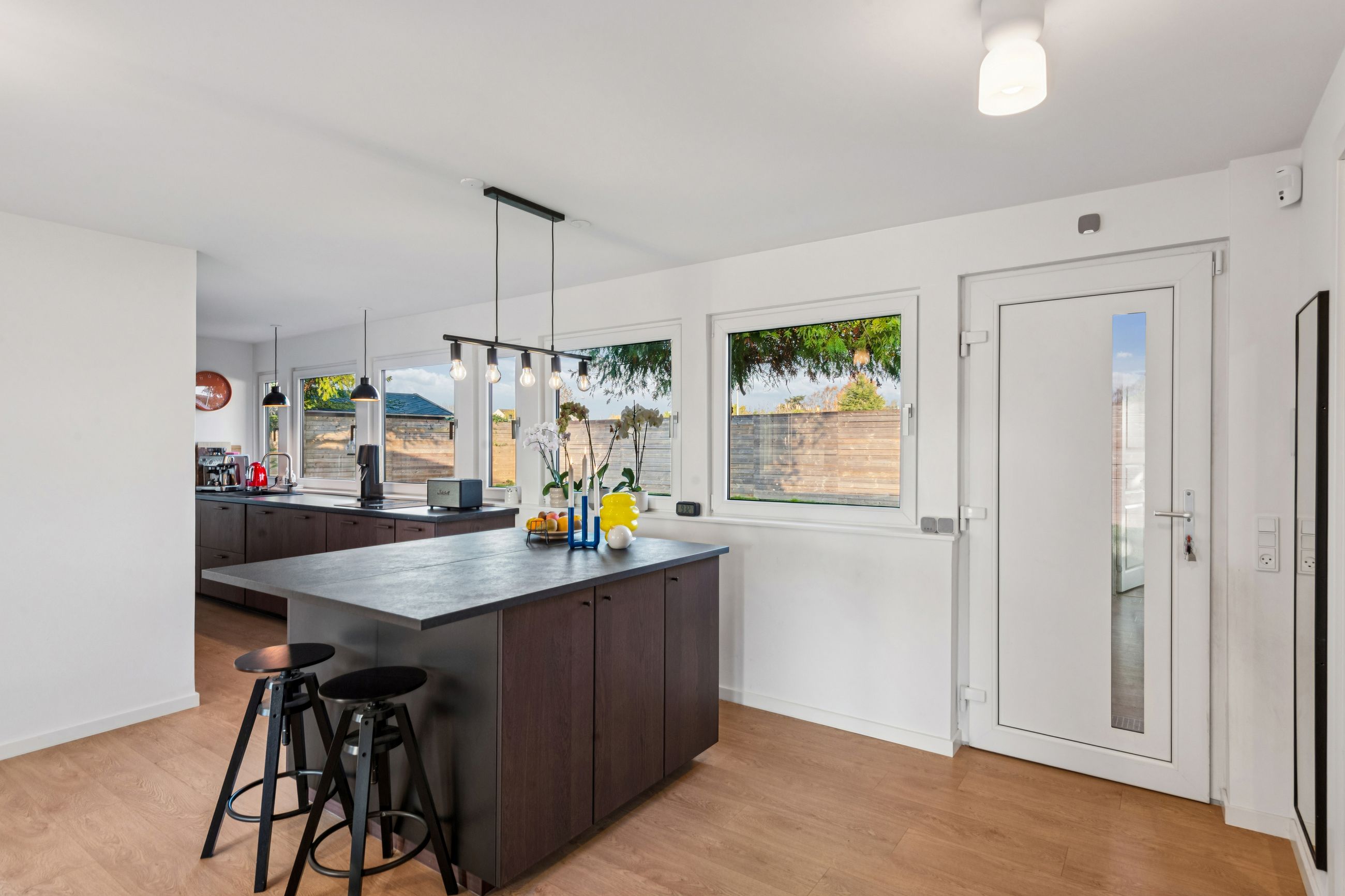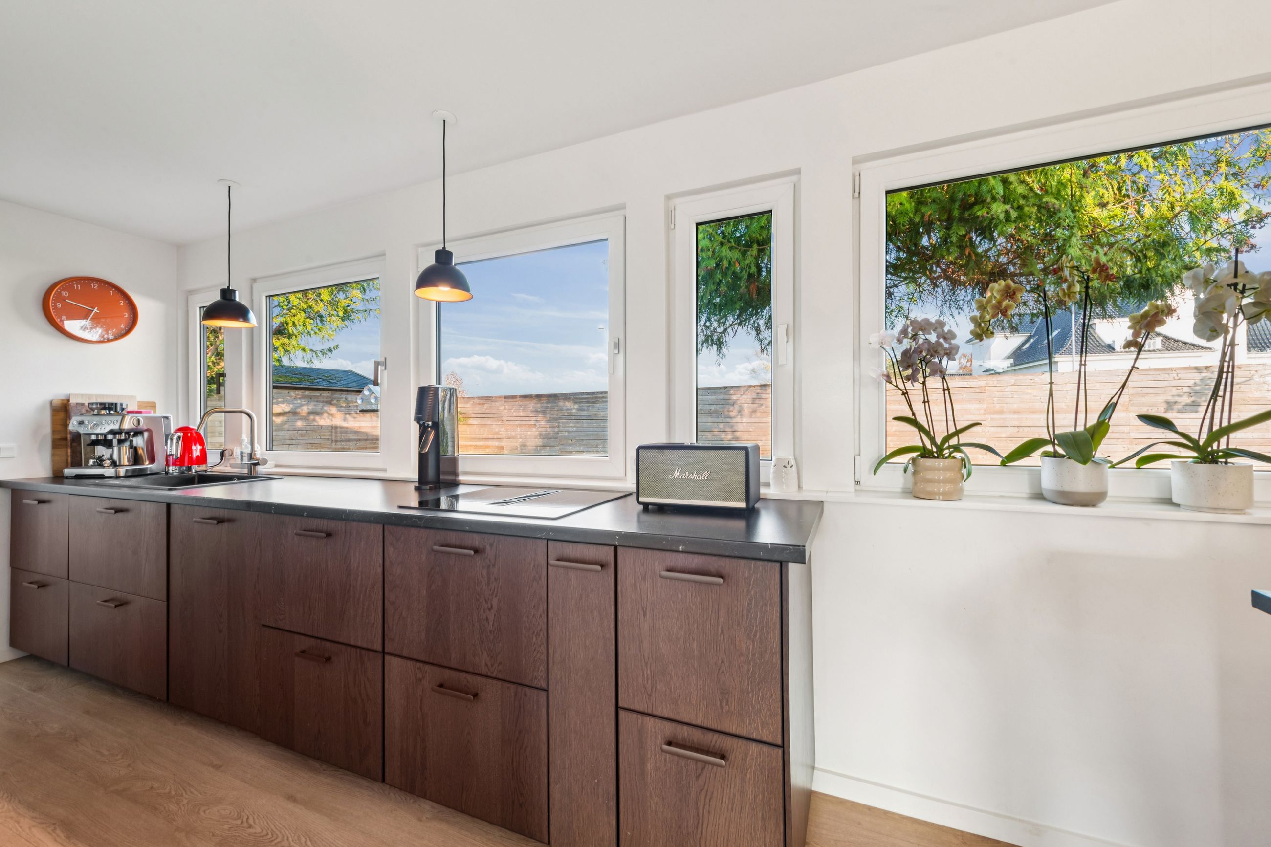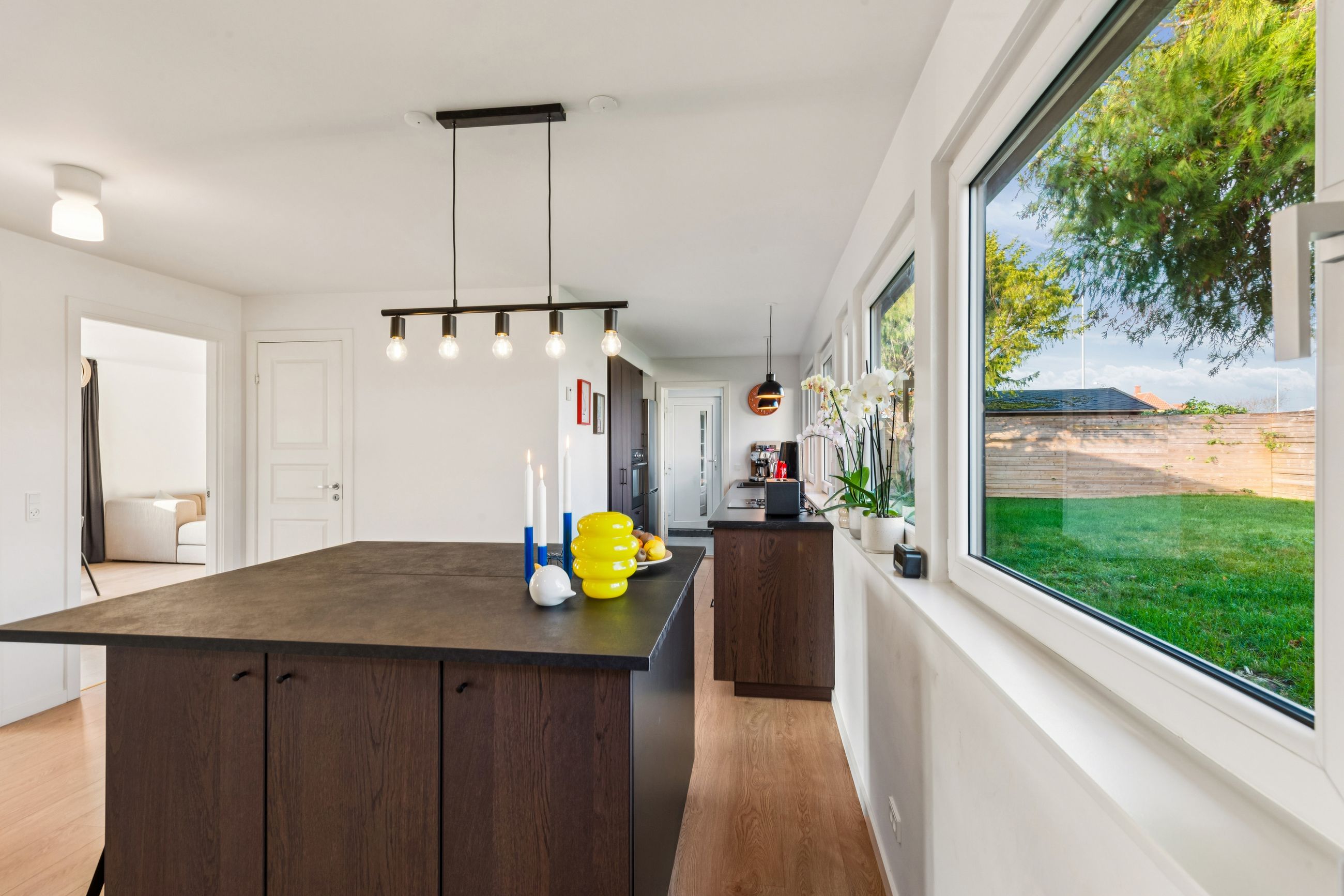 Nu udbydes denne flotte og totalt istandsatte villa, placeret på én af Brøndby Strands bedste og mest idylliske beliggenheder – i anden række til indersøerne. Sælger har fået gennemgribende renoveret og moderniseret ejendommen i 2024, i fine materialer - og den optimale planløsning, tilbyder helt utroligt godt udnyttede kvadratmeter, at indrette sig på. Af herligheder kan bl.a. nævnes, at sælger har fået installeret varmepumpe, og fået lagt nyt tagpap på. Ydermere er der gulvvarme i hele huset, og alle vinduer er udskiftet (aluminium ude/vedligeholdelsesfrie indvendige). Ejendommen byder på entré, med store, indbyggede skabe til overtøj og opbevaring - i åben forbindelse til det meget flotte køkken fra 2024, og hårde hvidevarer fra samme år, samt en helt nyoptillet køkkenø fra 2025. Køkkenet byder i øvrigt på utrolig god skabs- og bordplads, og kig til haven. Fra entréområdet, er der adgang til husets 3 gode soveværelser. Videre ligger den rigtig dejlige. lyse stue, med brændeovn fra 2024 og udgang til haven. Badeværelset samt det ekstra toilet, er utrolig lækre - med store, eksklusive fliser og ovenlysvindue - som giver et helt særligt lysindfald. Til sidste ligger husets bryggers, med egen indgang udefra, vaskemaskine og tørretumbler, masser af bordplads/aflæggerplads, og håndvask. Et uundværligt rum, for enhver børnefamilie. OBS: Usædvanligt flotte rapporter på ejendommen!! Området taler for sig selv - og med Brøndby havn, samt den utrolig dejlige sandstrand og strandpark lige om hjørnet, får du her en fantastisk og naturskøn beliggenhed, med masser af rekreative områder. Gå eller løb en tur til vandet, en lun sommeraften - slut evt. af med en dukkert, og mærk hvordan skuldrene sænker sig. Boligen ligger på en tryg og rolig villavej, som er karakteriseret ved godt naboskab, og børnefamilier med børn i alle aldre. Ydermere befinder du dig bekvemt nær S-tog ved Brøndby Strand Station, og København Centrum er ikke mere end en 15 minutters køretur væk i tog, eller i bil via motorvejsnettet, som heller ikke befinder sig langt herfra. Til børnefamilien, er man sig tilmed i cykelafstand til skole, sportsfaciliteter, og gode indkøbsmuligheder nær ved. Så alt i alt en attraktiv beliggenhed, hvor alt ved lethed nås, i en travl hverdag.