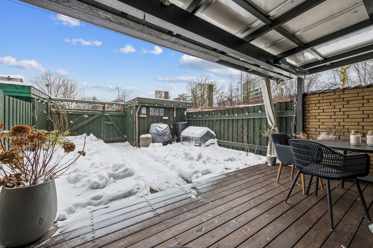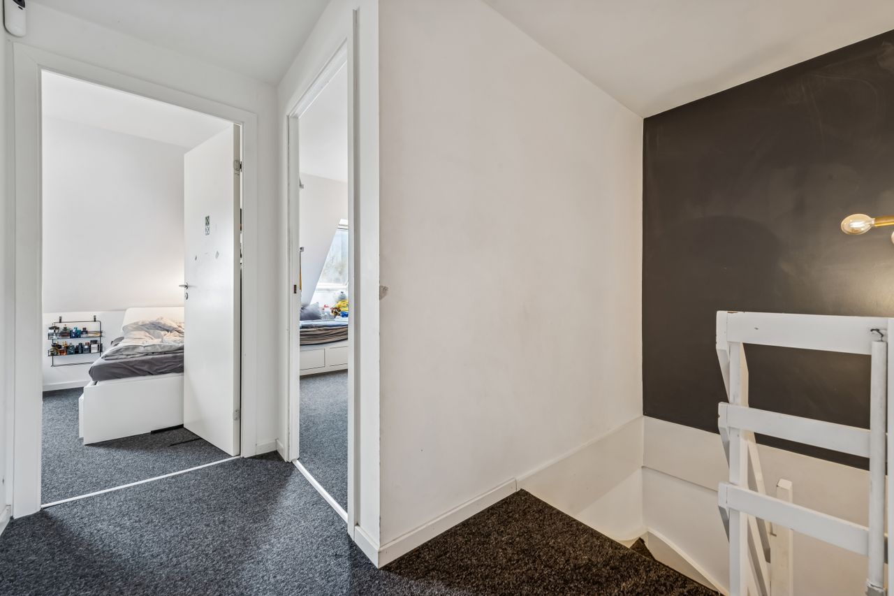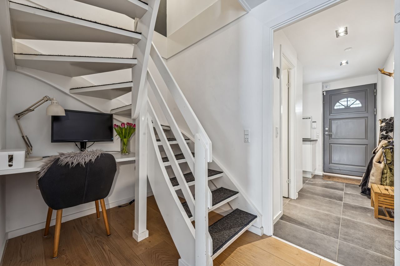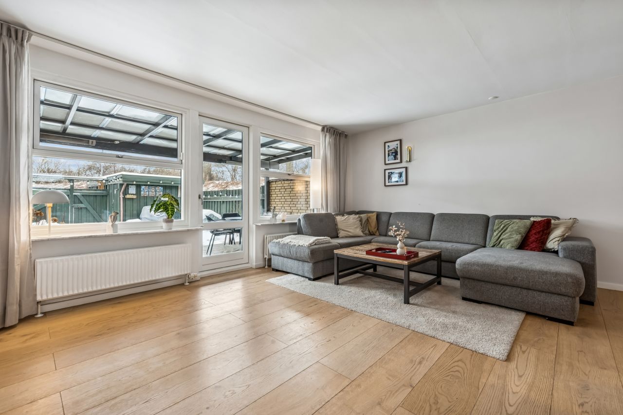 Velkommen til Nøddeboparken - nærmere bestemt Kløverbo 1. Her har vi netop fået dette flot istandsatte, og meget indbydende enderækkehus til salg. Området er både attraktivt, roligt og særdeles børnevenligt, og ligger centralt i Vallensbæk Strand. I kommer til at bo i gåafstand til Fitness center og de spændende specialforretninger og restauranter/spisesteder på Vallensbæk Stationstorv. Beliggenheden betyder dermed også gåafstand til S-tog, som bringer jer til Københavns Centrum på omtrent 15 minutter. Ydermere er her gode busforbindelser, og en letbane på vej, ganske tæt på - mens bilen blot skal køre kort, for at nå til- og frakørselsvejene på motorvejsnettet. Som prikken over i'et er I tæt på både Vallensbæk Strandpark, samt den meget hyggelige lystbådehavn. Boligen har en fuldstændig optimal planløsning og rummer 112 veludnyttede kvadratmeter - og kræver i øvrigt et minimum af vedligehold, så I kan koncentrere jer om det væsentlige i tilværelsen, uanset om I er et seniorpar, førstegangskøbere eller en børnefamilie. Stilen er moderne, lys og meget indbydende, med bl.a. talrige store vinduespartier, vægge med filt, samt nymalet stue og køkken (inkl. loft i sidstnævnte) i november 2025. Sælgerne har foretaget en gennemgribende renovering, efter deres egen indflytning i efteråret 2017 - hvor bl.a. det flotte IKEA køkken, badeværelse på 1.sal, ekstra toilet i stueplan, bryggers mv. er blevet istandsat/udskiftet. Ud over det har de lavet overdækningen i forhaven for 3 år siden, samt overdækningen i baghaven for 2 år siden. Ejendommen indeholder en god entré med gulvvarme, og åben adgang til flot bryggers med indbygget skabe, god bordplads og vaskesøjle. Den fantastisk lyse og rummelige stue/spisestue, har udgang til den skønneste solrige have, og lækre træterrasse. Her kommer boligens beliggenhed i særdeleshed til sin ret, med beliggeheden for enden af bebyggelse, med åben og ugenert udsigt til grønt. Det flotte og stilrene køkken fra 2017, byder både på rigtig god bord- samt opbevaringsplads, og hårde hvidevarer af god kvalitet. Til slut indeholder stueplan ligeledes et meget pænt ekstra toilet, med gulvvarme. 1. sal rummer tre super fine og lyse værelser, der kan fordeles efter behov. Derudover er der et meget flot badeværelse, med separat bruseniche og lækre fliser i moderne kontrast til de hvide vægge. Badeværelset er renoveret i samme, gennemførte røde tråd, som toilettet i stueplan, og har ligeledes gulvarme.. Som bonus er der mulighed for renovere og integrere husets 2. sal/tagetage - og etablere et stort, ekstra disponibelt rum, på sigt. Pt. benyttes tagetagen som god opbevaringsplads. Til huset hører også egen carport, samt praktisk skur til opbevaring. Kontakte os allerede idag på tlf.: 41879023 - og hør mere om dette skønne hus.