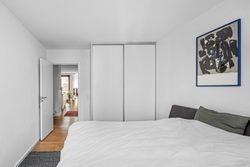 Soveværelset har ligeledes adgang til en rummelig altan med udsigt over kanalen, det perfekte sted at nyde morgenkaffen i solen. De to altaner giver en sjælden mulighed for at følge solens gang fra morgen til aften. Derudover byder boligen på rigelig skabsplads og adgang til brugsret til et stort opvarmet kælderrum samt attraktive fællesfaciliteter, herunder mulighed for leje af gæstelejlighed og kajaklaug.