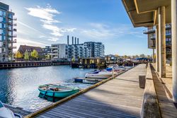 Placeringen er helt i top! Du bor lige ved vandet, i gåafstand til metroen og tæt på både dagligvarebutikker, caféer, restauranter og kulturelle oplevelser. Her får du det bedste fra to verdener: roen ved havnefronten og byens liv lige om hjørnet.