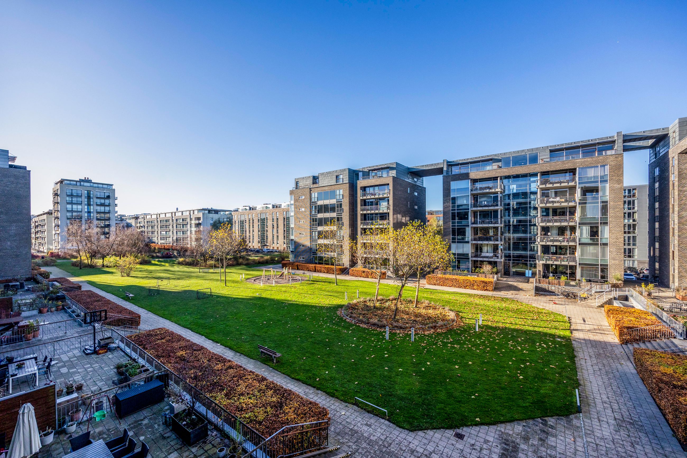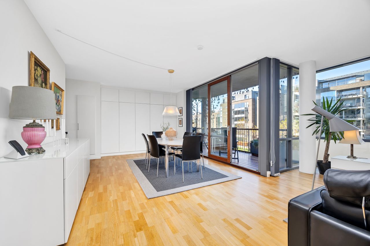 Beliggenheden gør hverdagen både praktisk og behagelig: Indkøb, caféer og specialbutikker ligger lige rundt om hjørnet, og både metro og busser er kun få minutters gang væk. Cyklen tager dig hurtigt til både centrum, Amager Fælleds naturskønne områder og den smukke kystlinje. Kun få skridt fra lejligheden finder du Islands Brygge Havnebad, hvor du kan nyde en dukkert eller en rolig gåtur langs den idylliske havnefront.